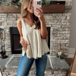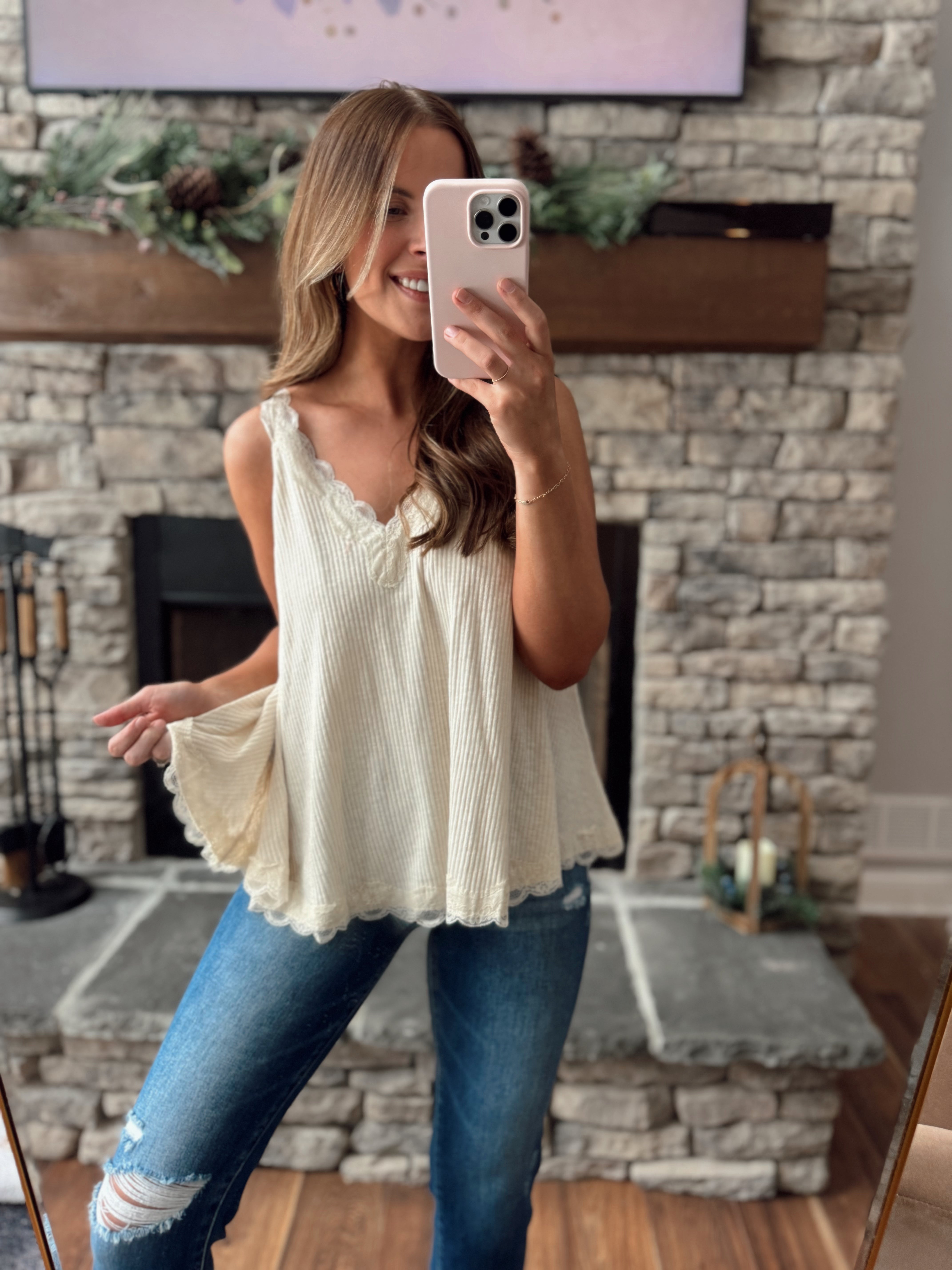 Oatmilk High Hopes V Neck Ribbing & Lace Tank