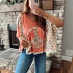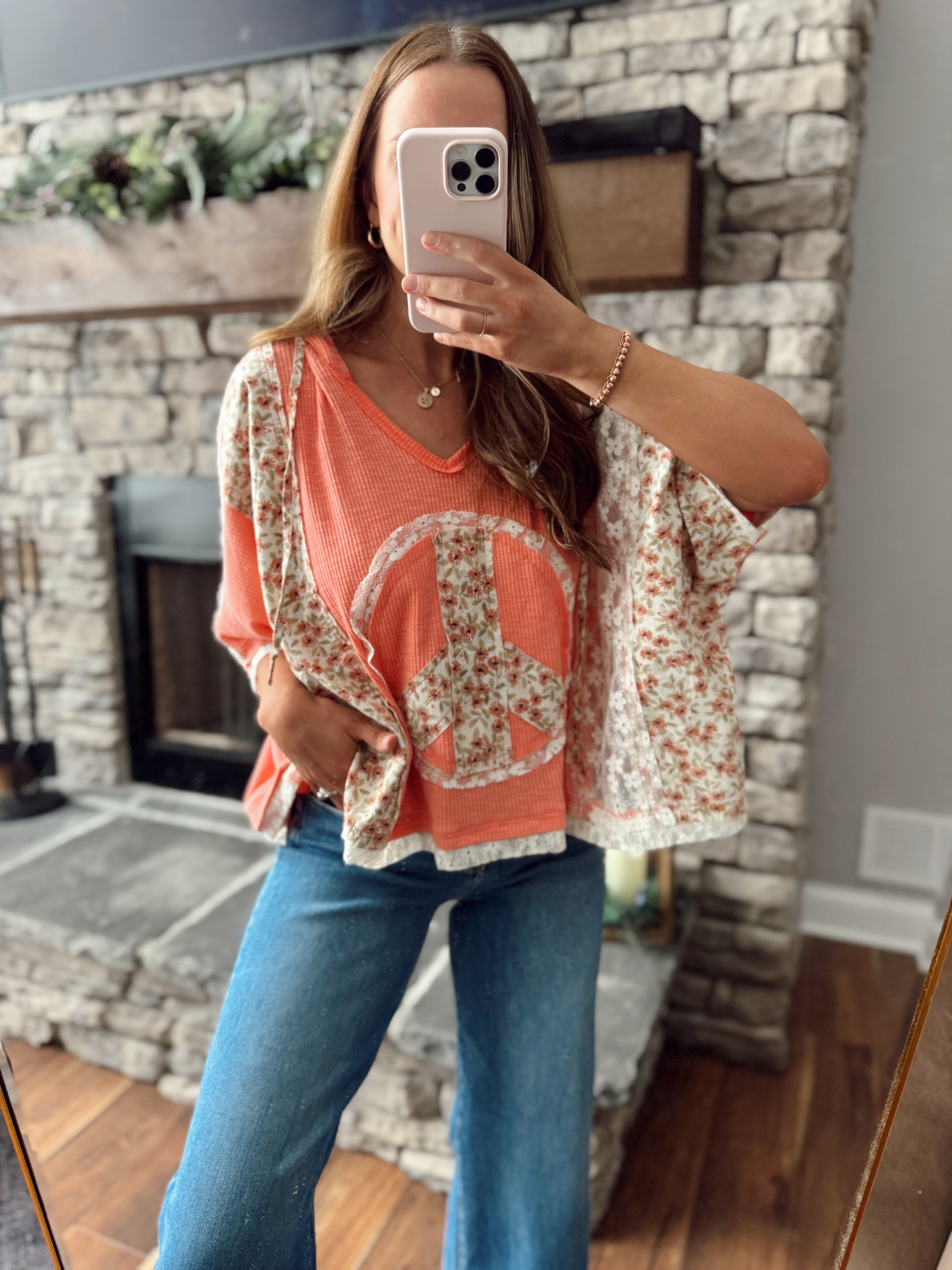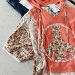 Peace Maker Bright Peach Patch Work Hooded Short Sleeve