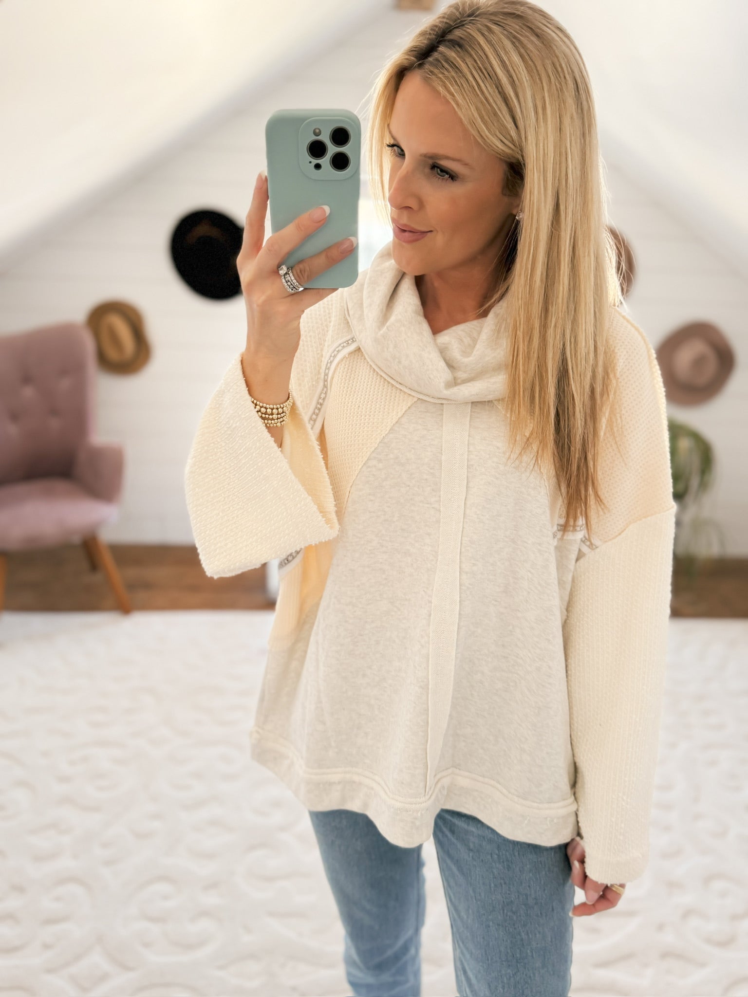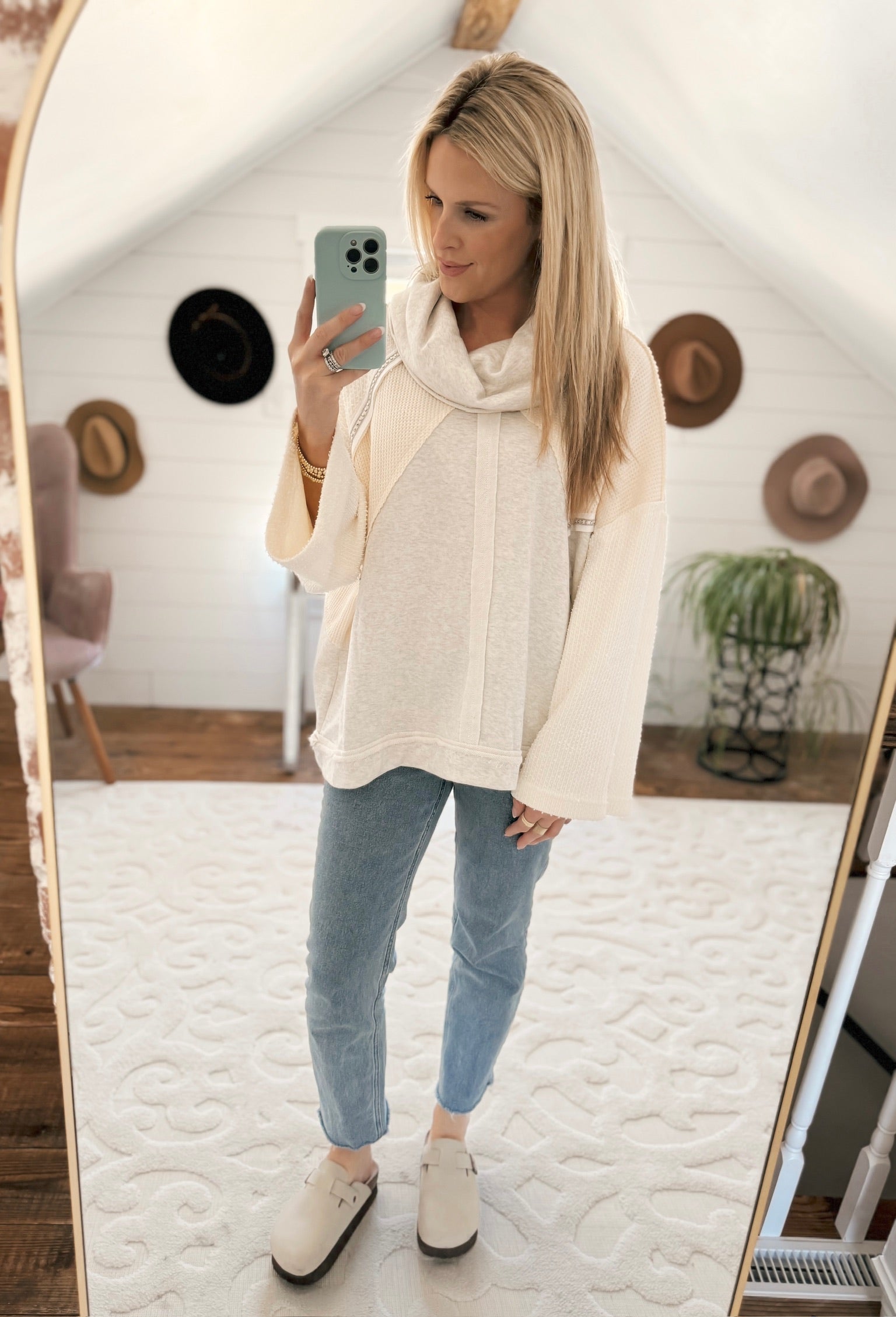 Perfectly Oat Mock Neck Textured Long Sleeve