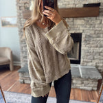 An instant favorite for chilly days. This oversized cable knit sweater has that perfectly slouchy, lived-in feel with wide sleeves and a relaxed cut. Pair it with denim for an easy everyday look or layer it over leggings for max comfort.