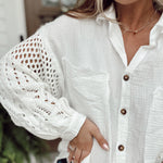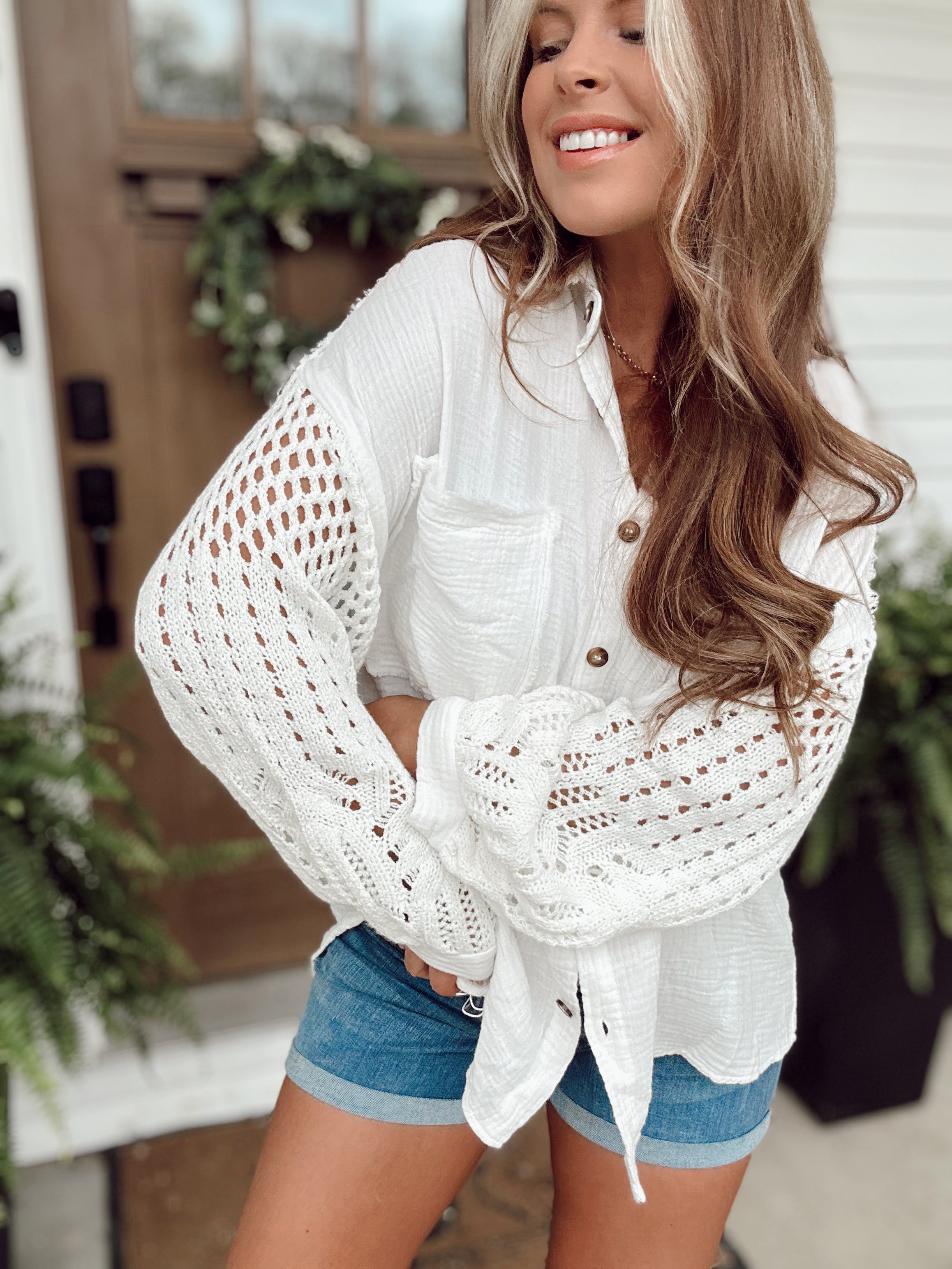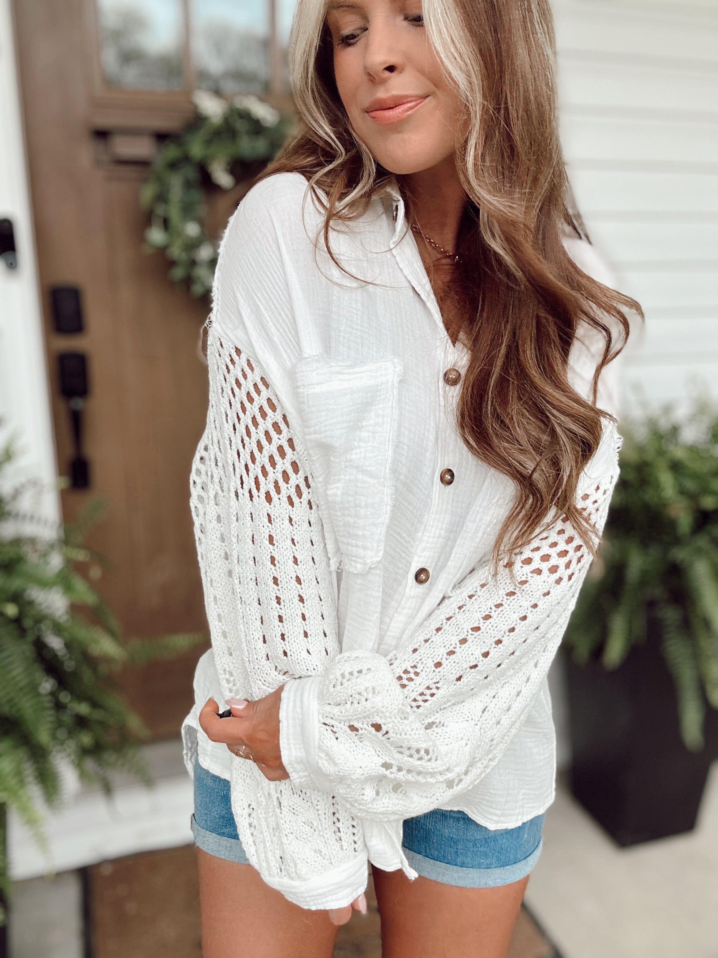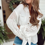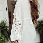 Sal Off White Sweater Sleeve Gauze Button-Up