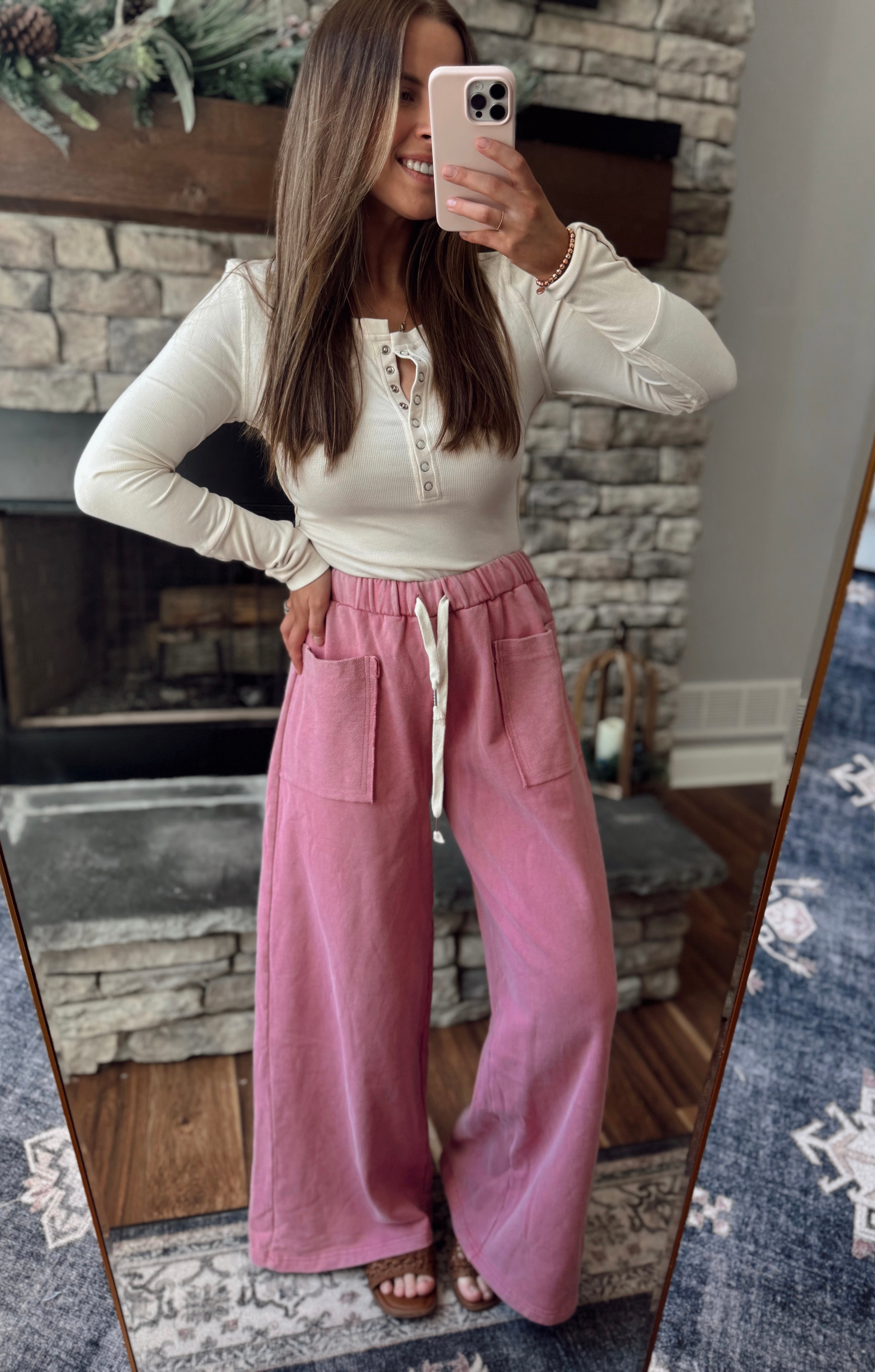 Slay The Day Dusty Pink Wide Leg Sweat Pant