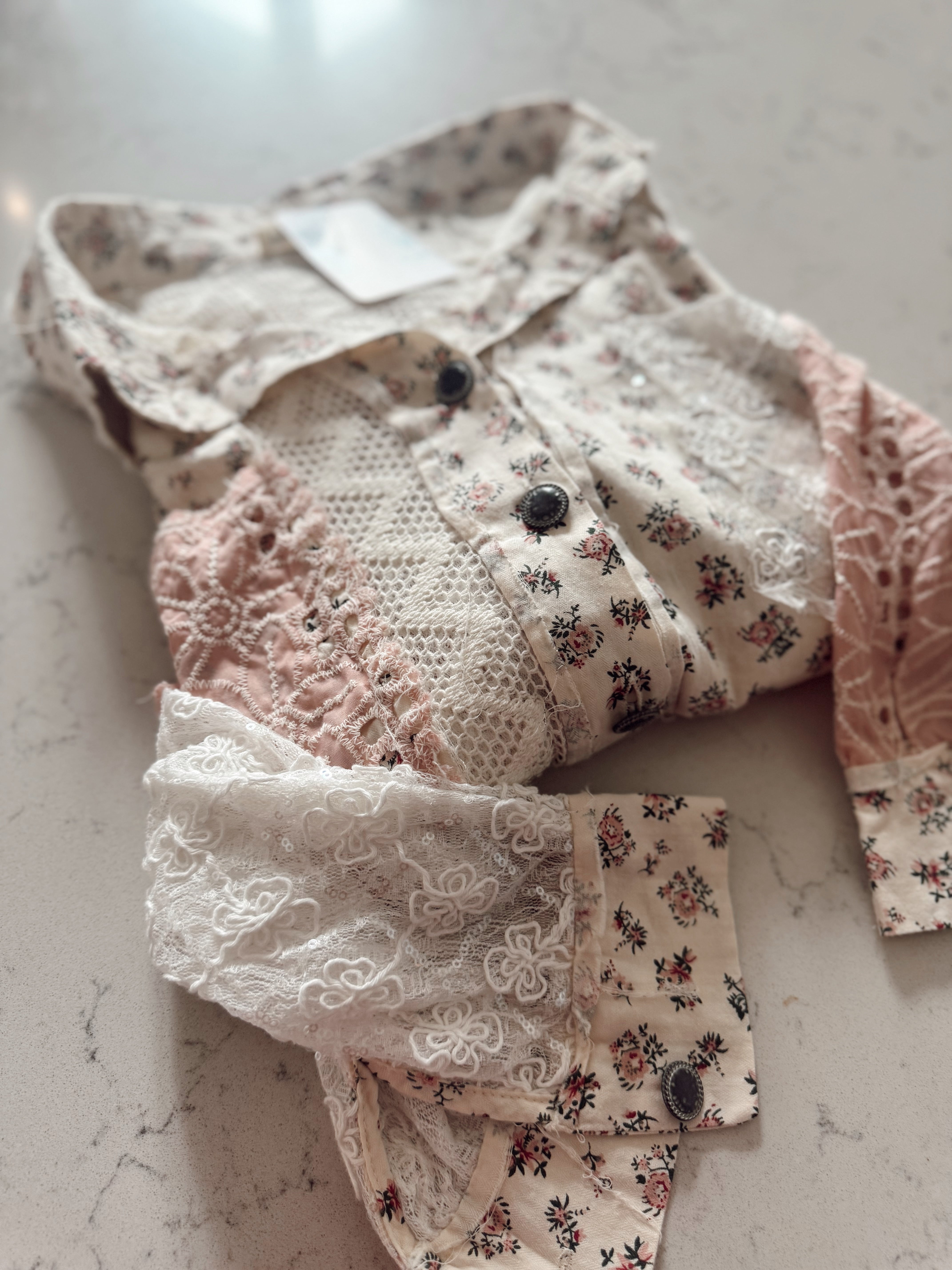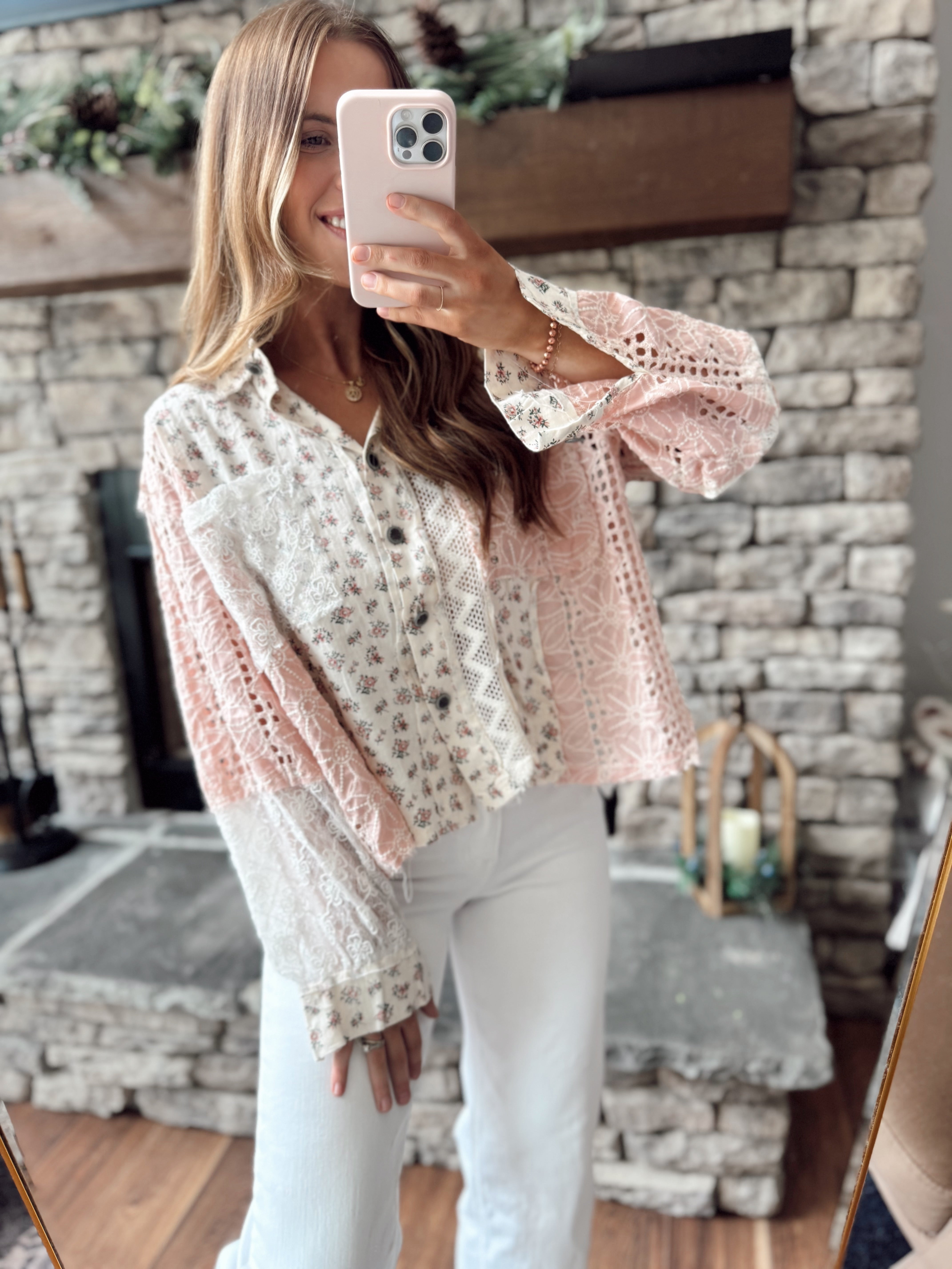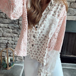 Top That Pink Floral Balloon Sleeve Crochet Top