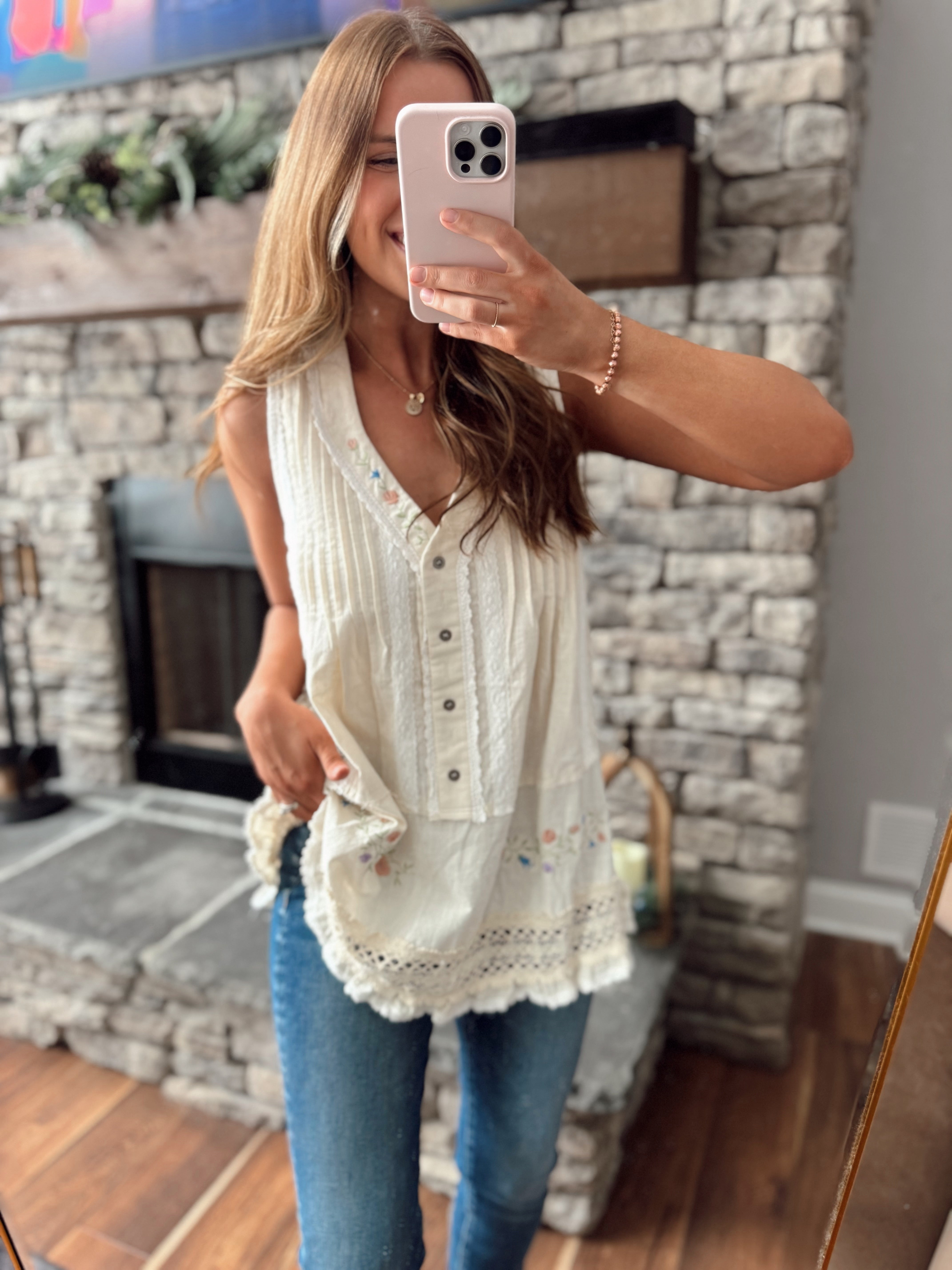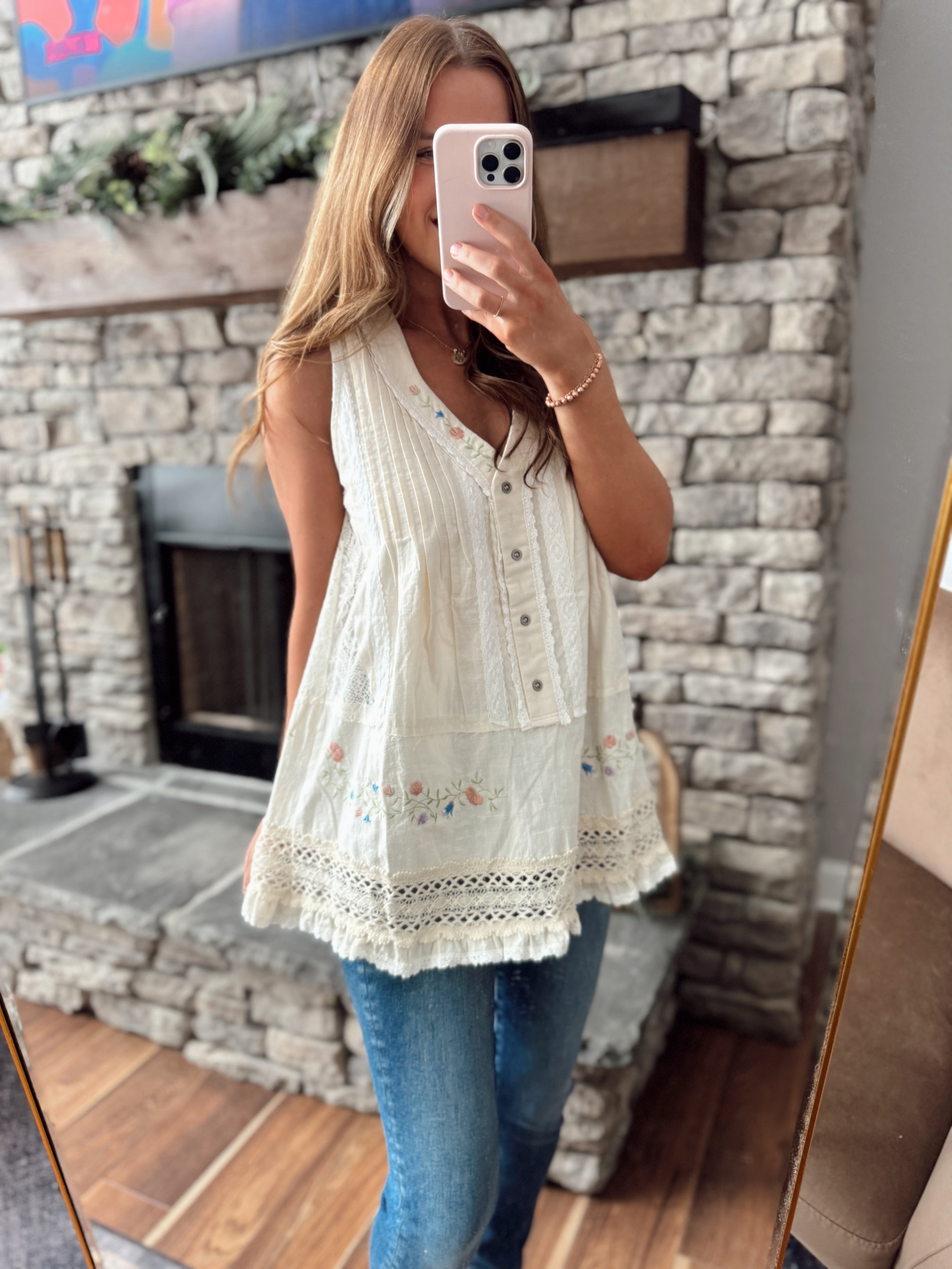 Aleigha Natural Embroidered Crochet Cropped Tank