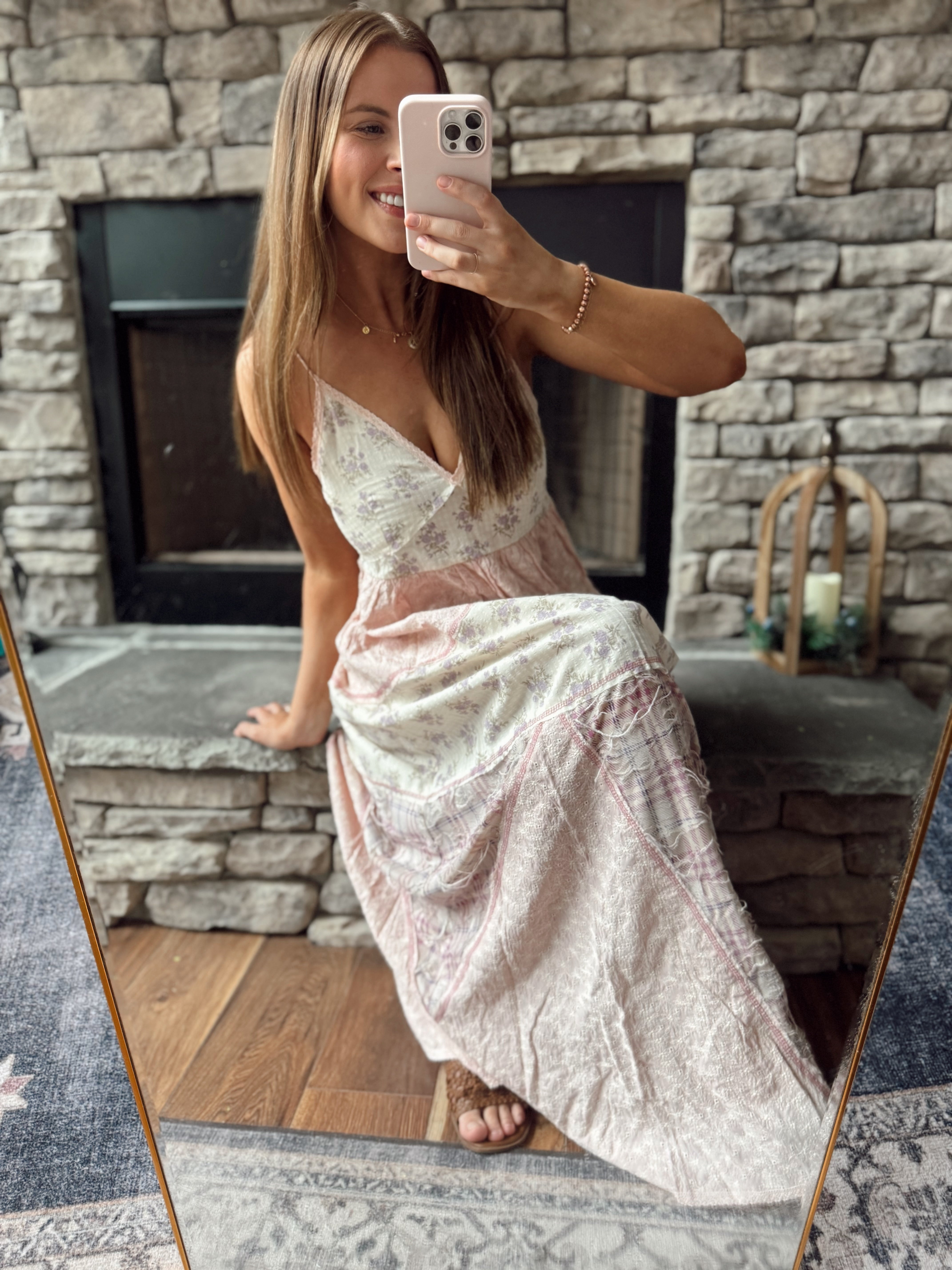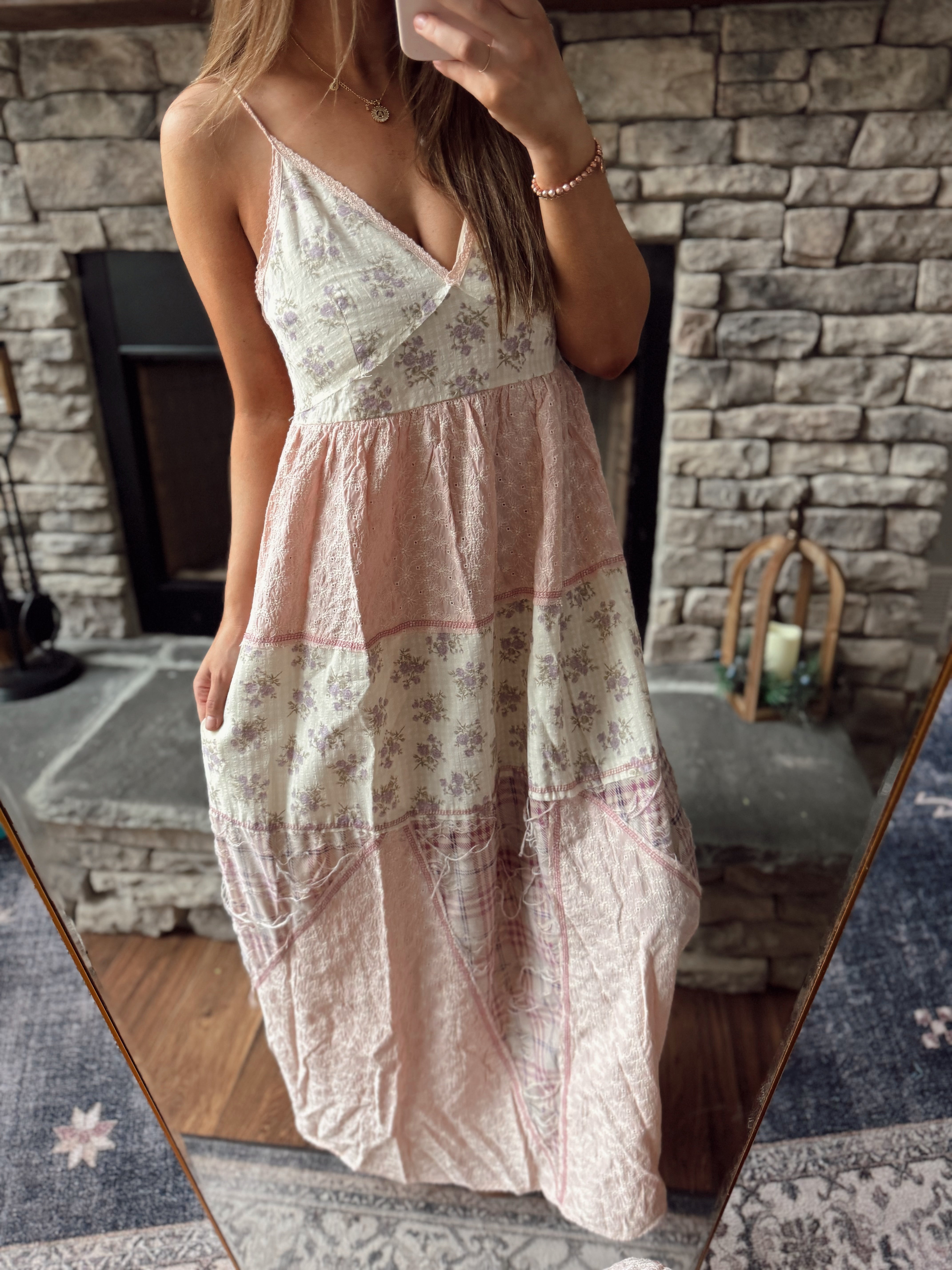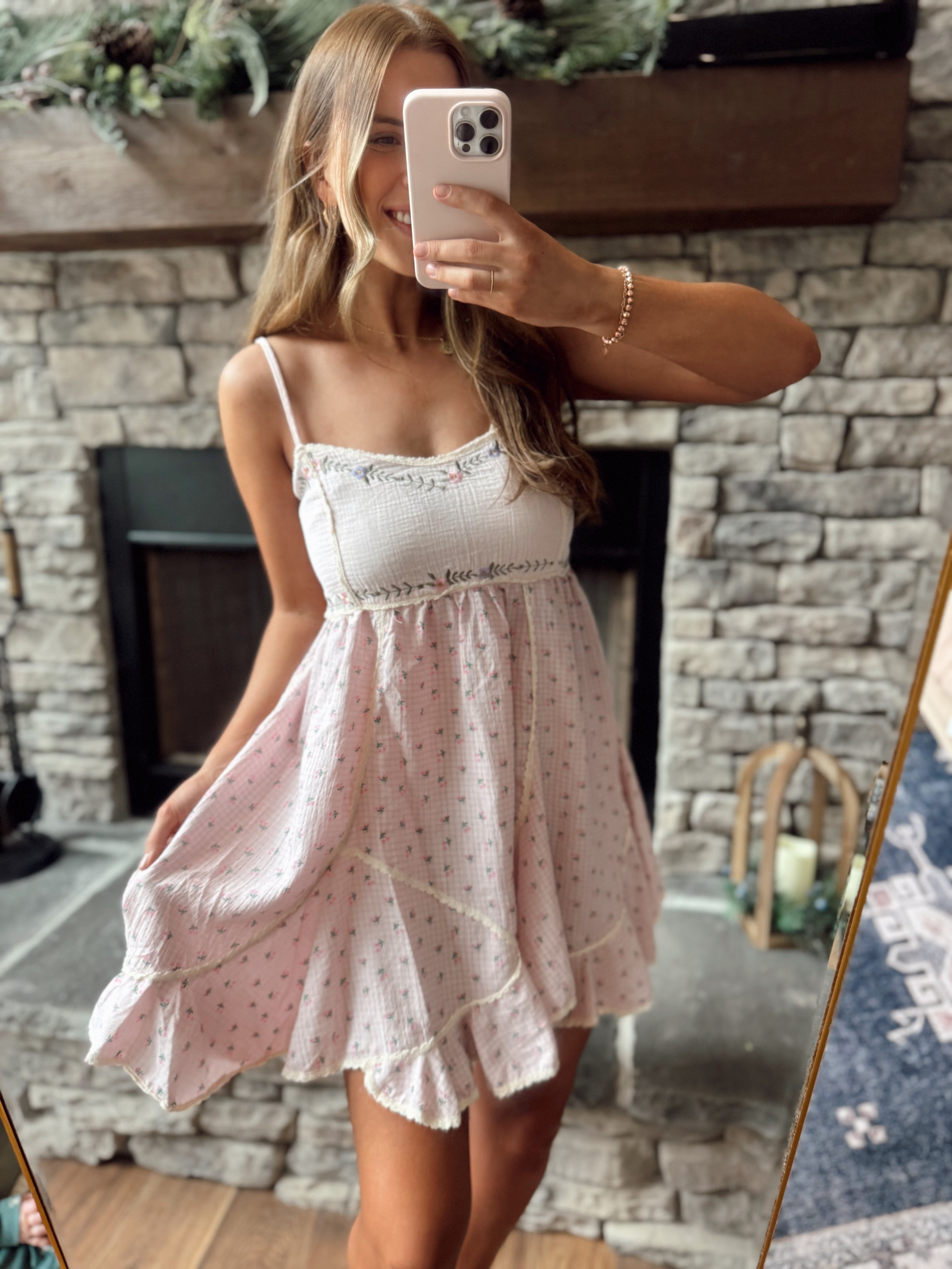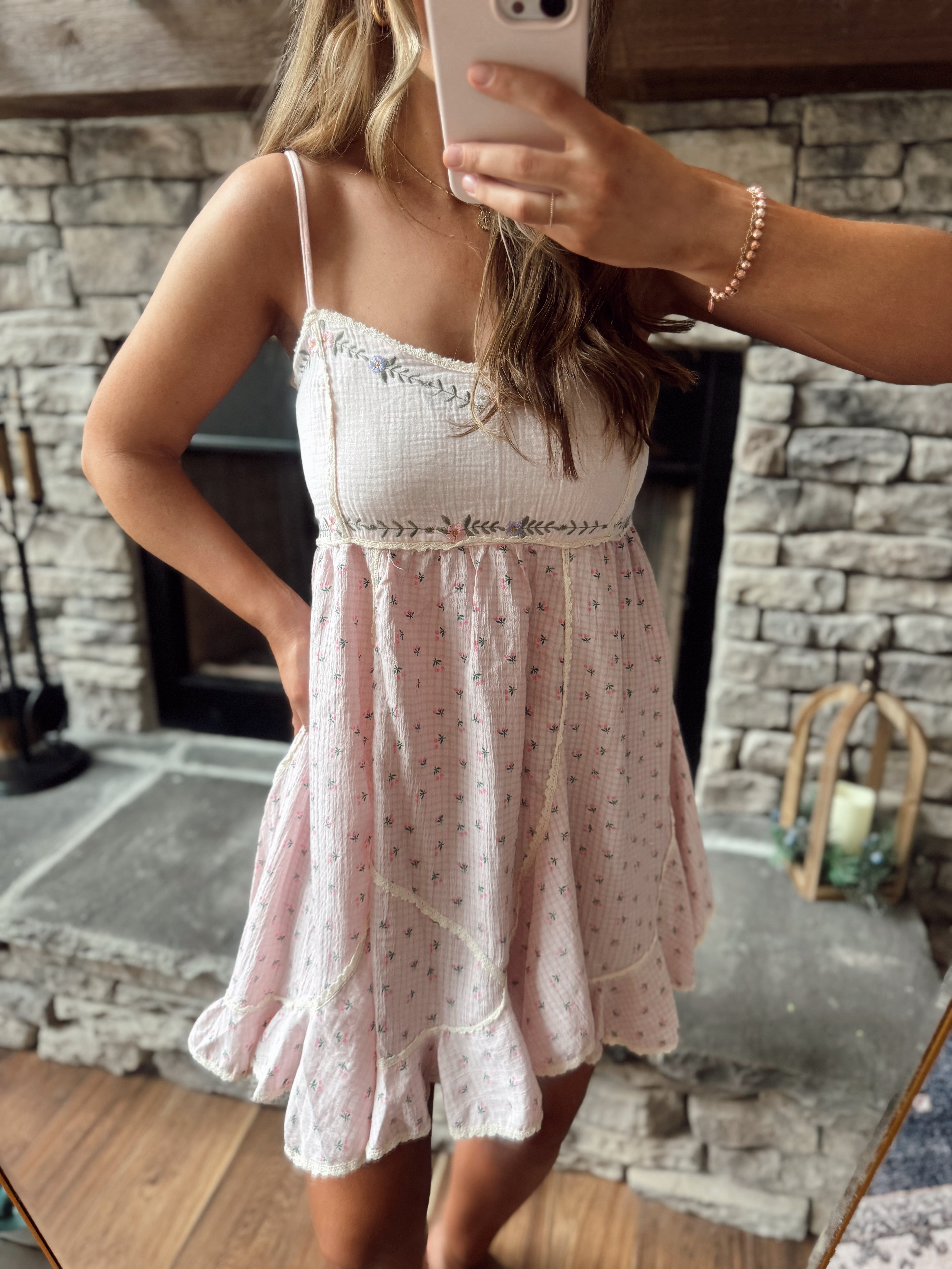 Aliza Almond V-Neck Floral & Crochet Ribbed Mini
