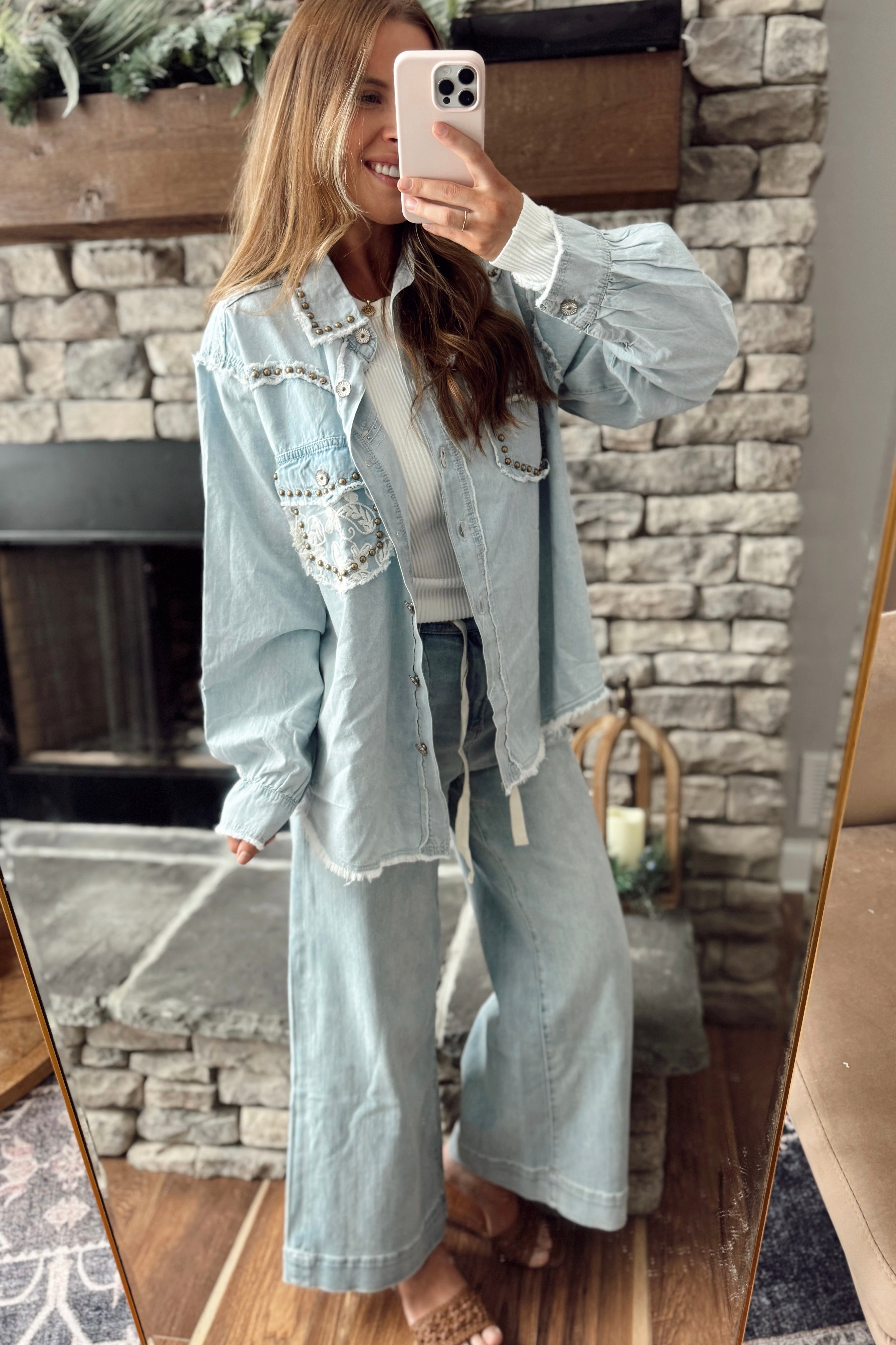 Warm Breeze Olive Multi Floral Gauze/Mesh Mix Hooded Button Down