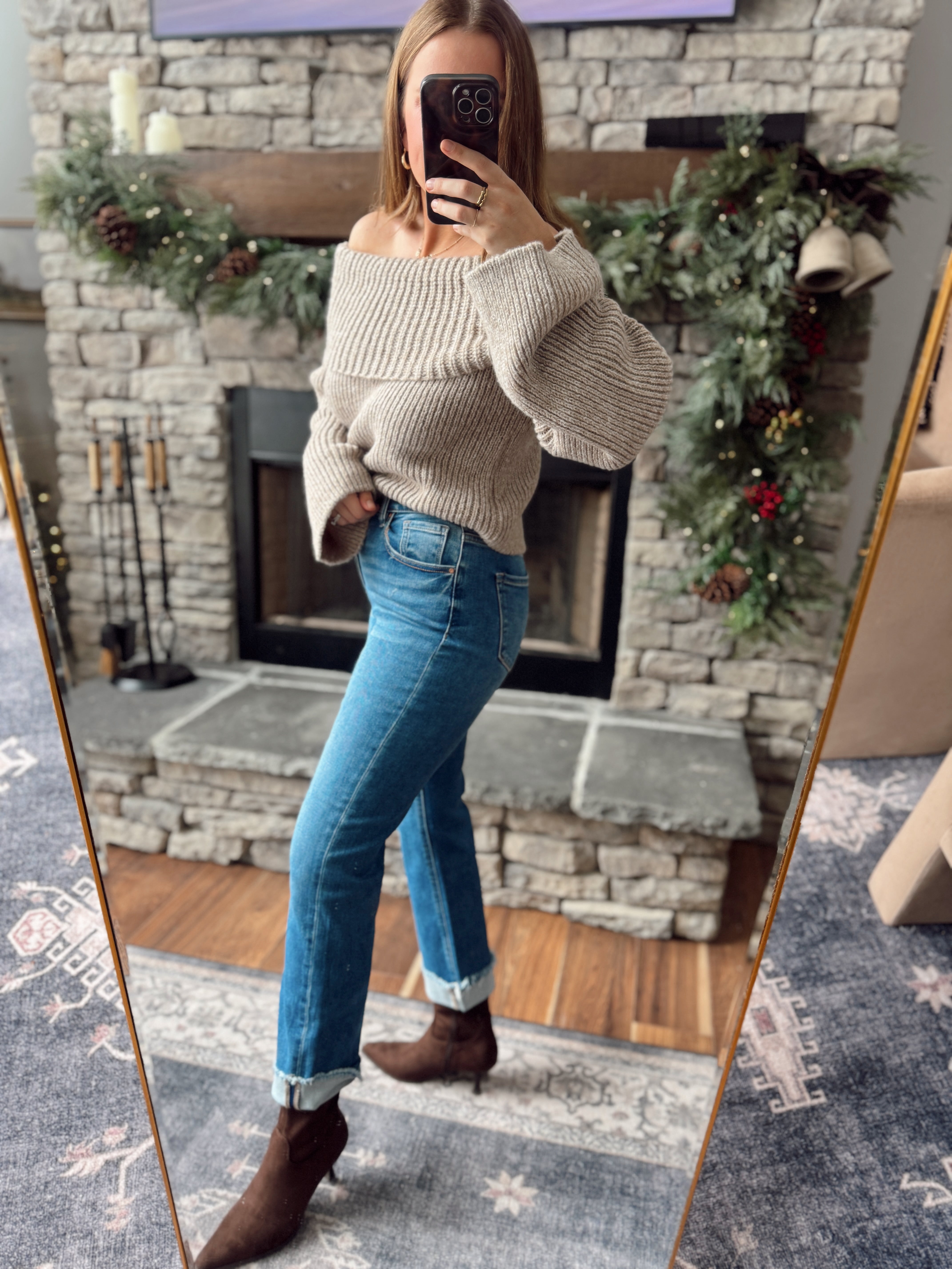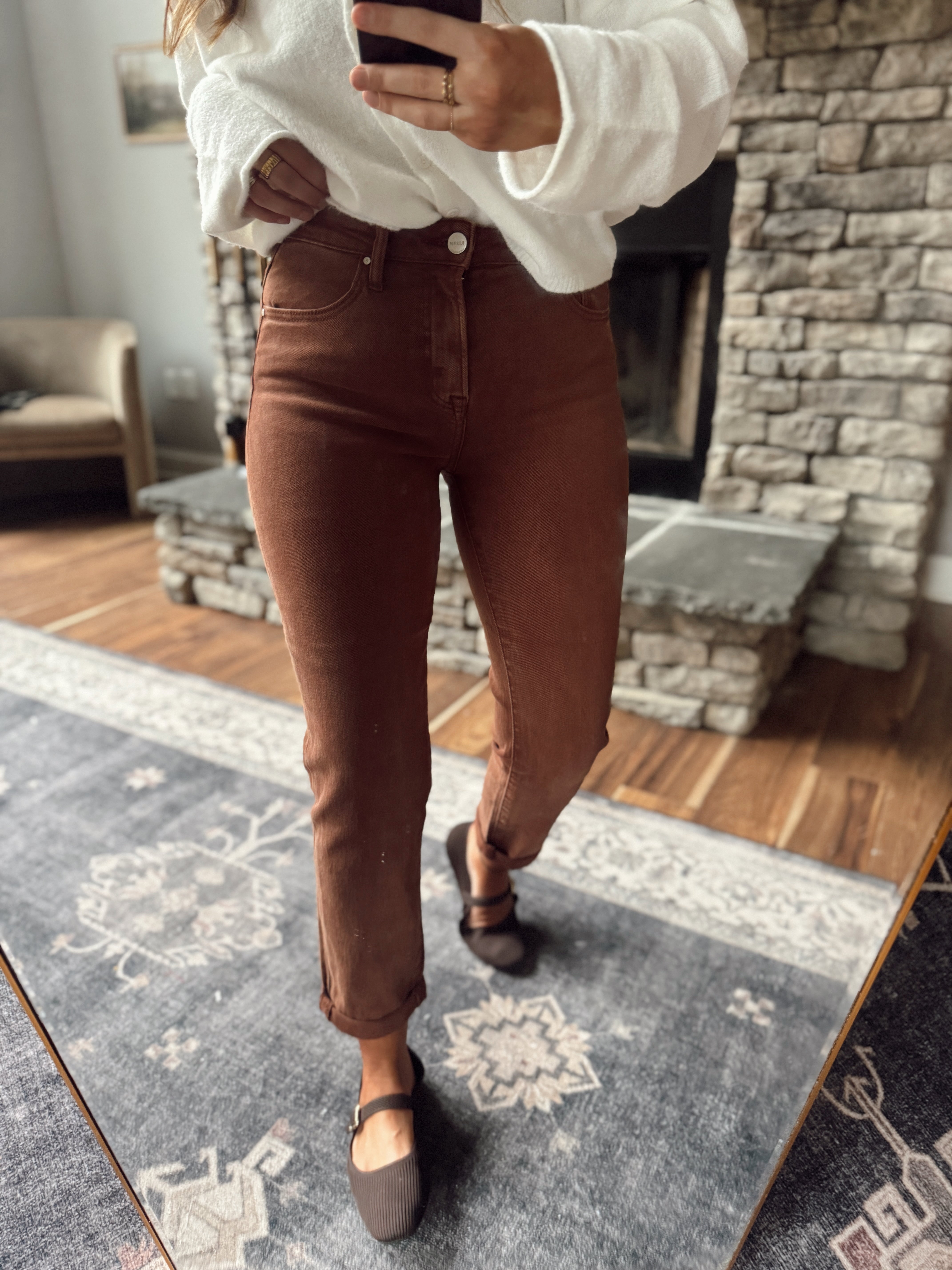 Risen Espresso HR Cuffed Boyfriend Jeans