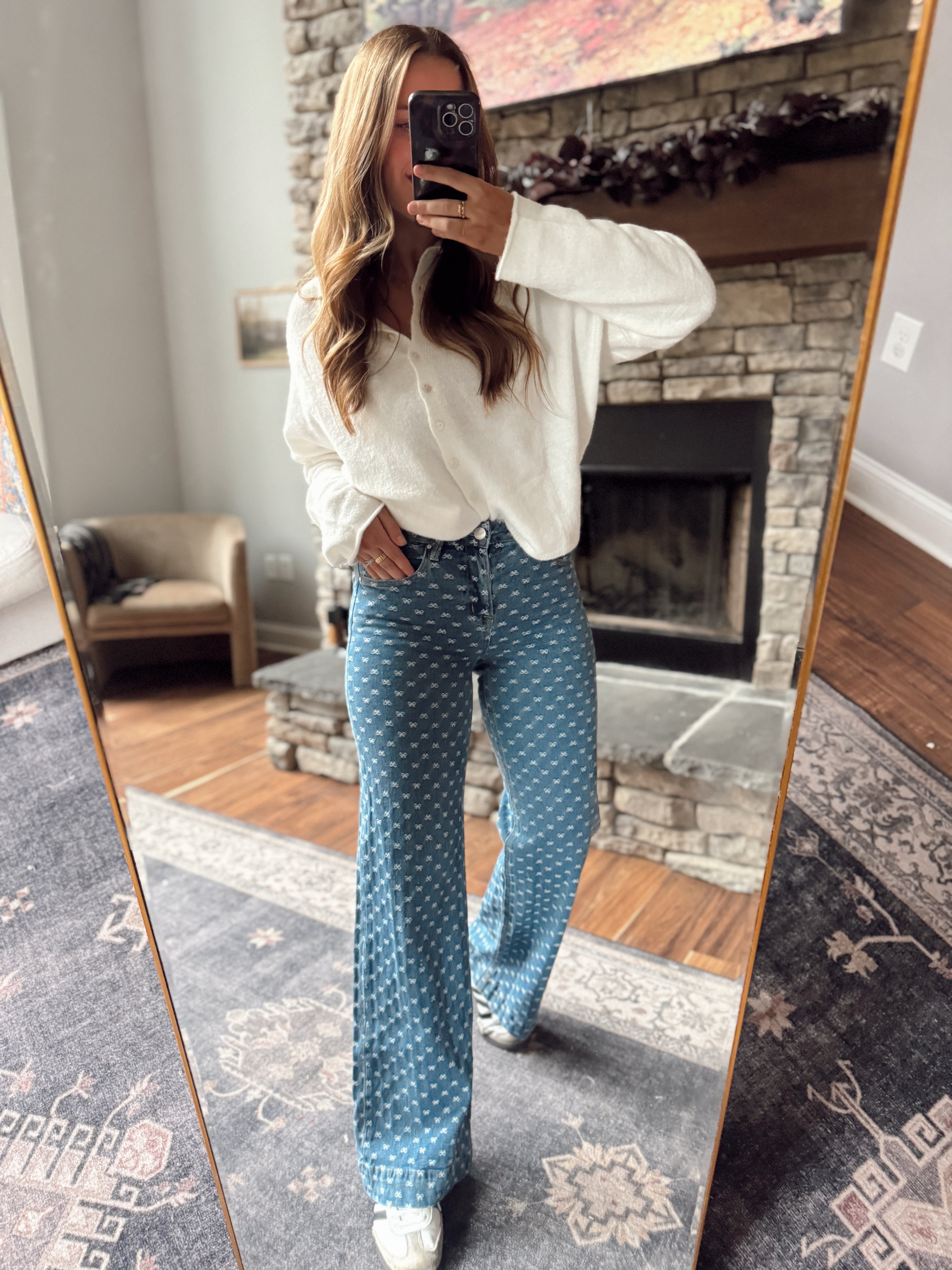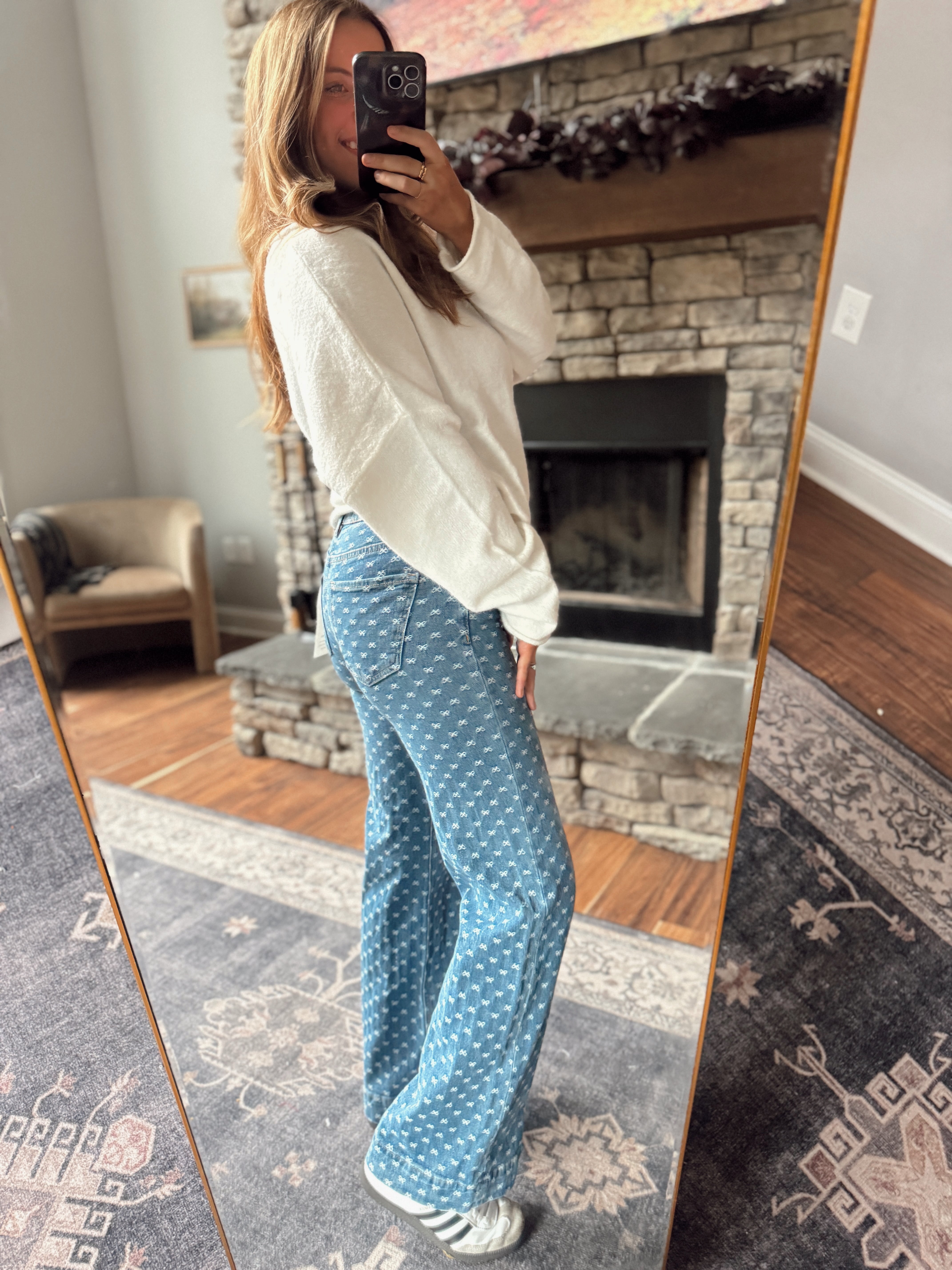 Risen Dark HR Bow Embroidered Wide Leg Jeans