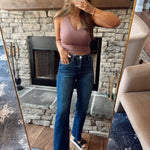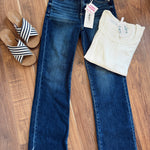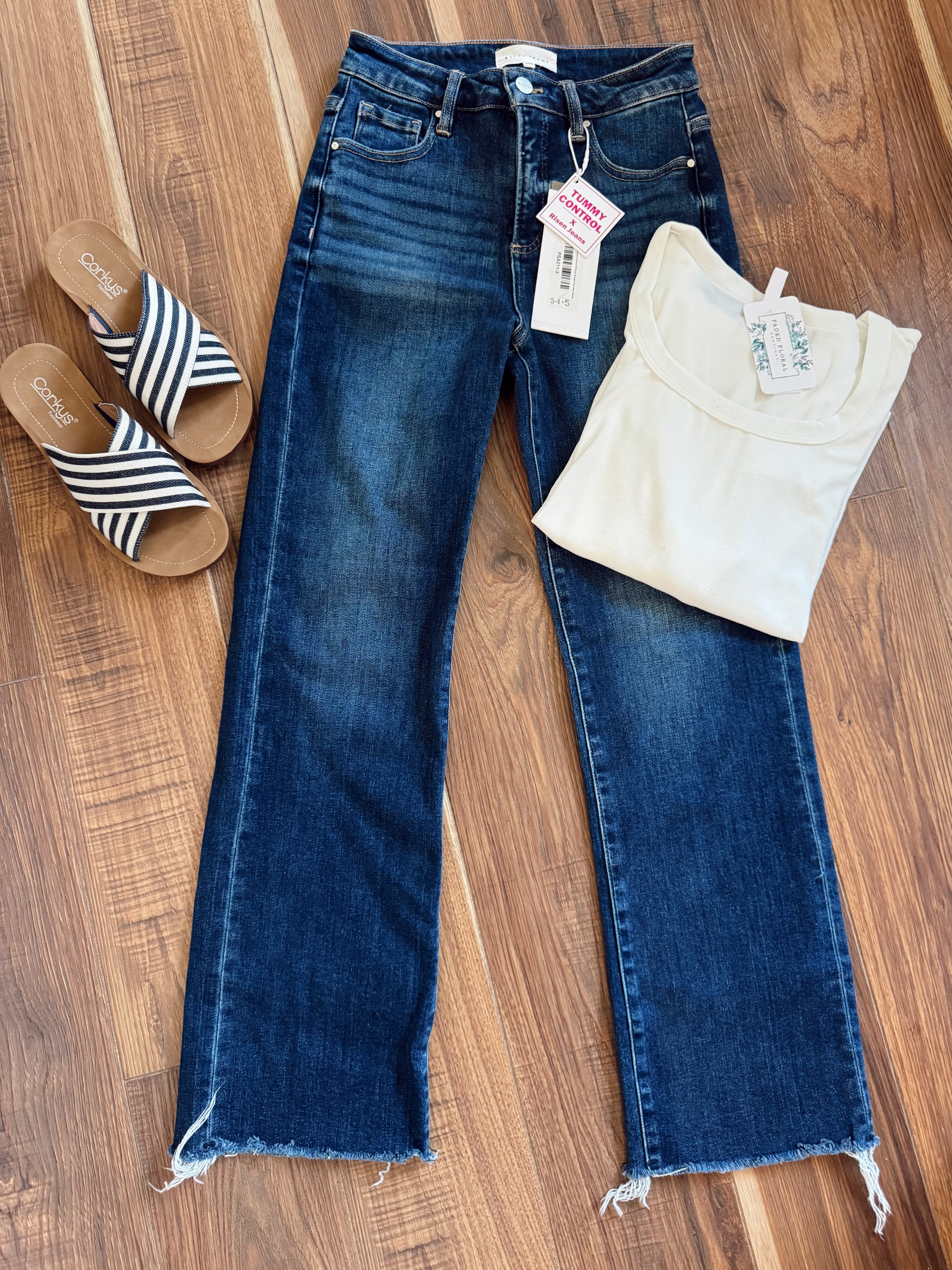 Risen Dark Wash Tummy Control HR Crop Straight Raw Hem Denim