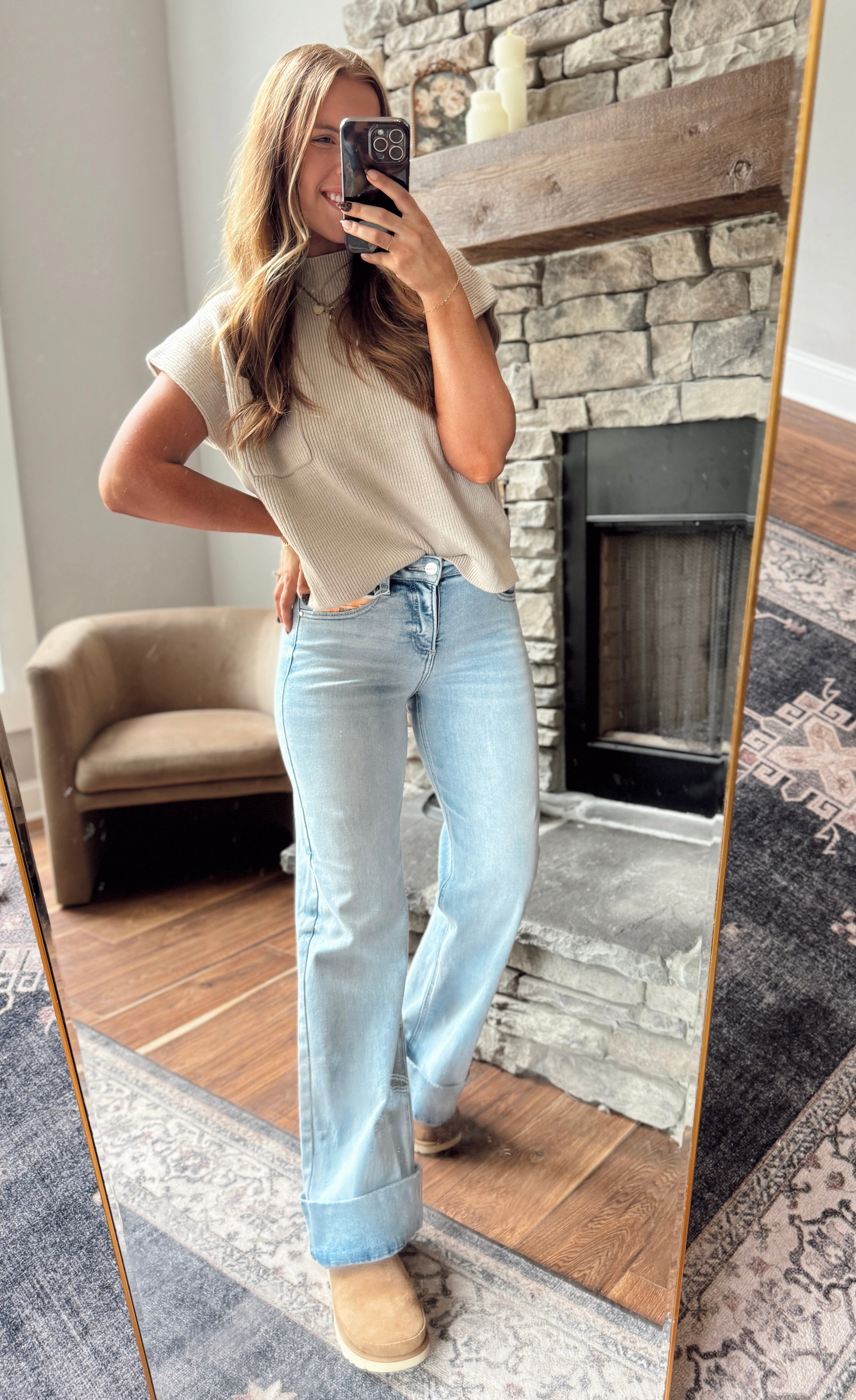 Risen Light Tummy Control HR Ankle Wide Cuffed Jeans