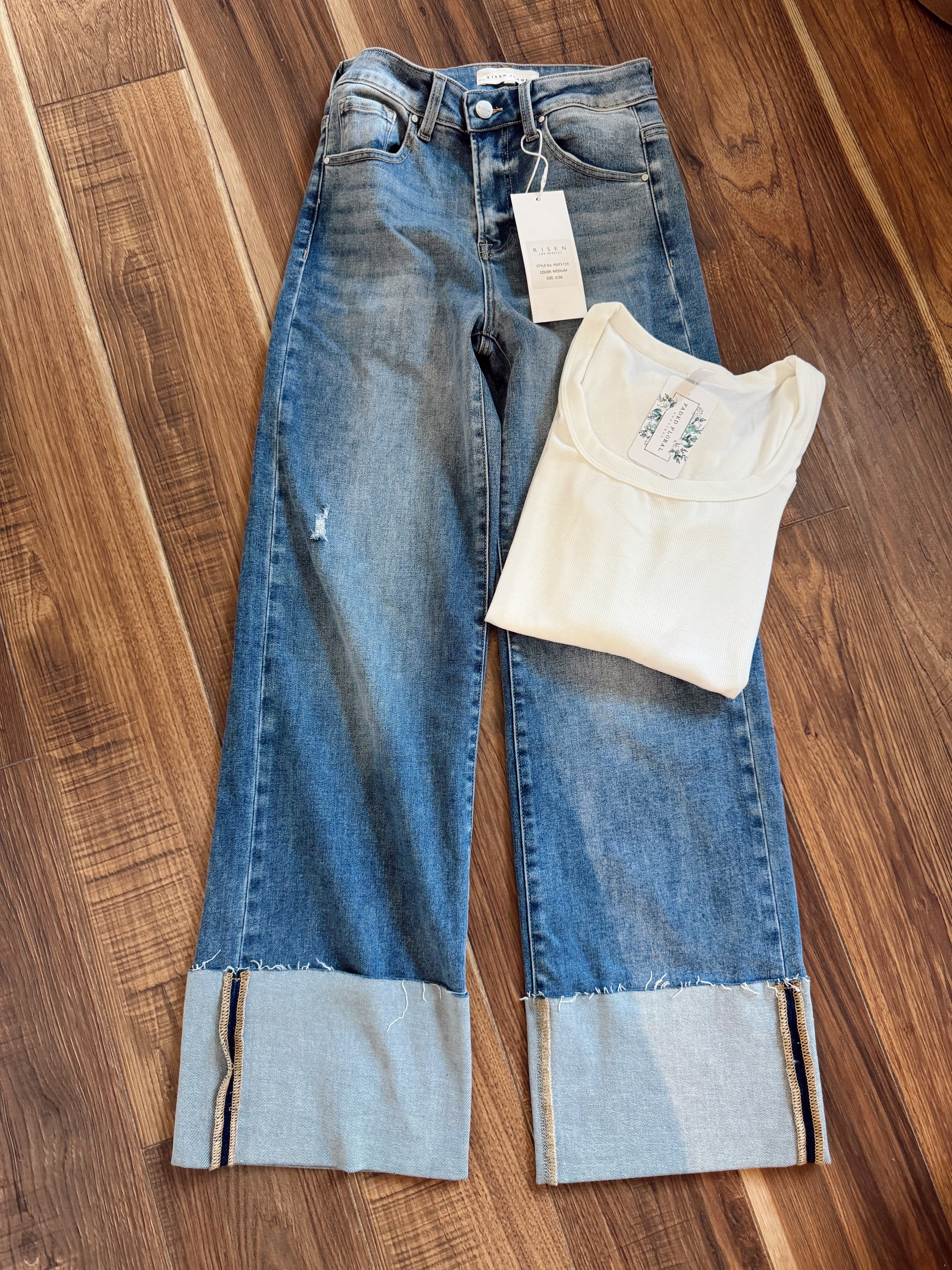 Risen Medium HR Ankle Wide Cuffed Jeans
