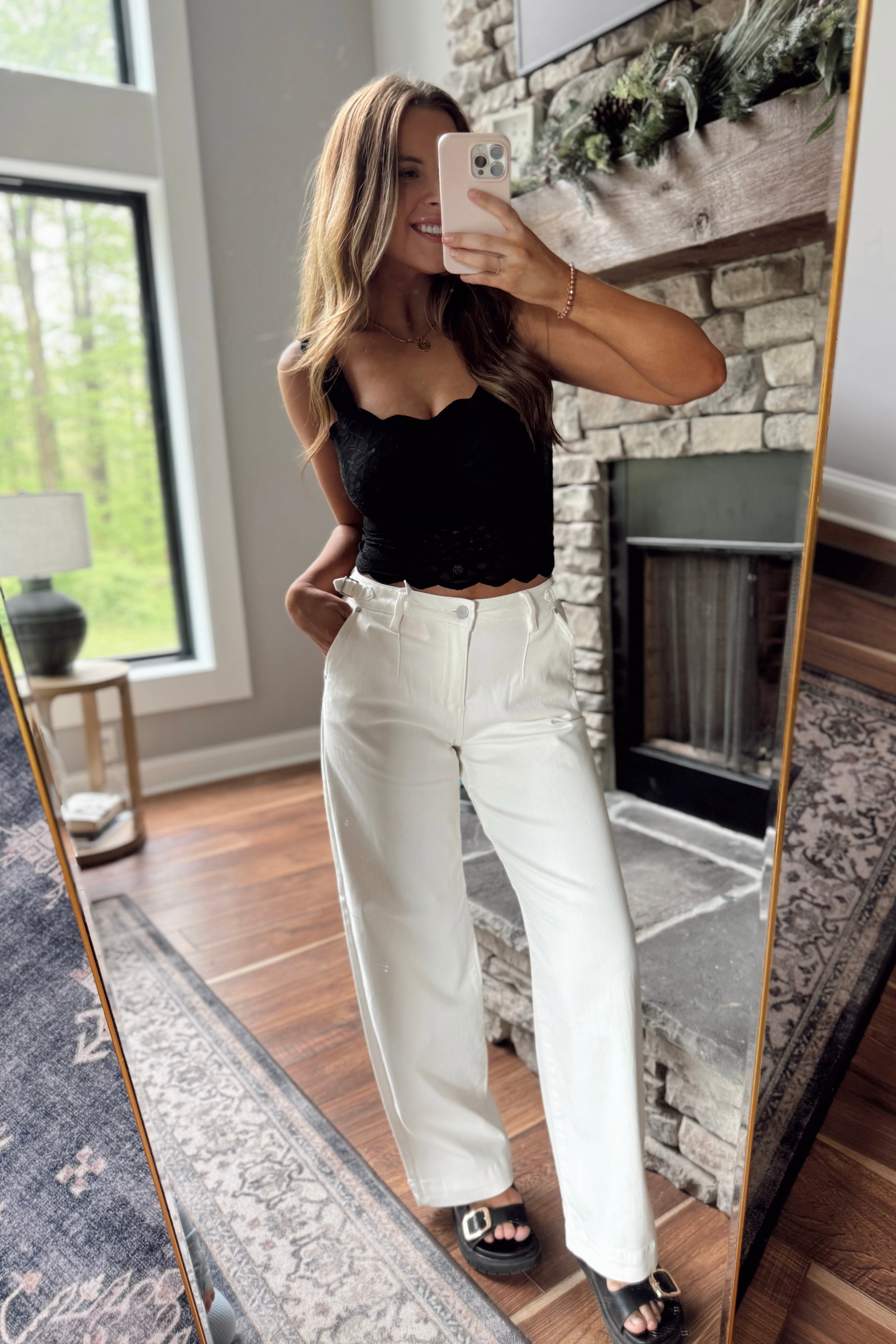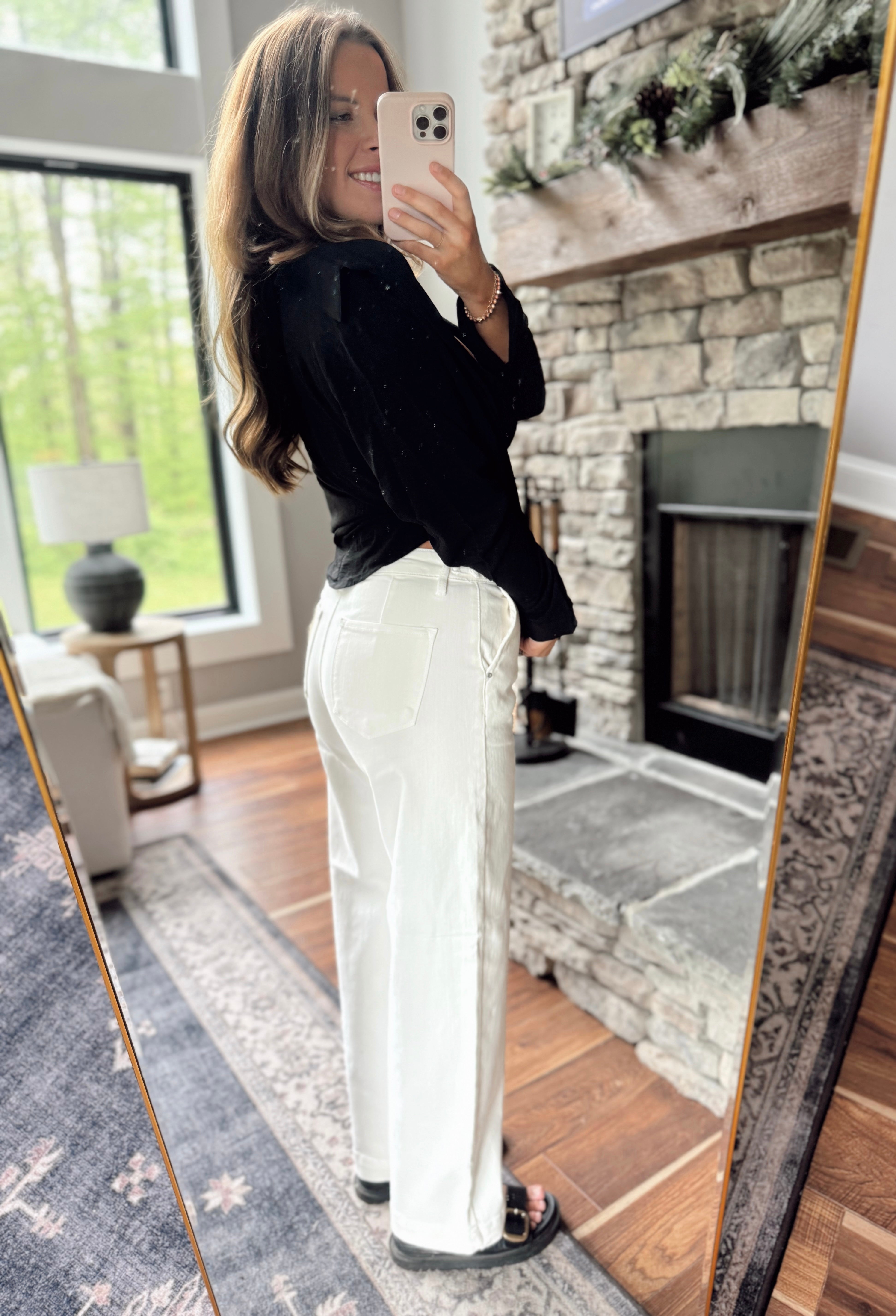 Risen Ivory Tummy Control HR Crop Wide Pants