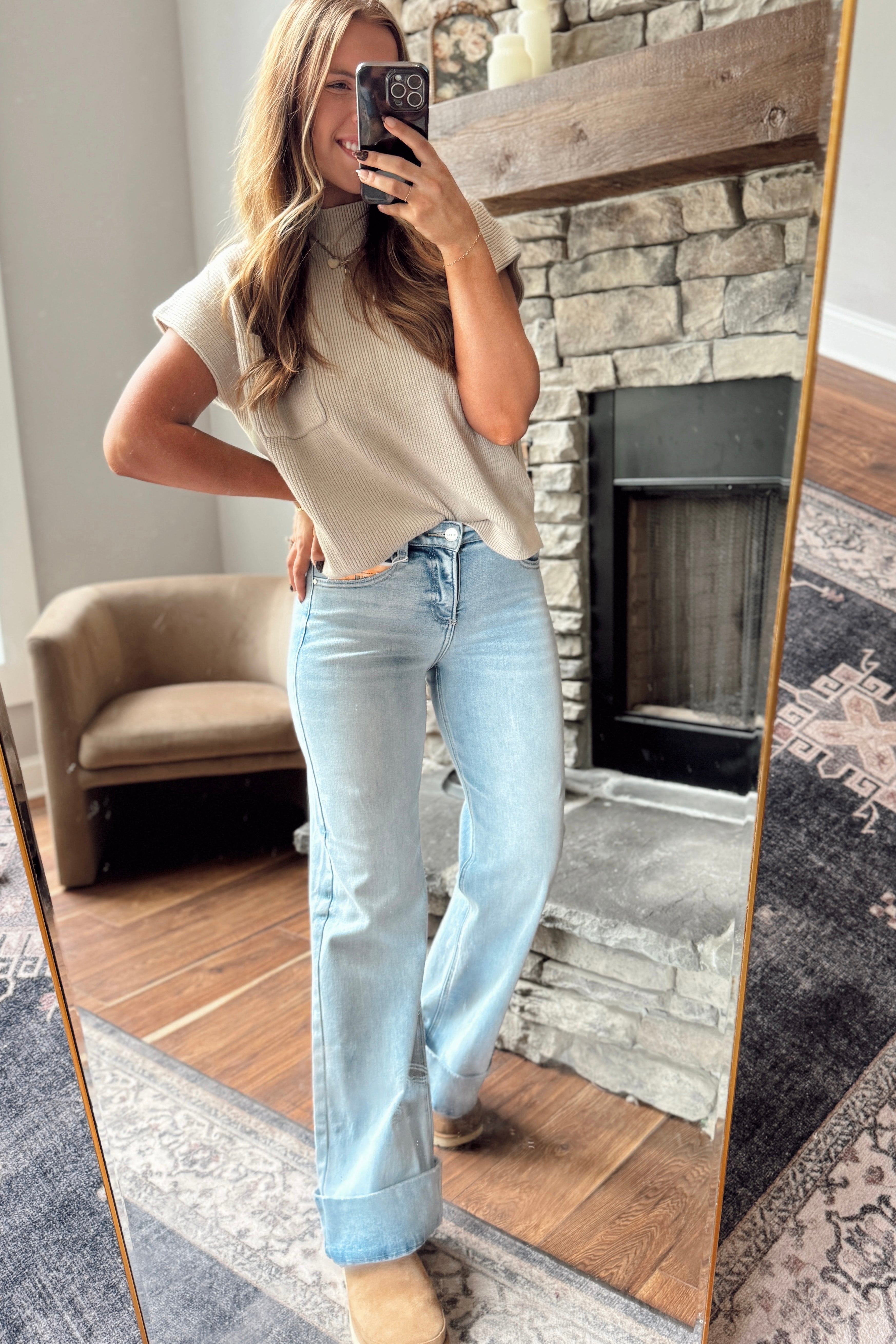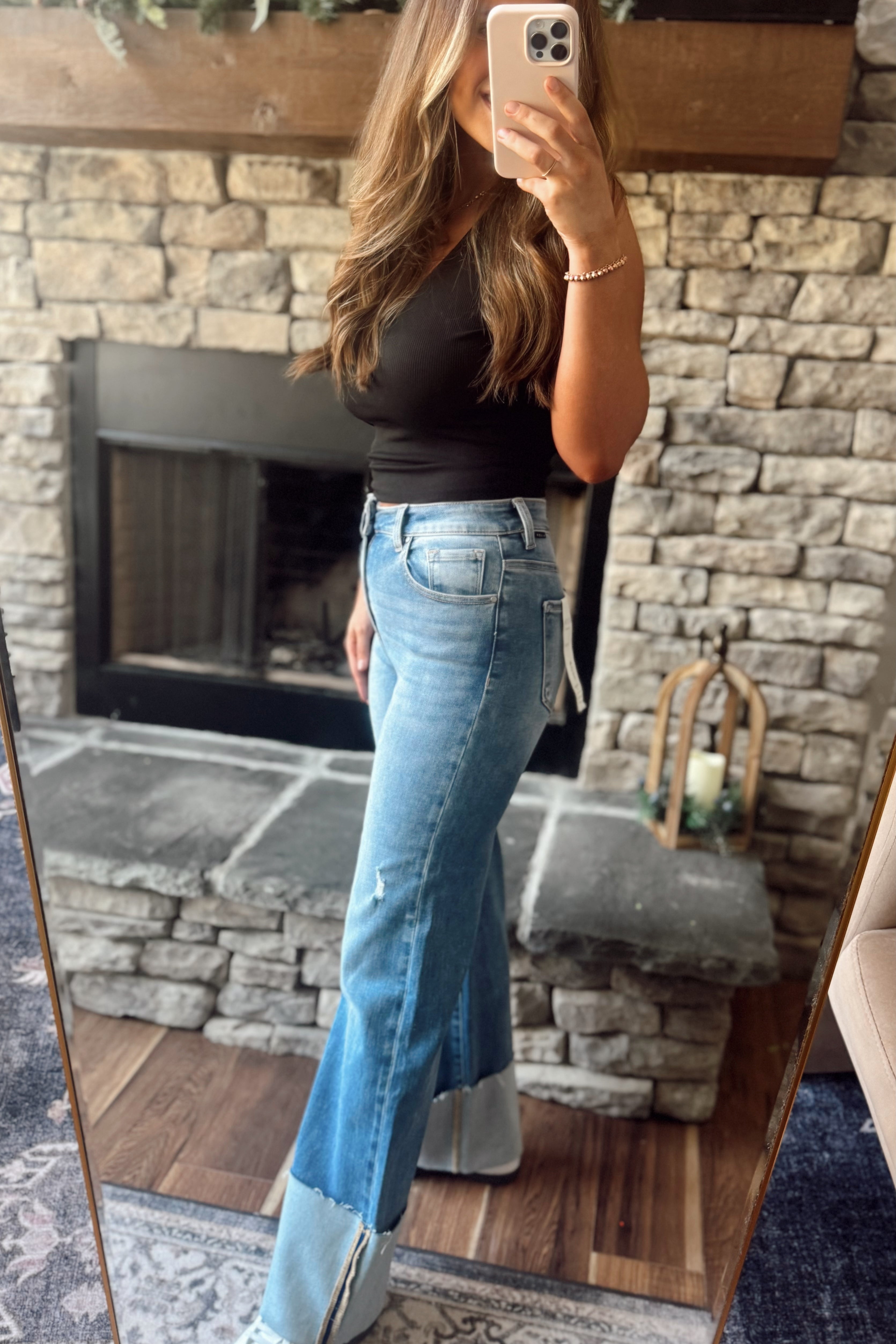 Risen Light Tummy Control HR Ankle Wide Cuffed Jeans