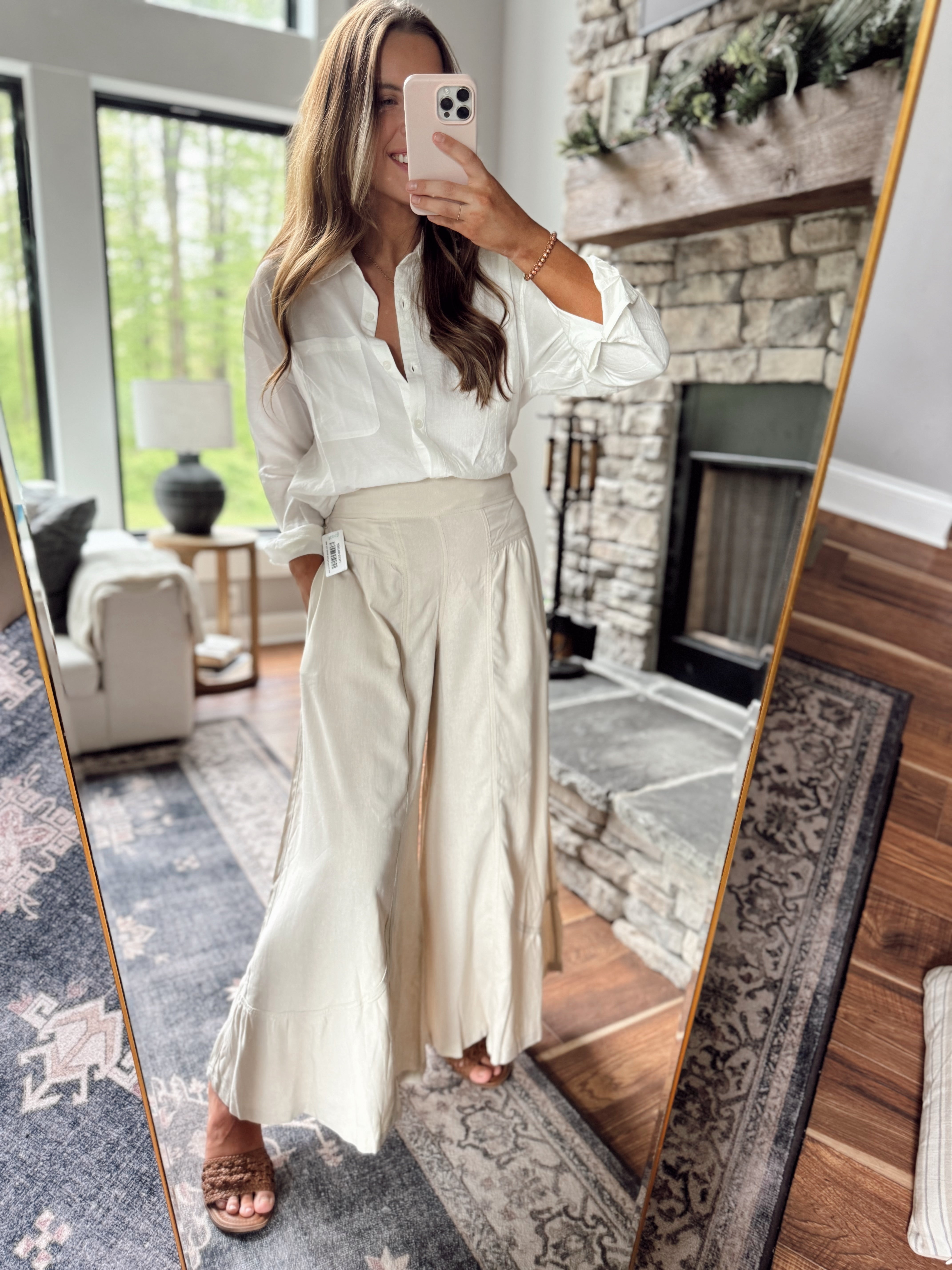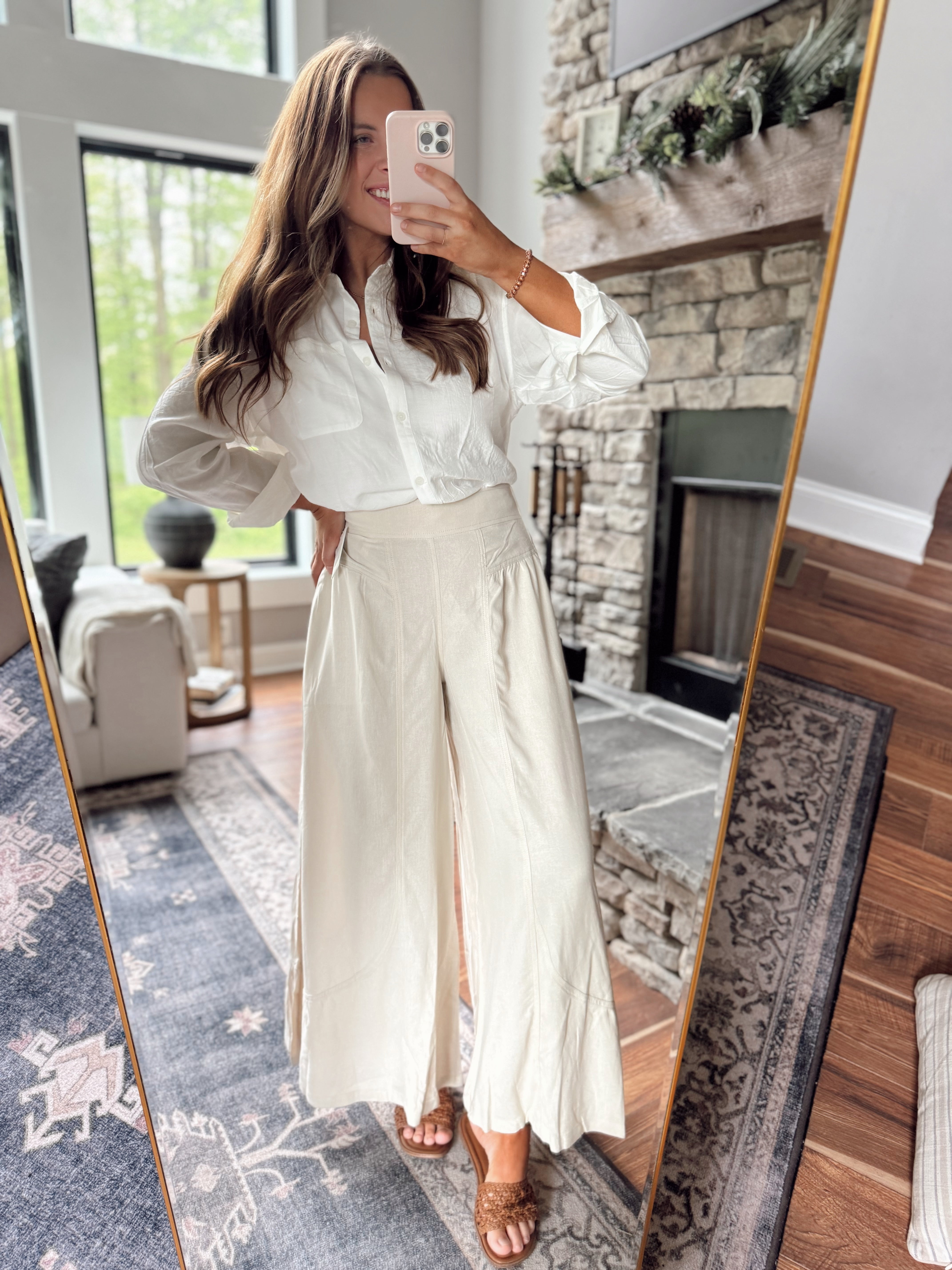 Risen Taupe Shirring Detail Pull On Linen Pants