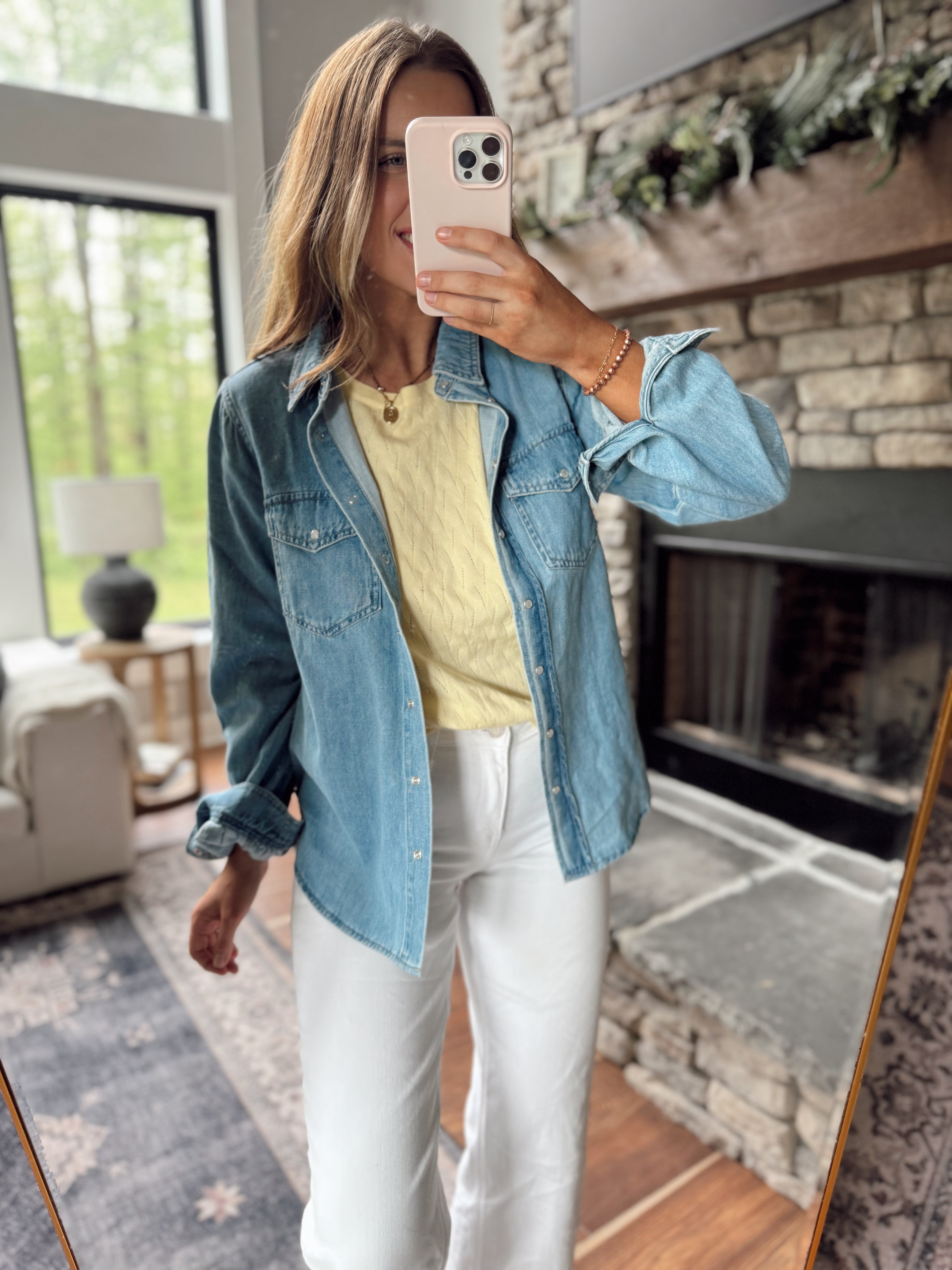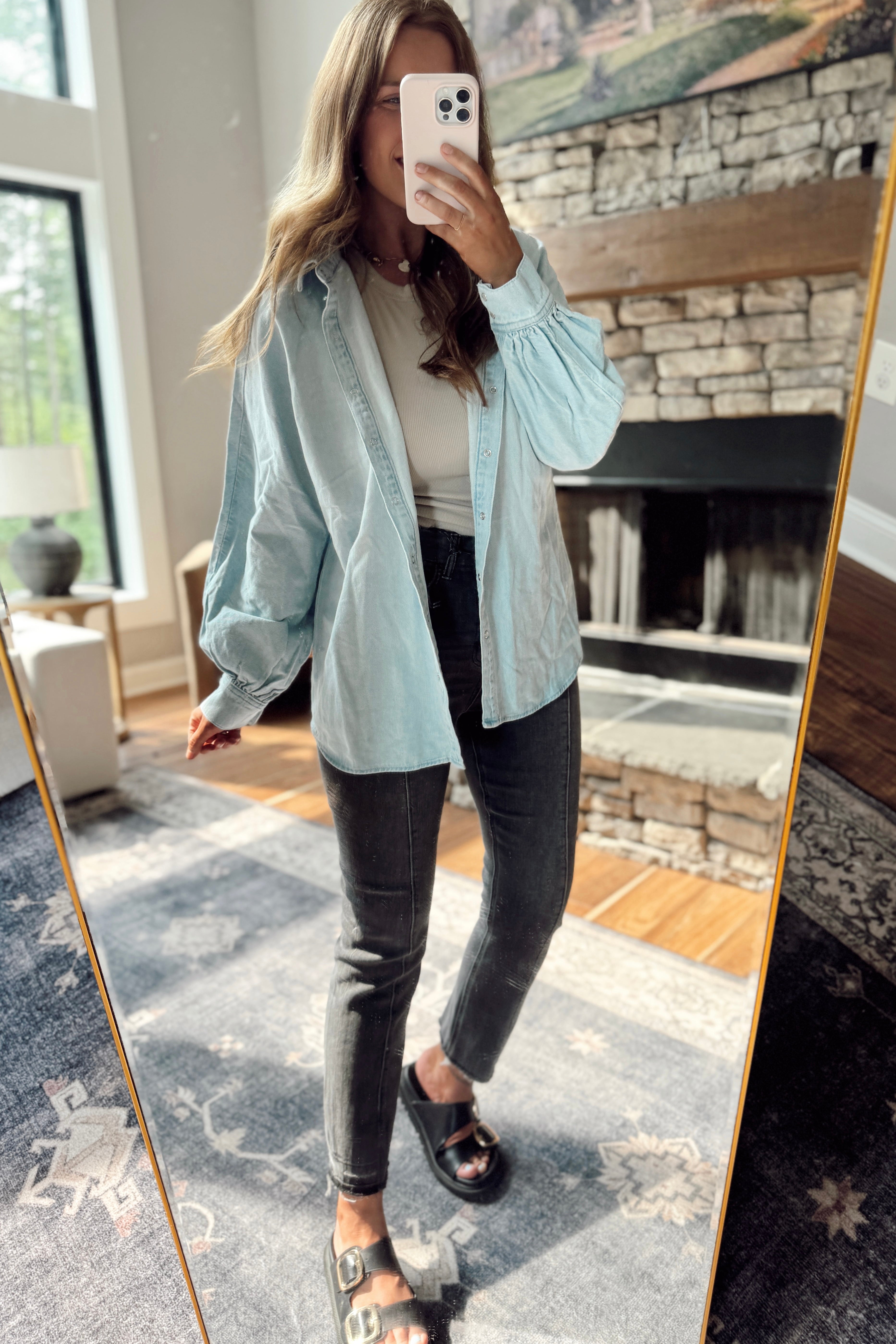 Risen Light Balloon Sleeve Denim Top