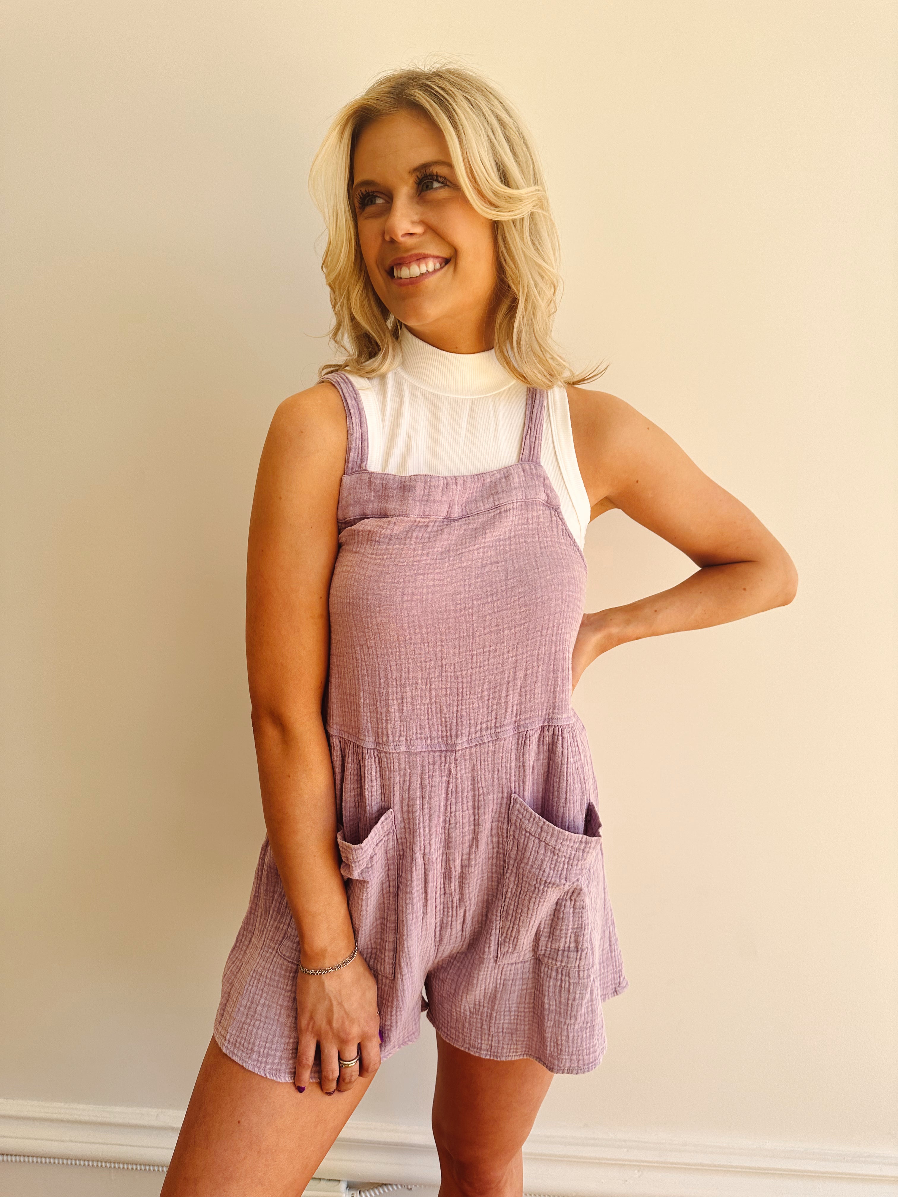 Annika Lavender Mineral Wash Gauze Romper