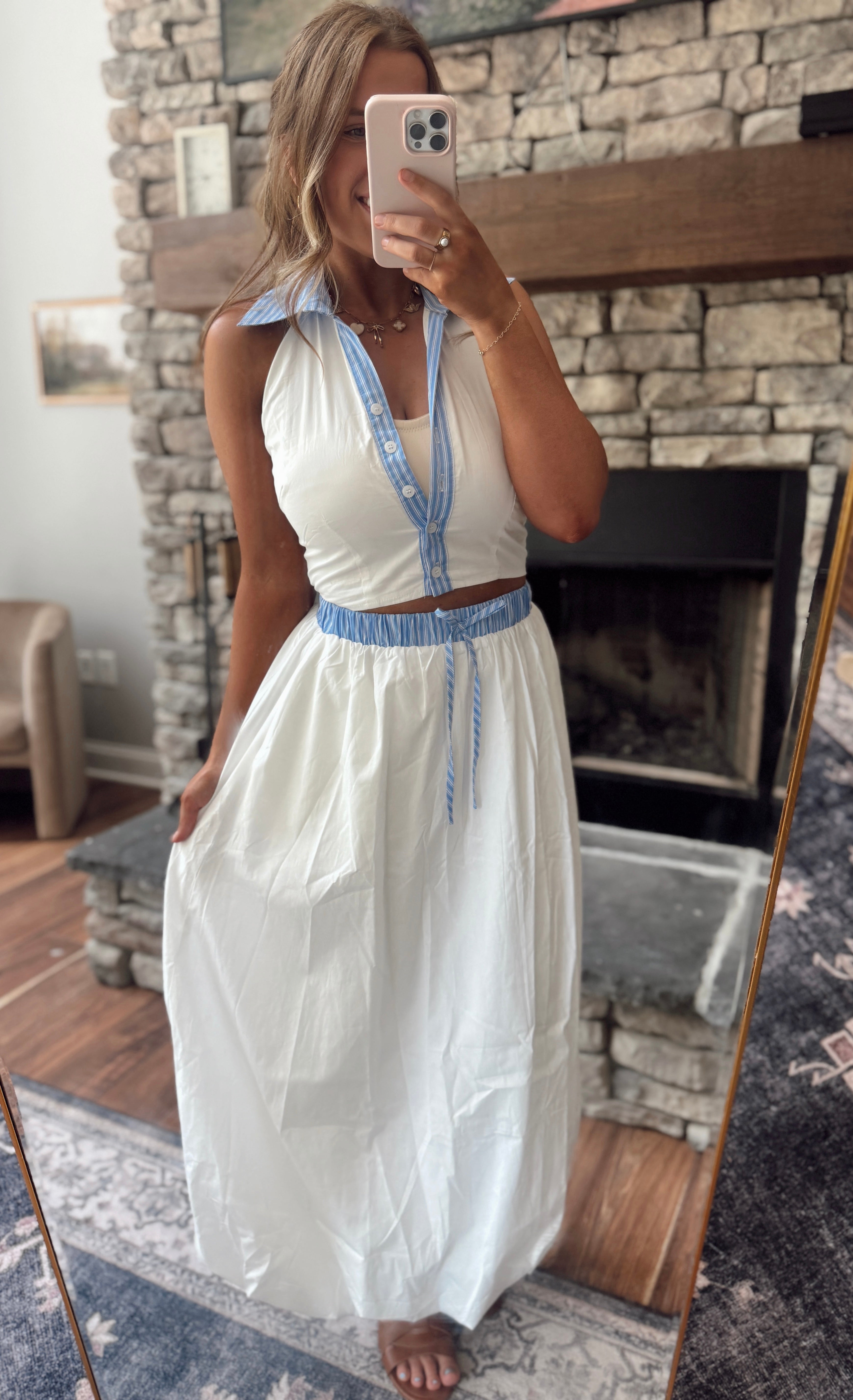 Skirt only - relaxed fit. Love the bubble hem. Great quality and lined