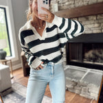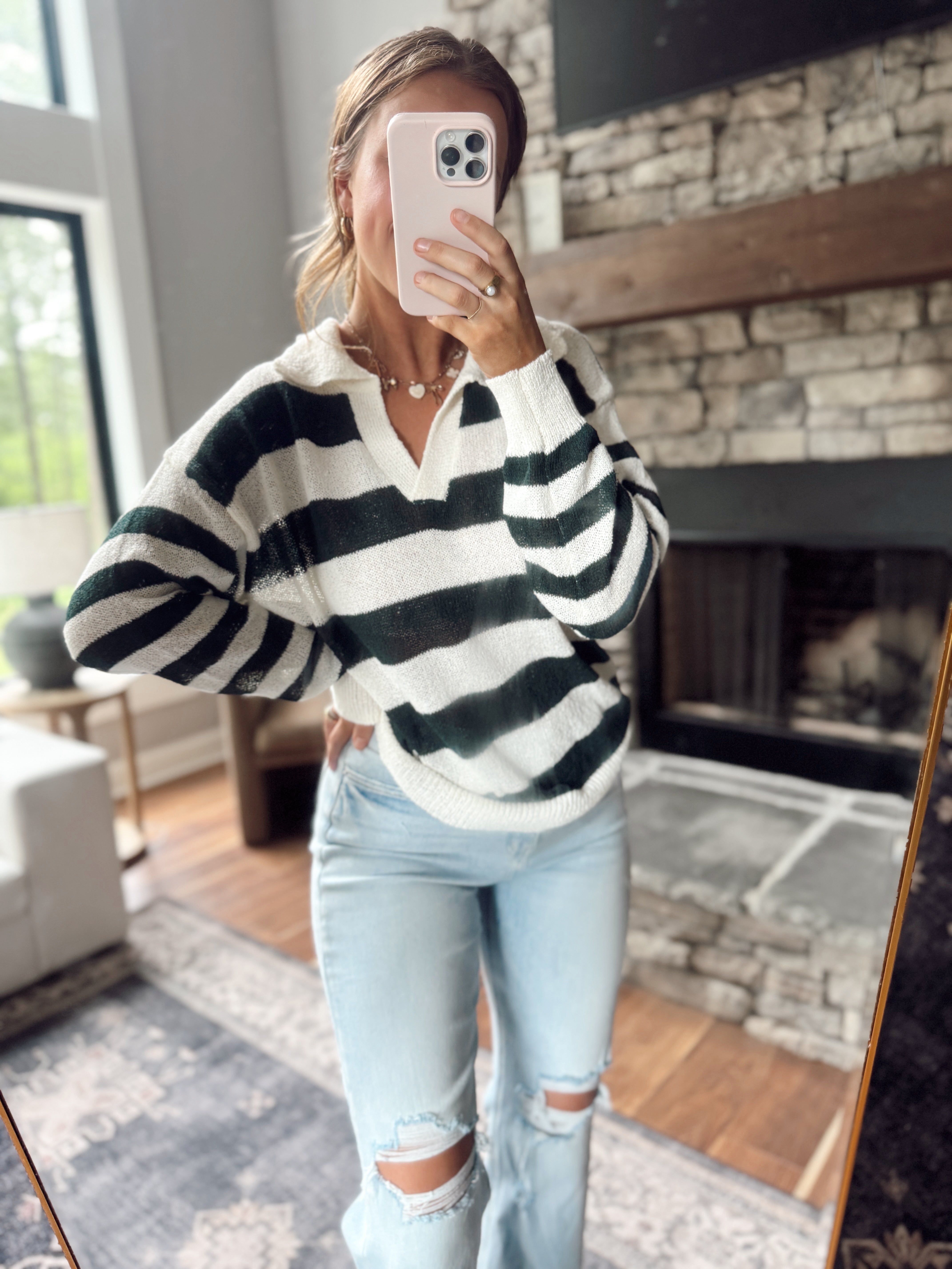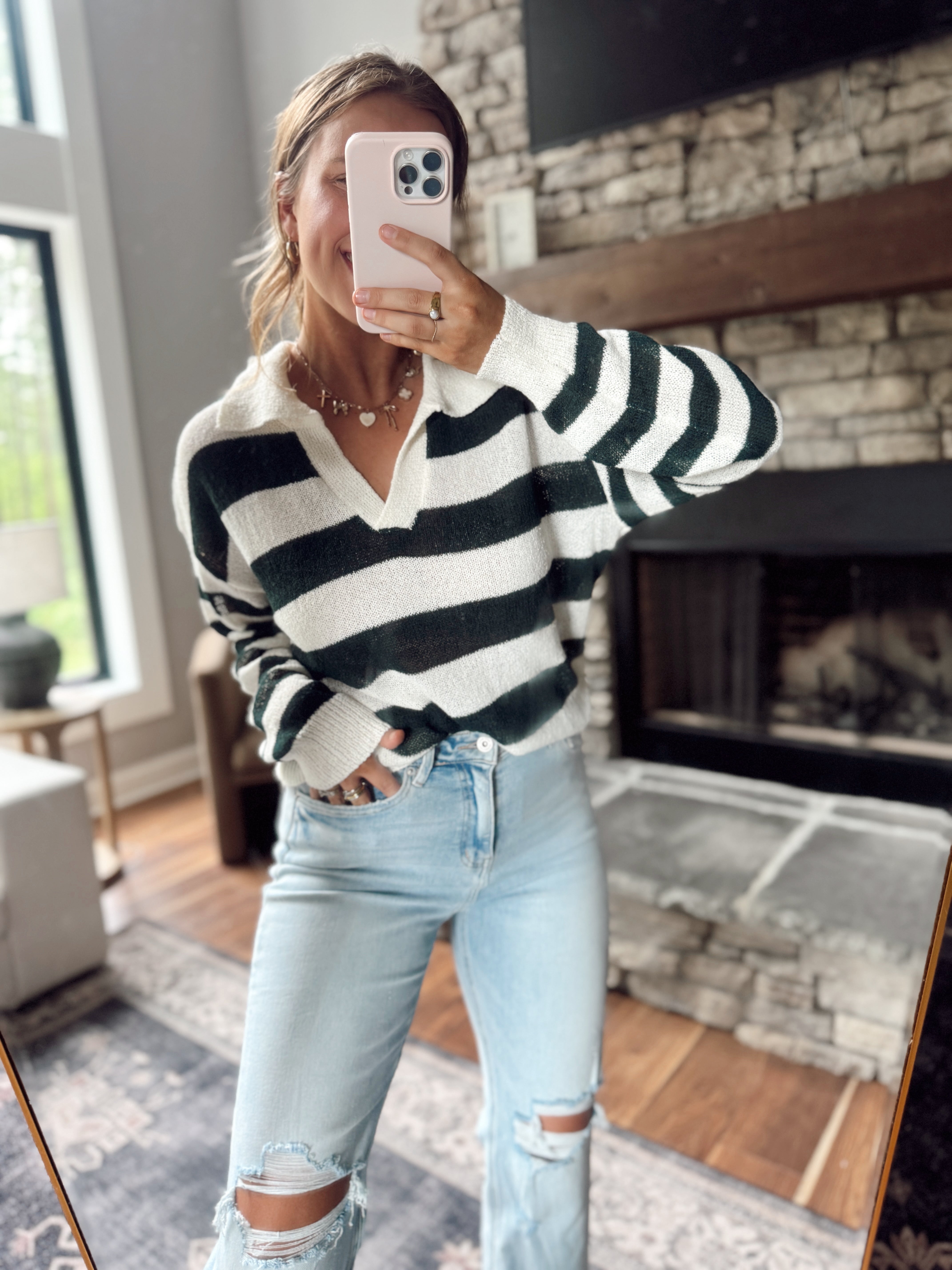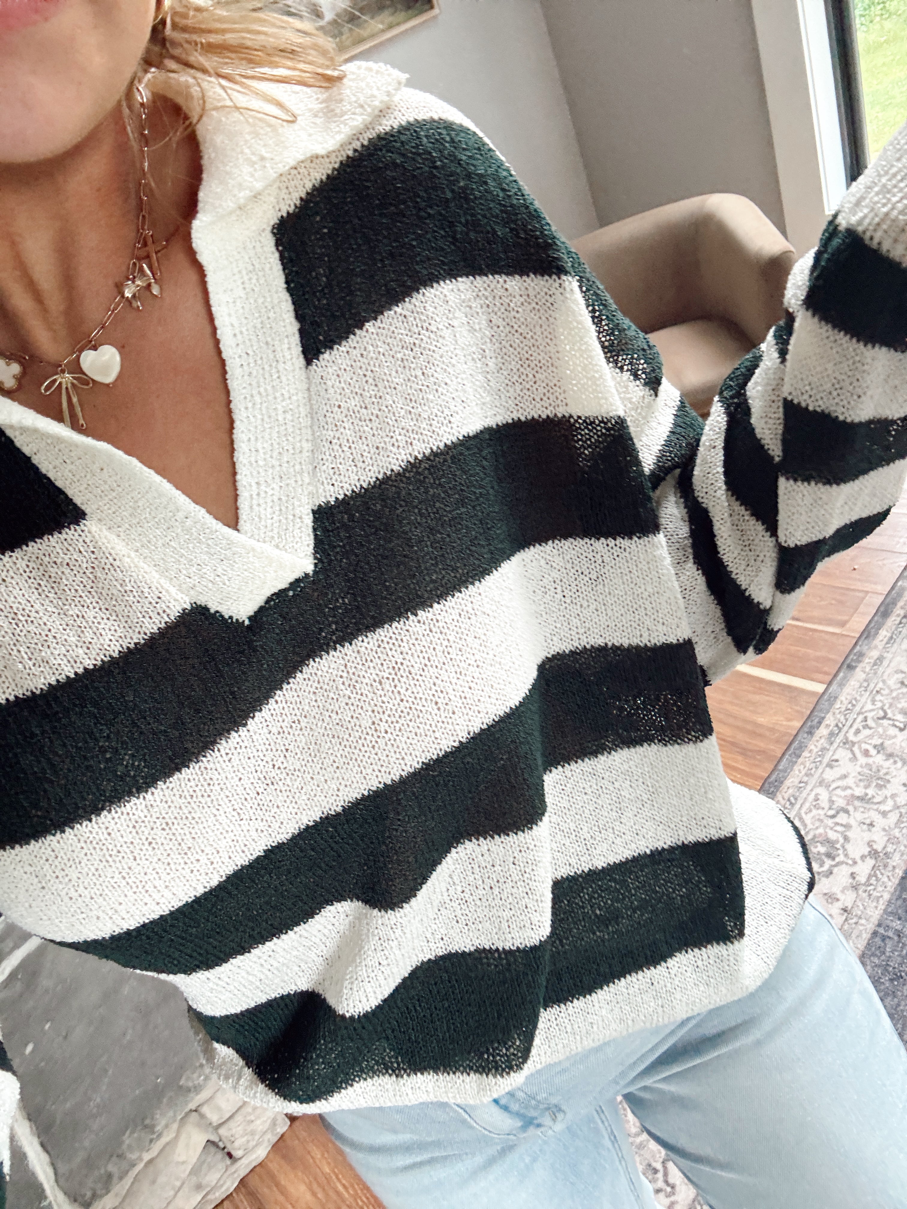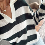Hunter Green Striped V Neck Knit Top