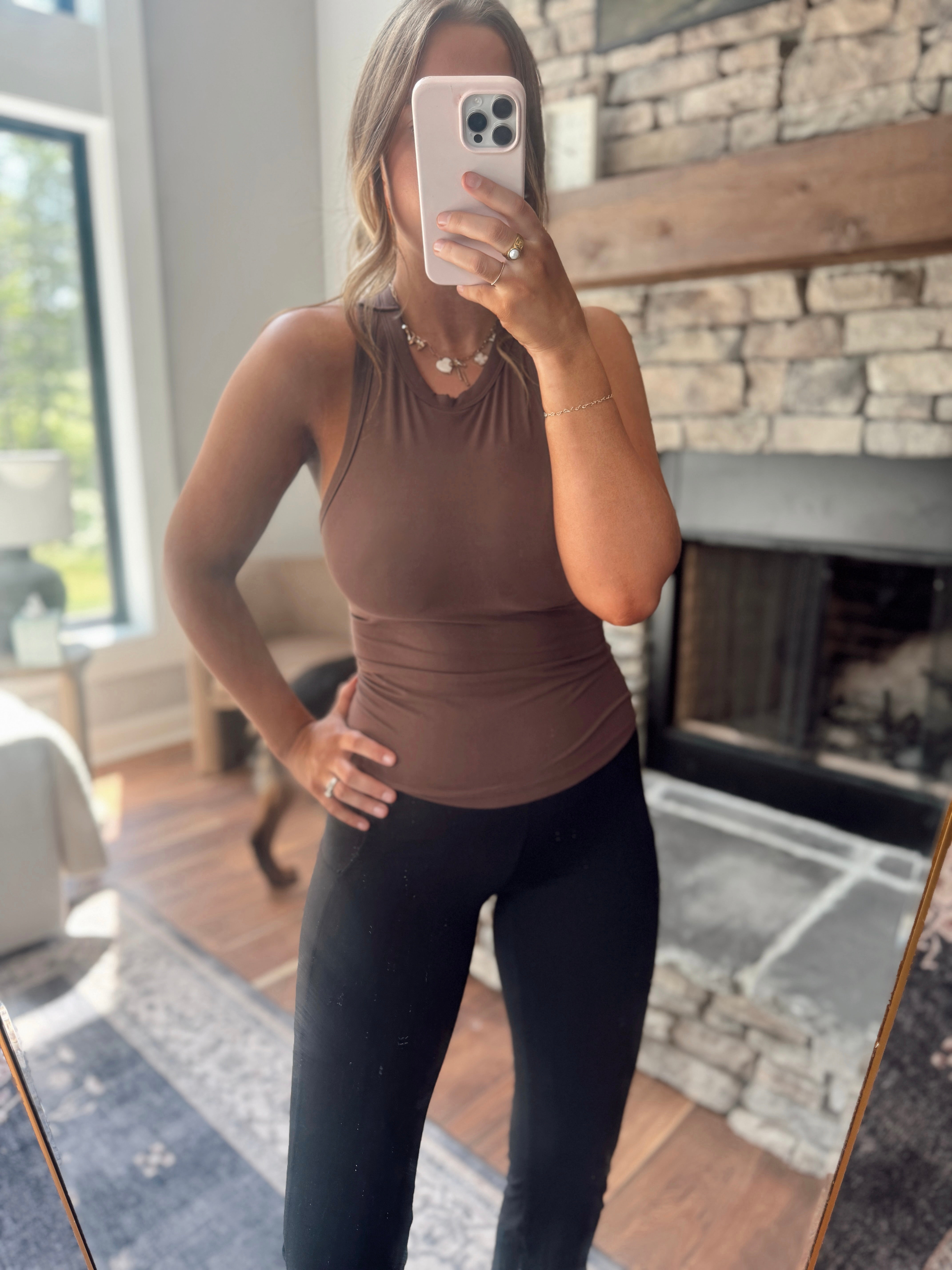 Racerback - true fit. padded / little support shelf! Butter soft. Rae mode. Full length.