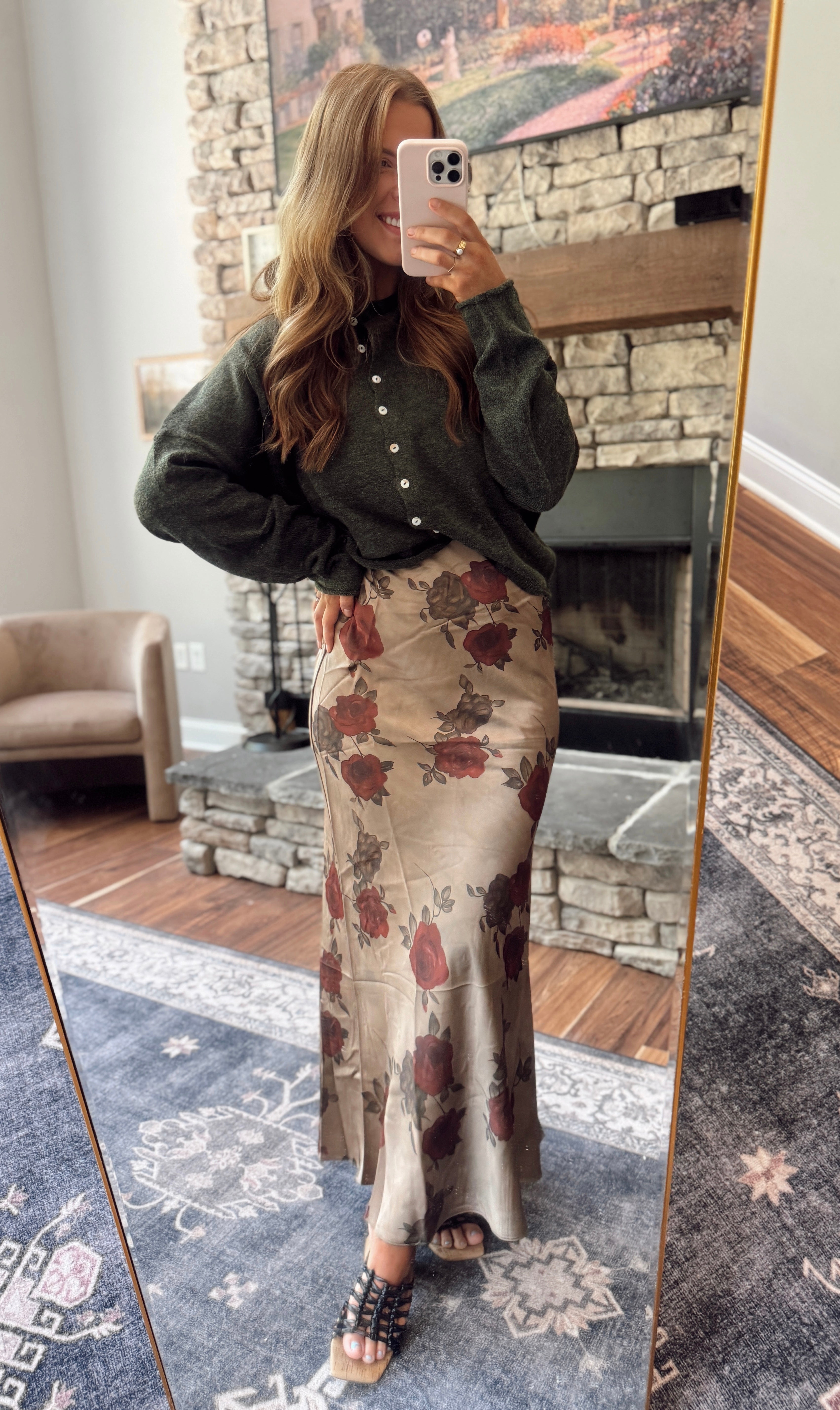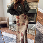 Olive Floral Satin Maxi Skirt
