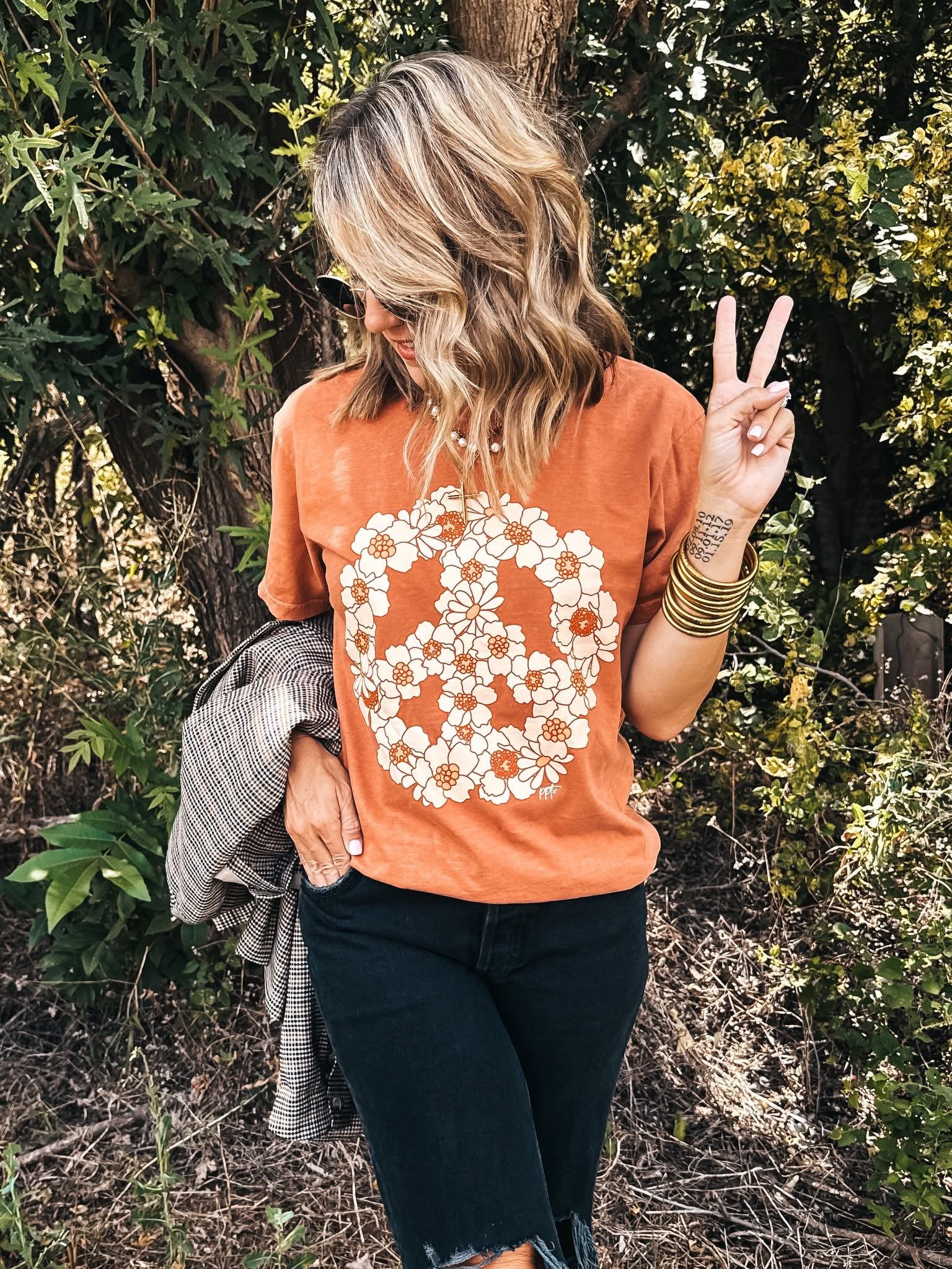 Peace Floral Tee IN STOCK