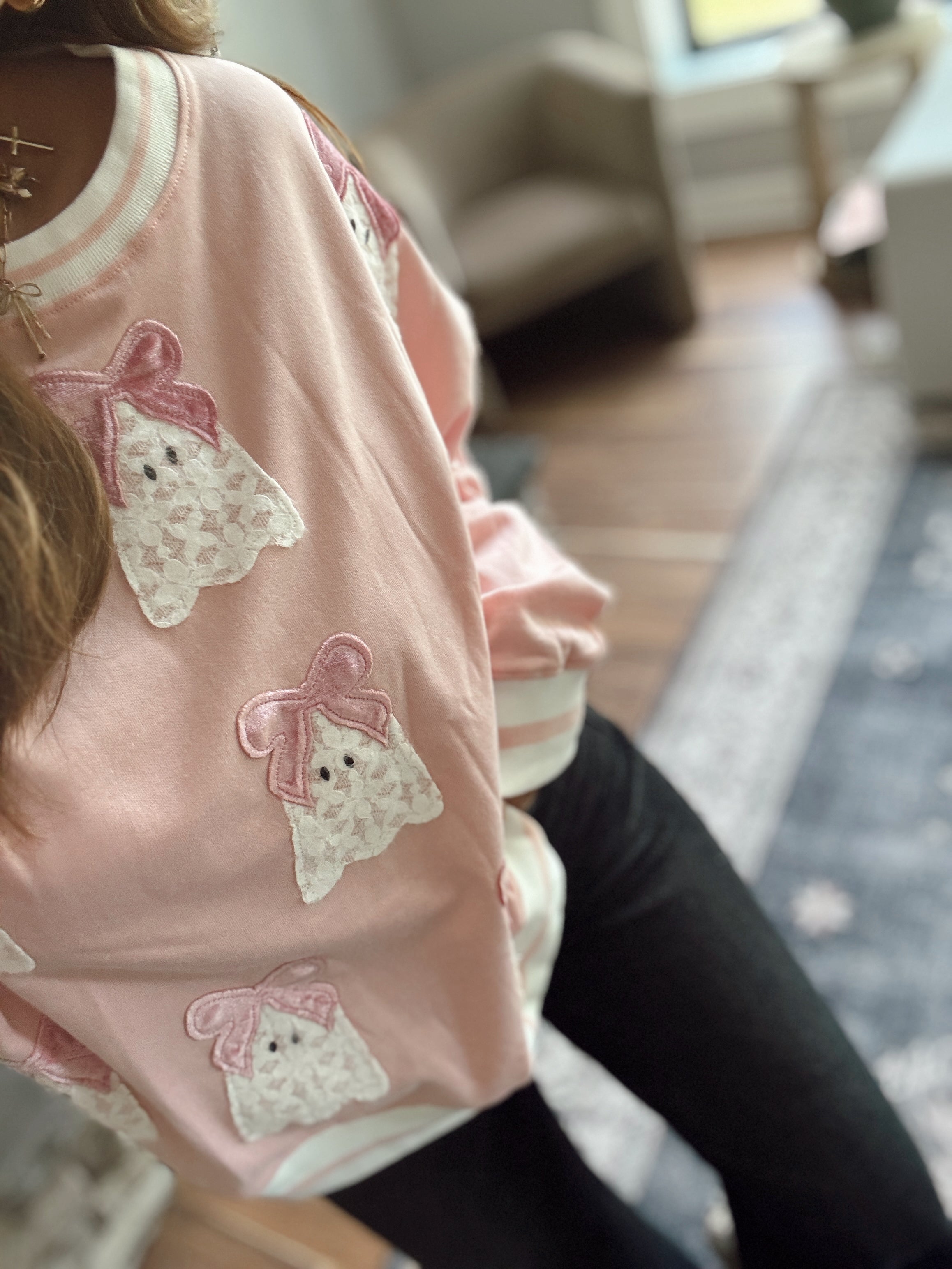 Pink Lace Boo Velvet Bow Sweatshirt