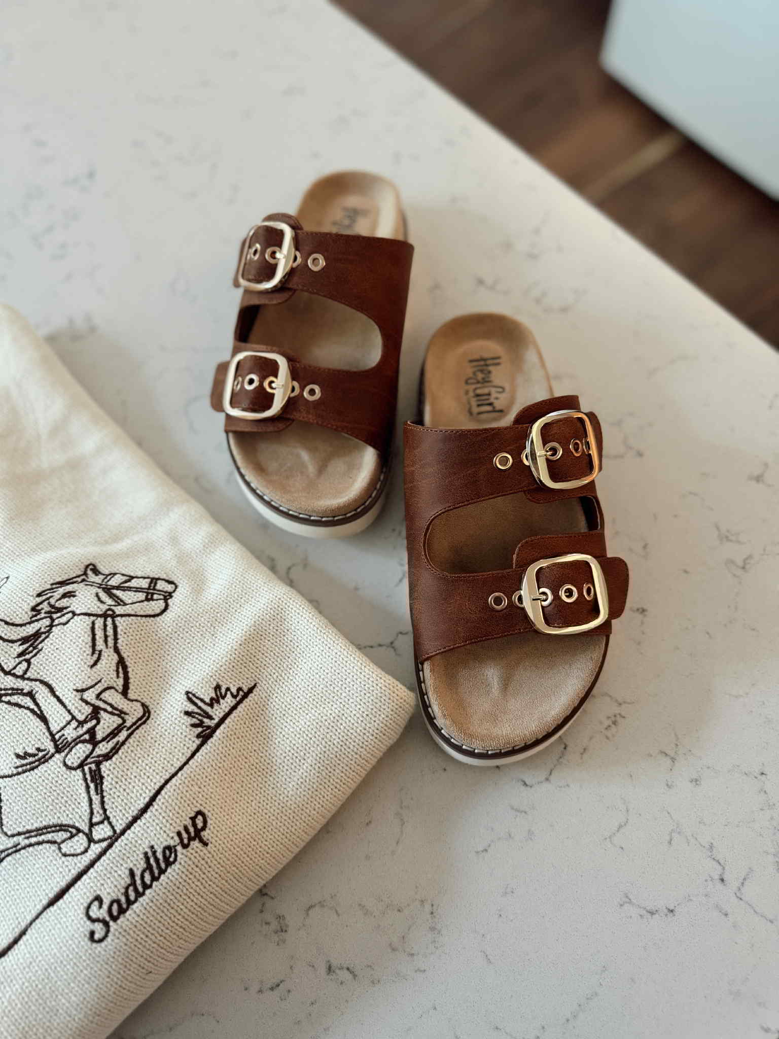 Designed with two adjustable straps for a custom fit and a soft cushioned insole. Keeping you comfy while adding a bold, playful vibe to any outfit!