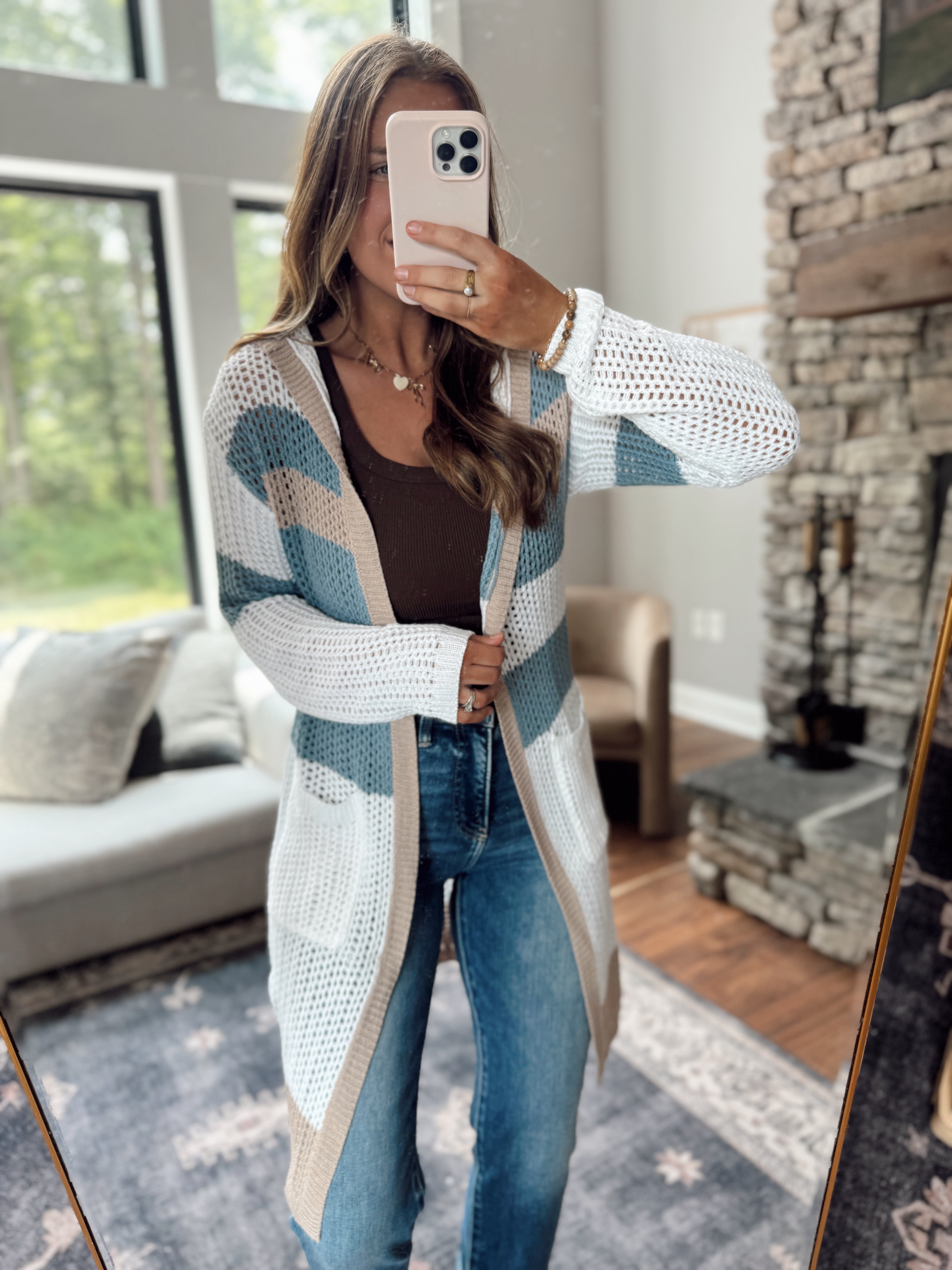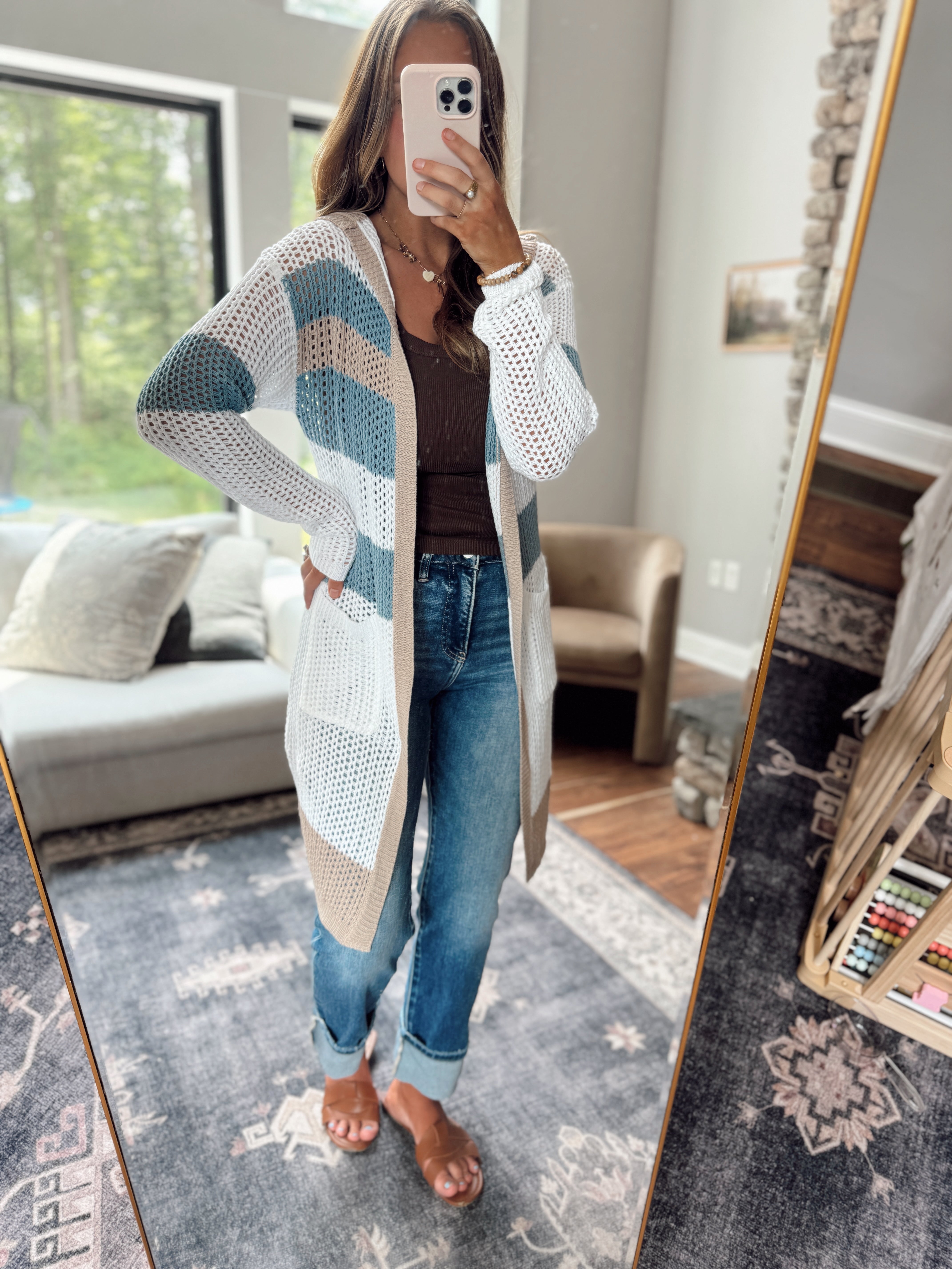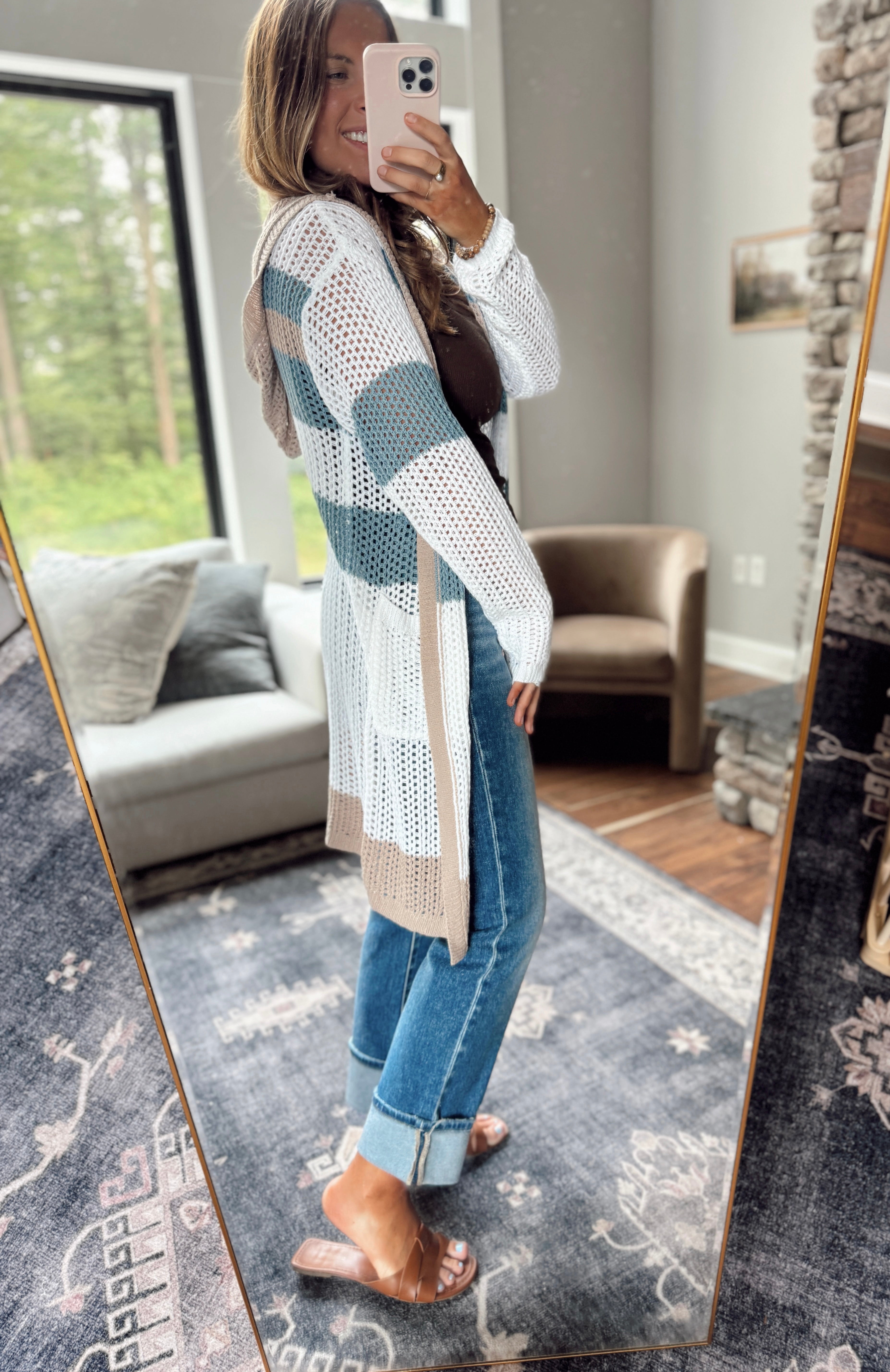 Sand/Seafoam Multi Striped Hoodie Cardigan
