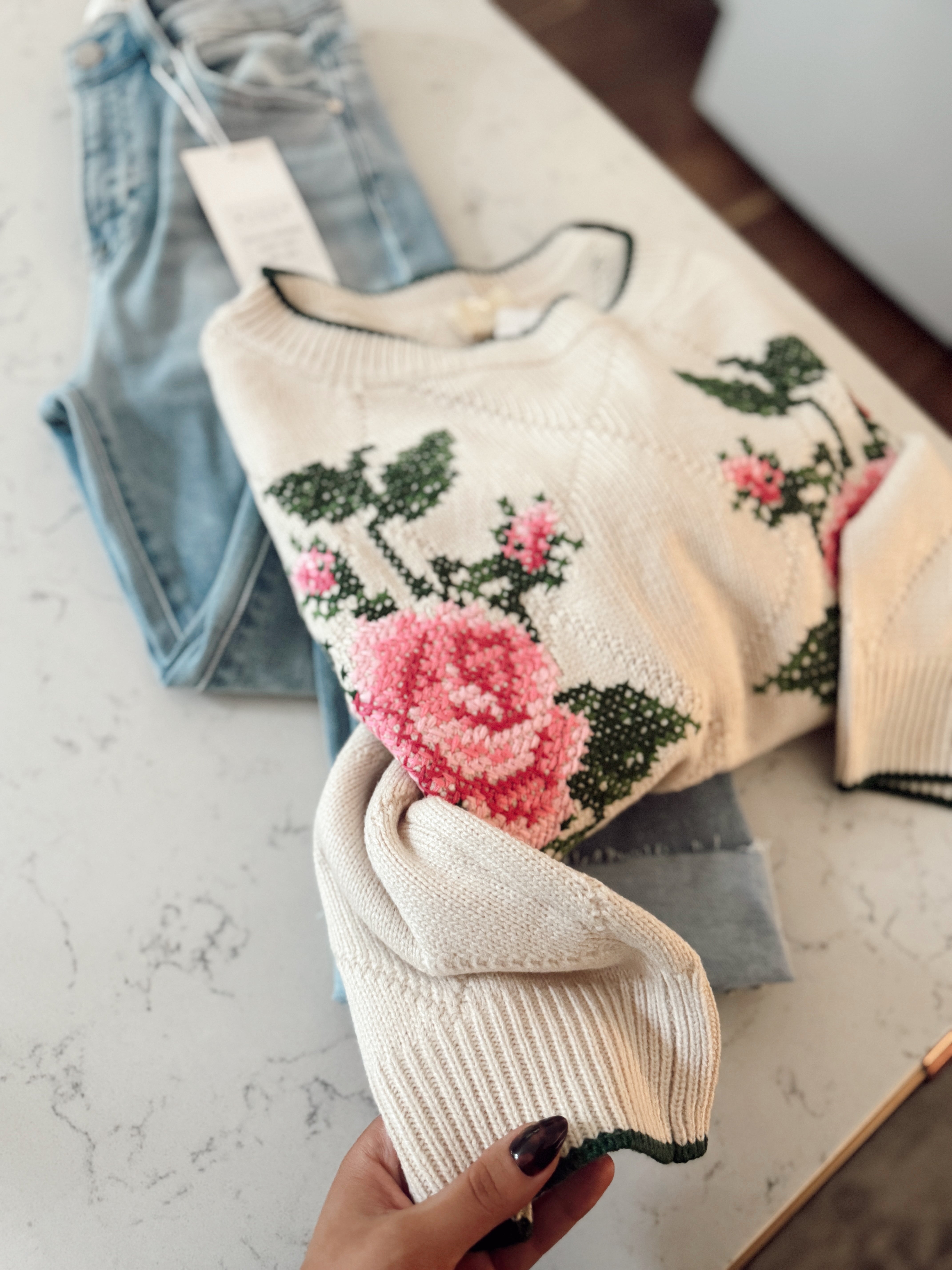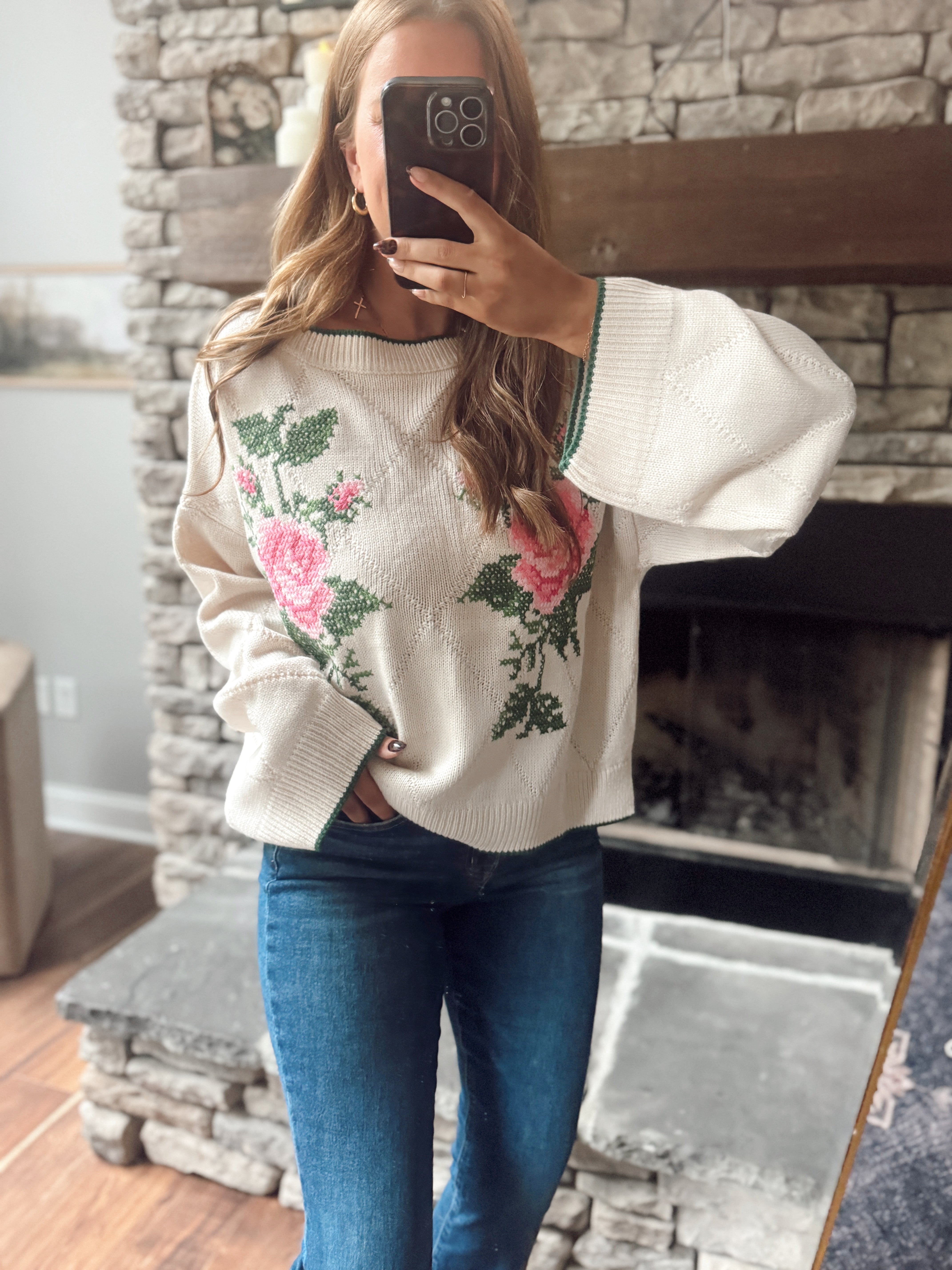 Ivory Rose Embroidered Sweater