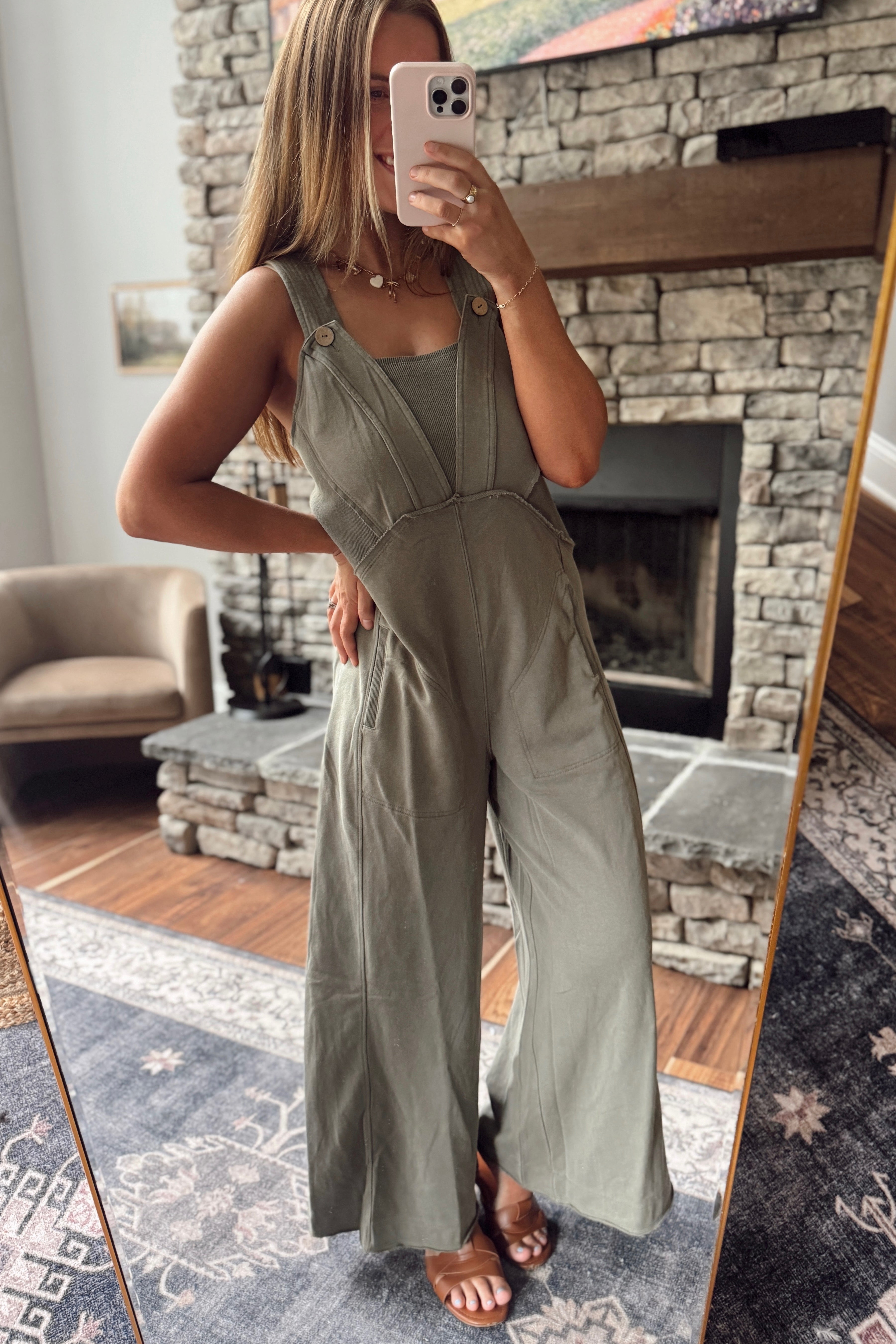 Olive Contrast Seam Jumpsuit