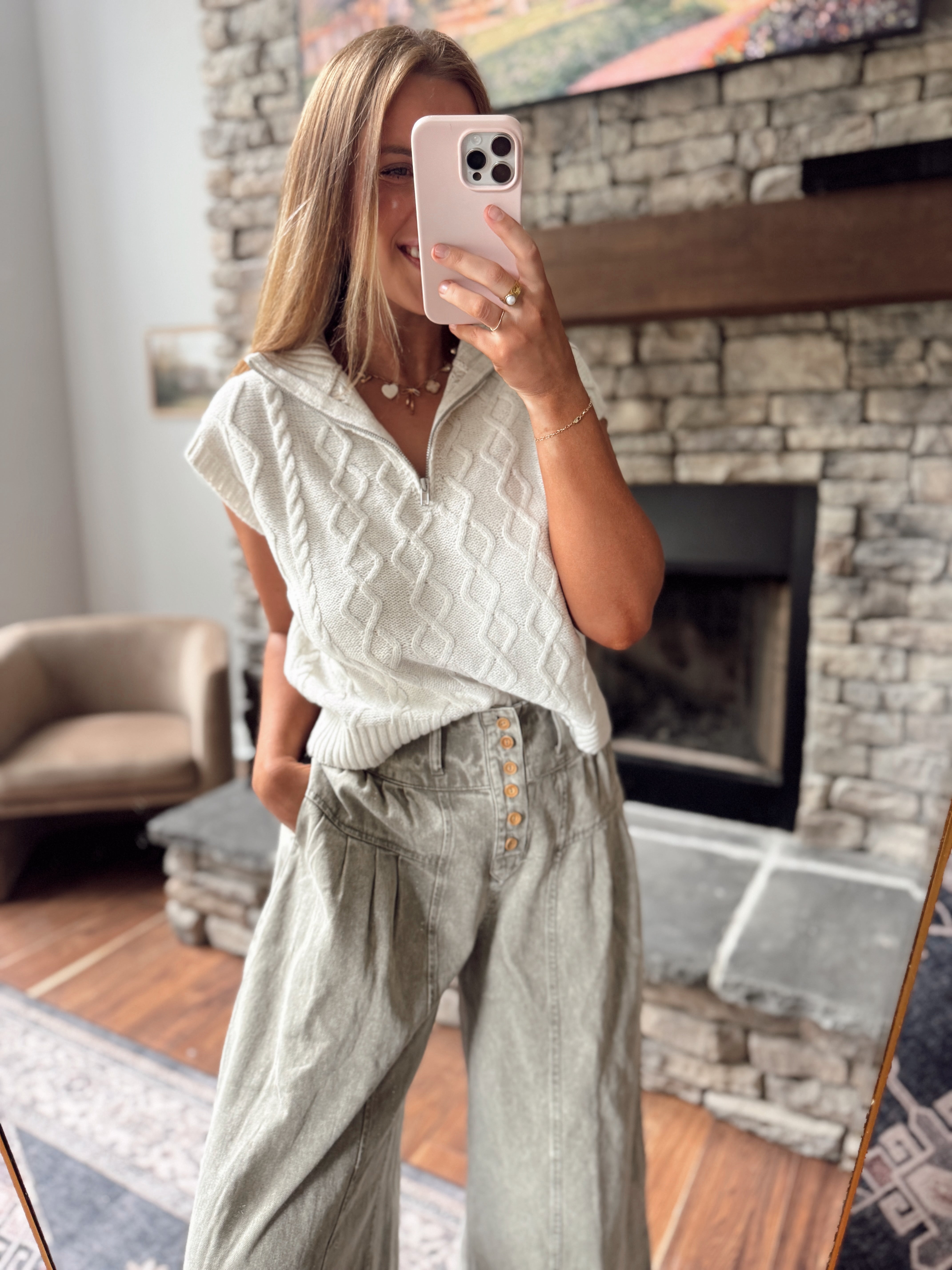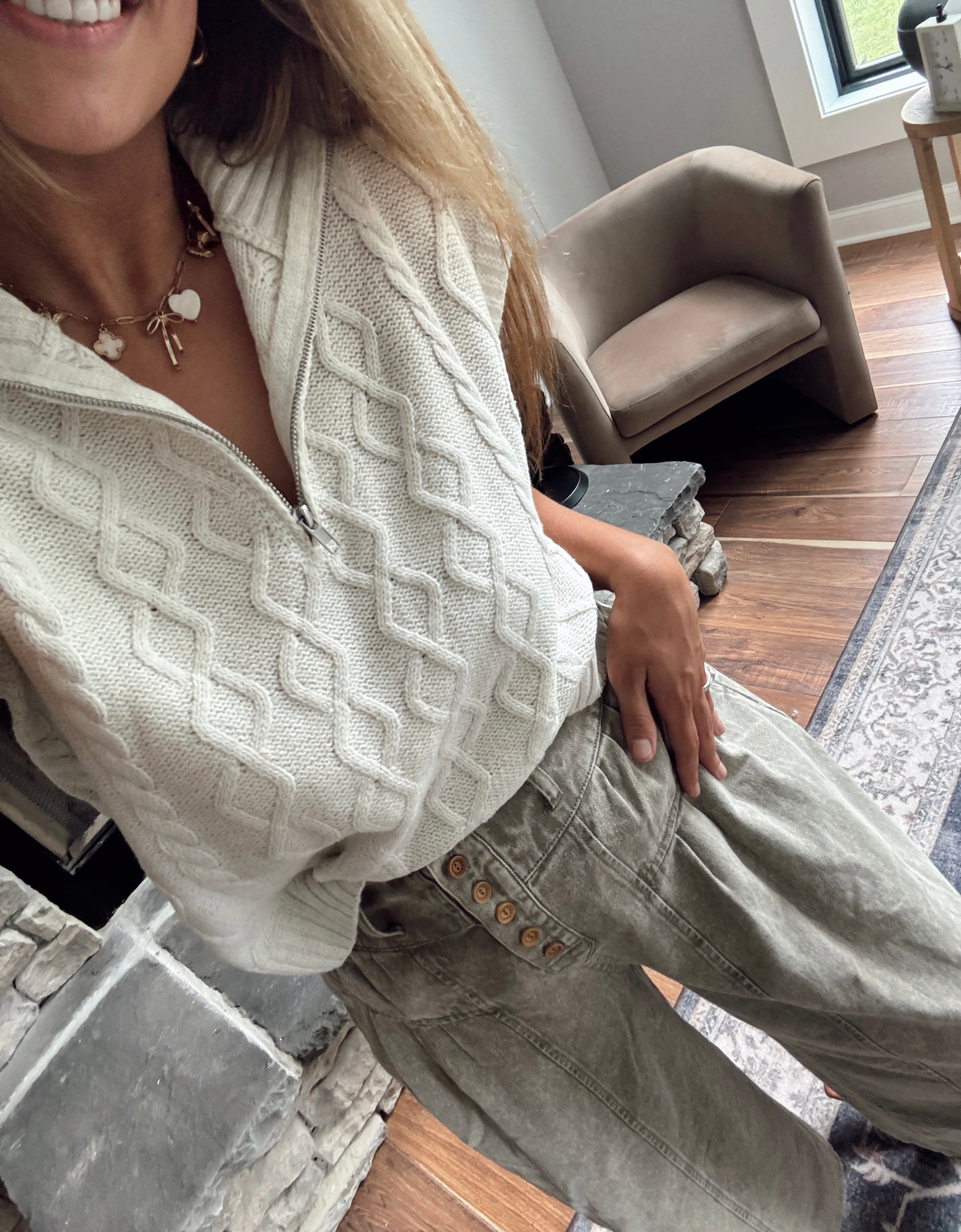 Light Yellow Blake Half Zip Cropped Sweatshirt and Shorts Set