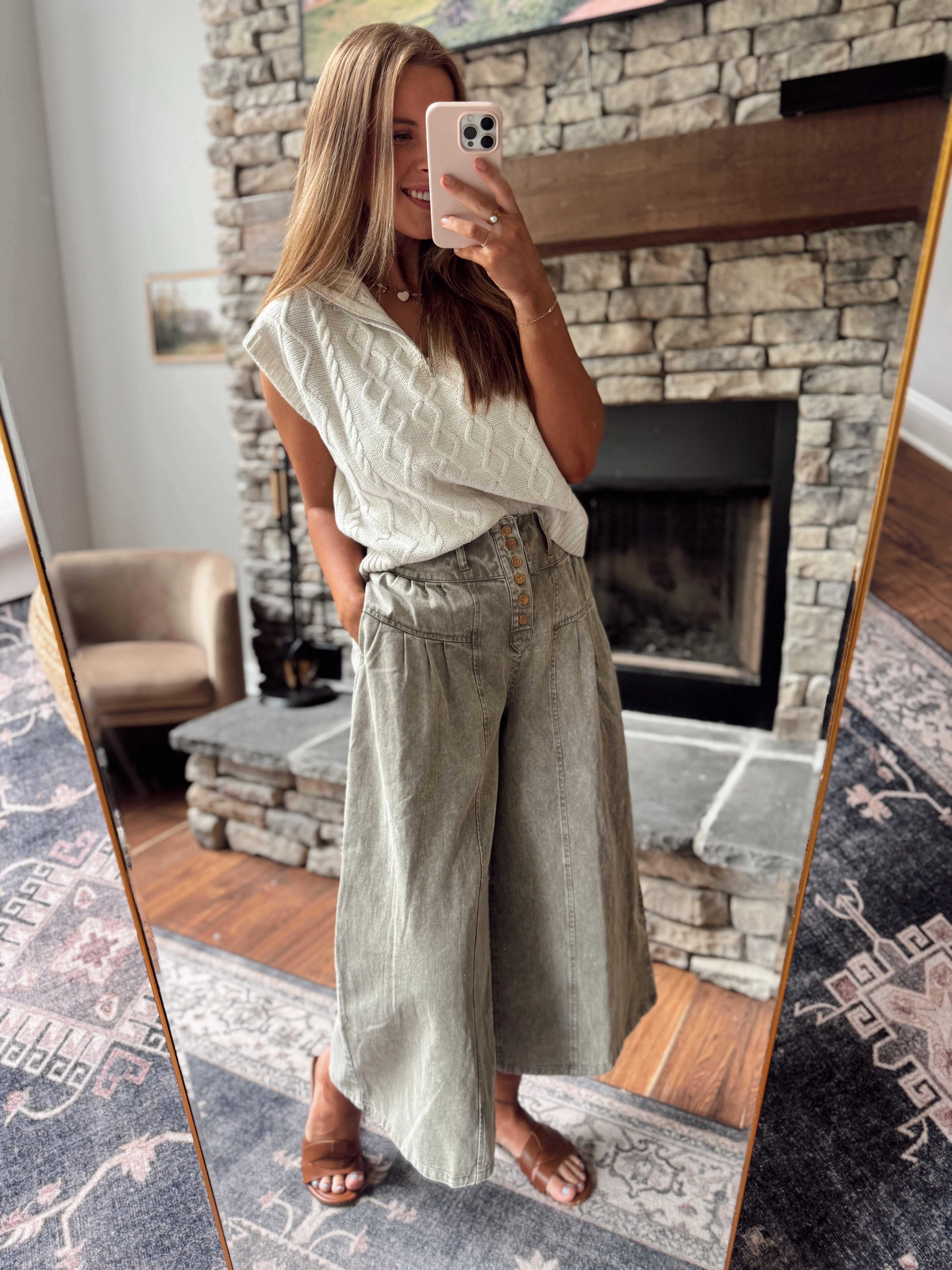 Washed Seafoam Embroidered Corduroy Jumpsuit