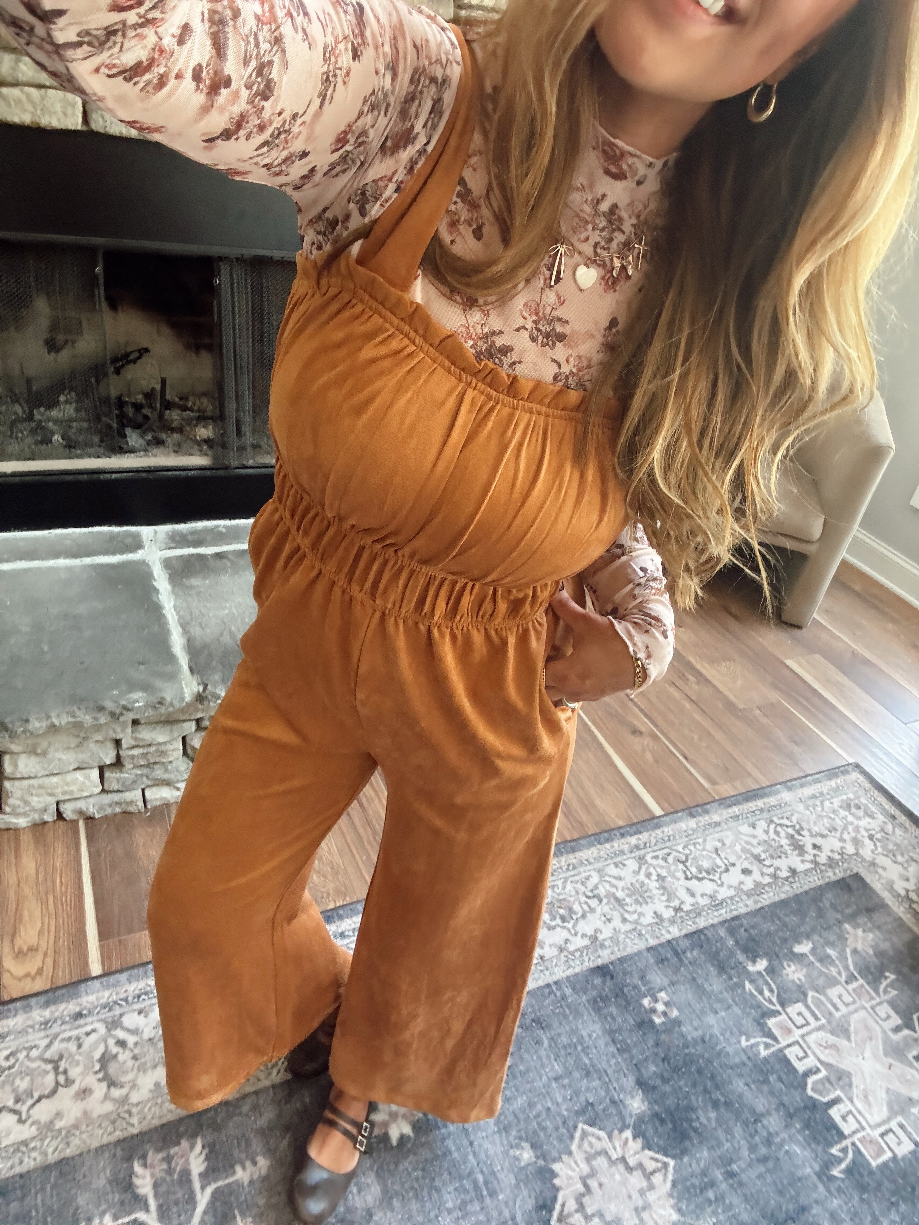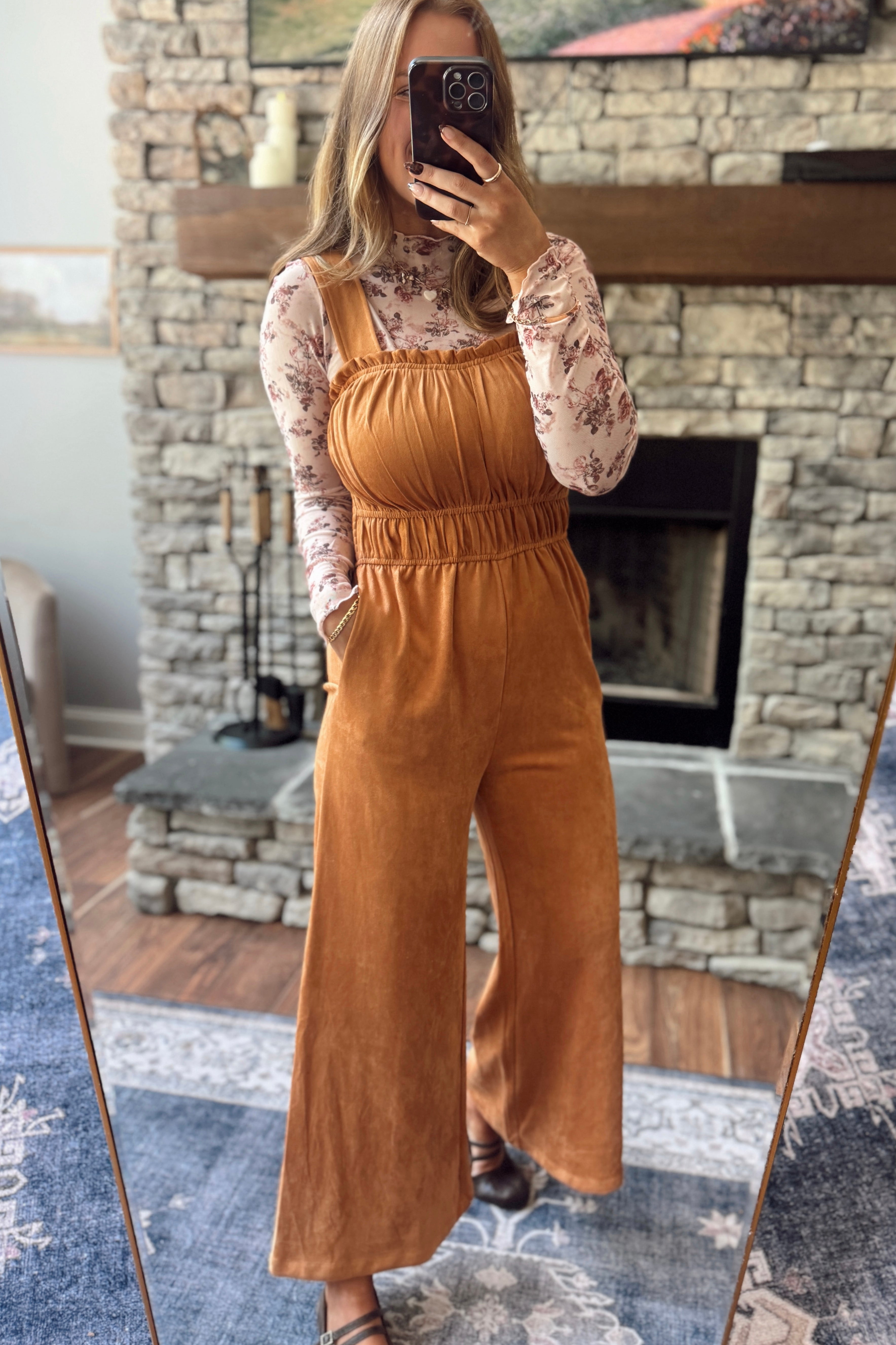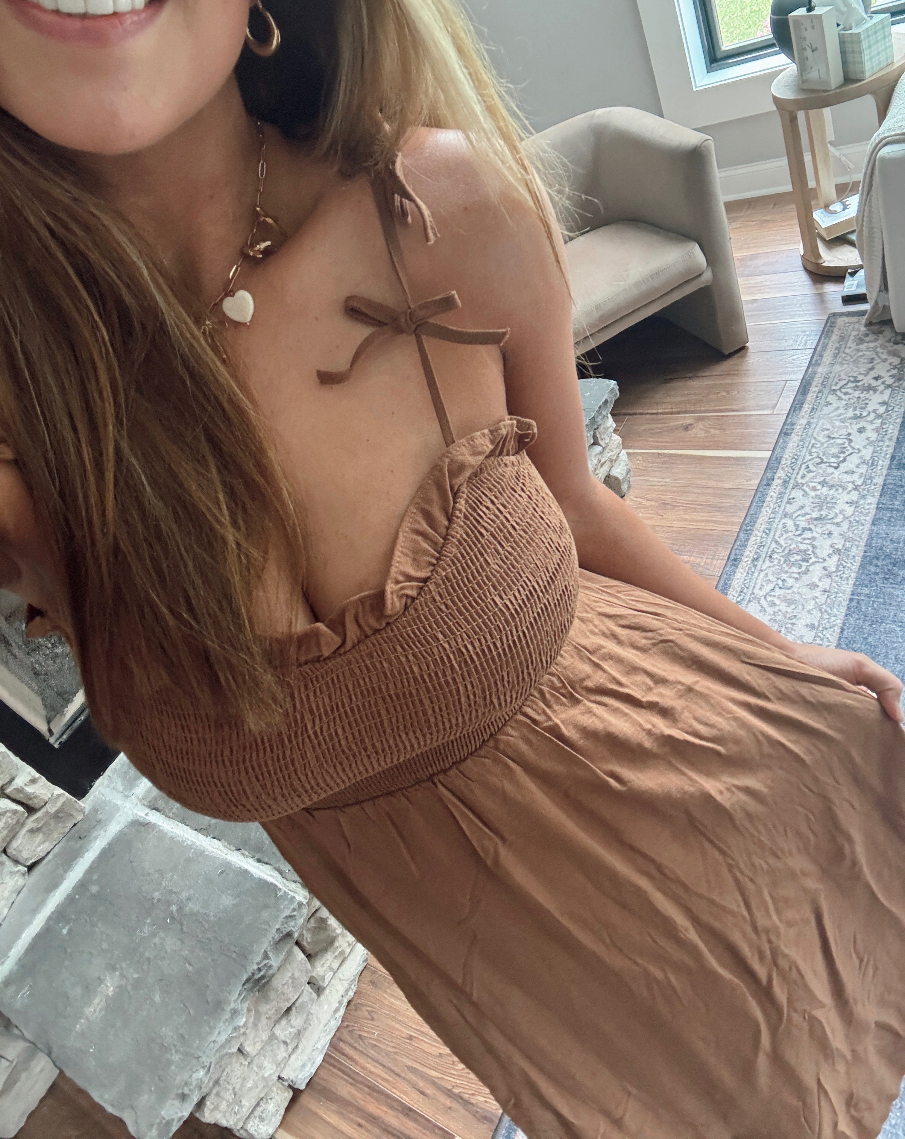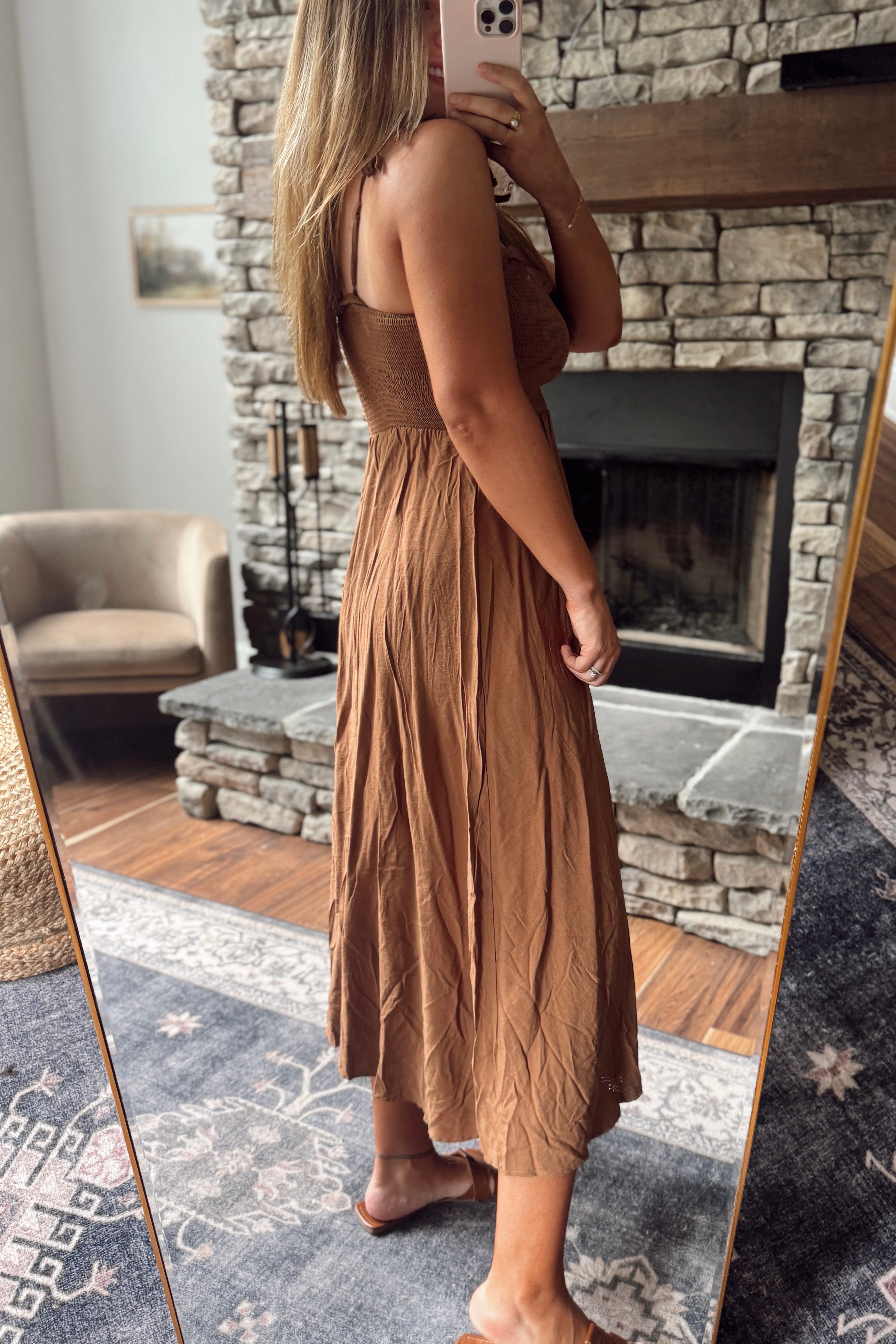 Brown Rhea Sweetheart Smocked Bow Strap Midi