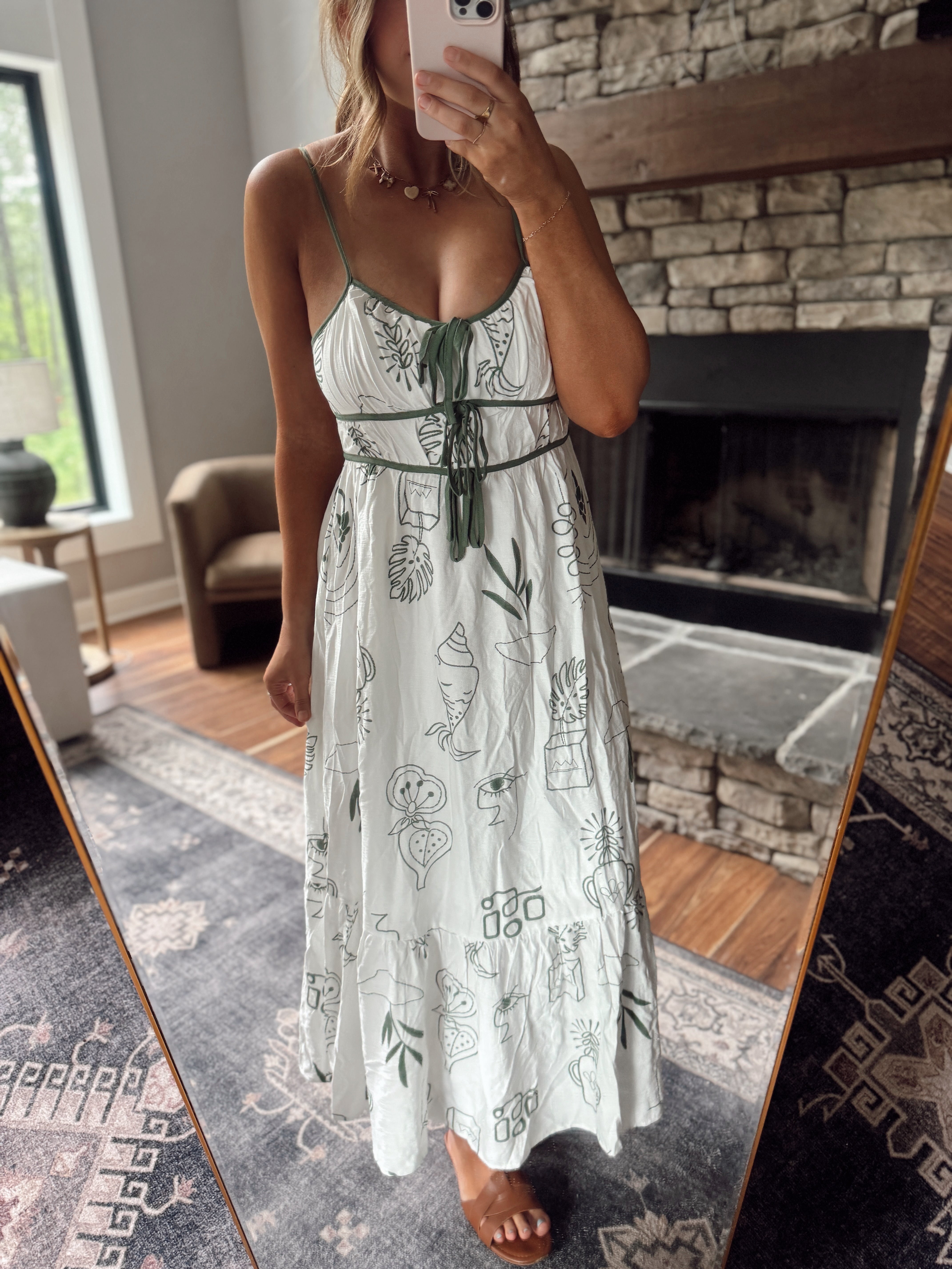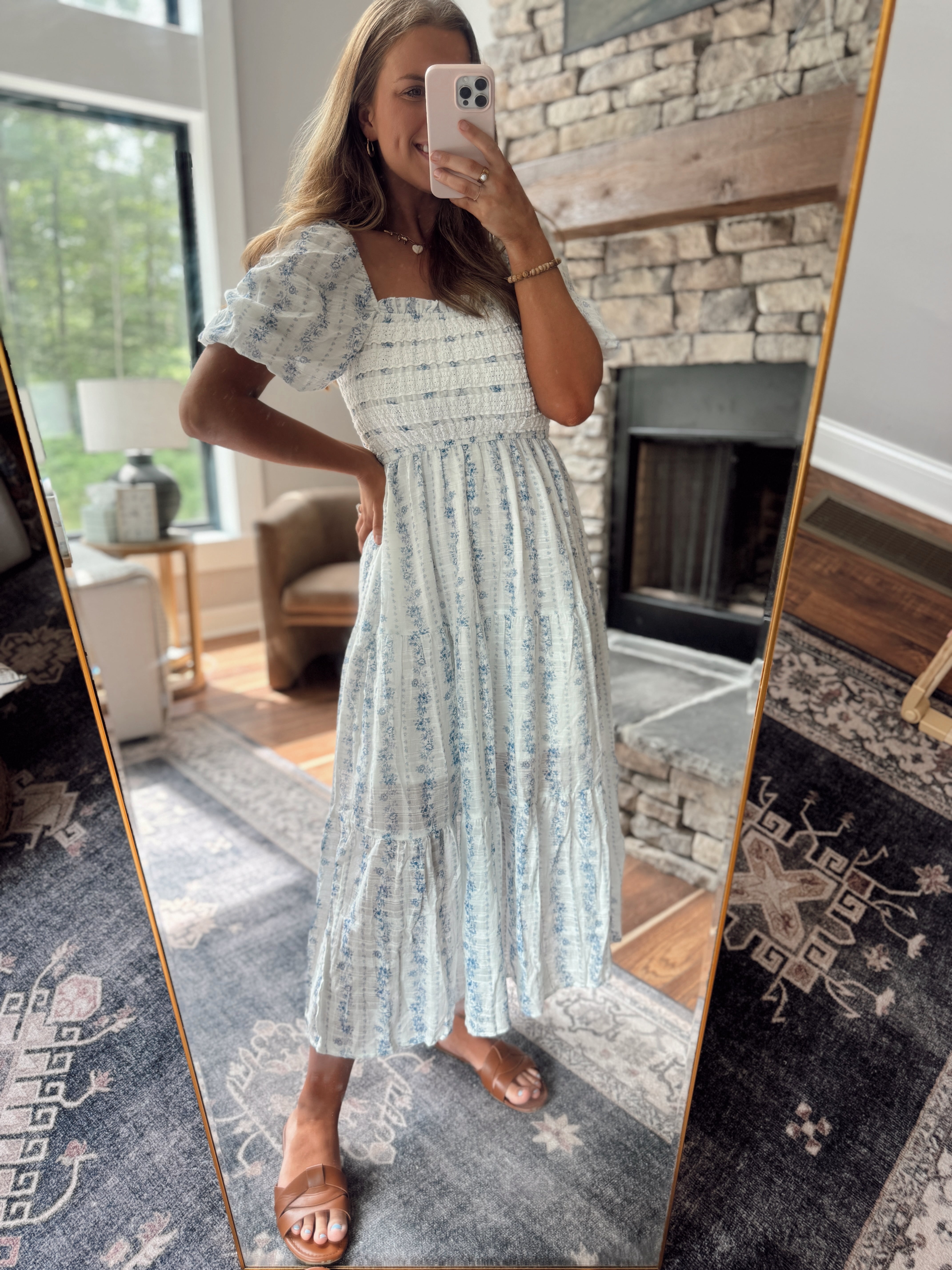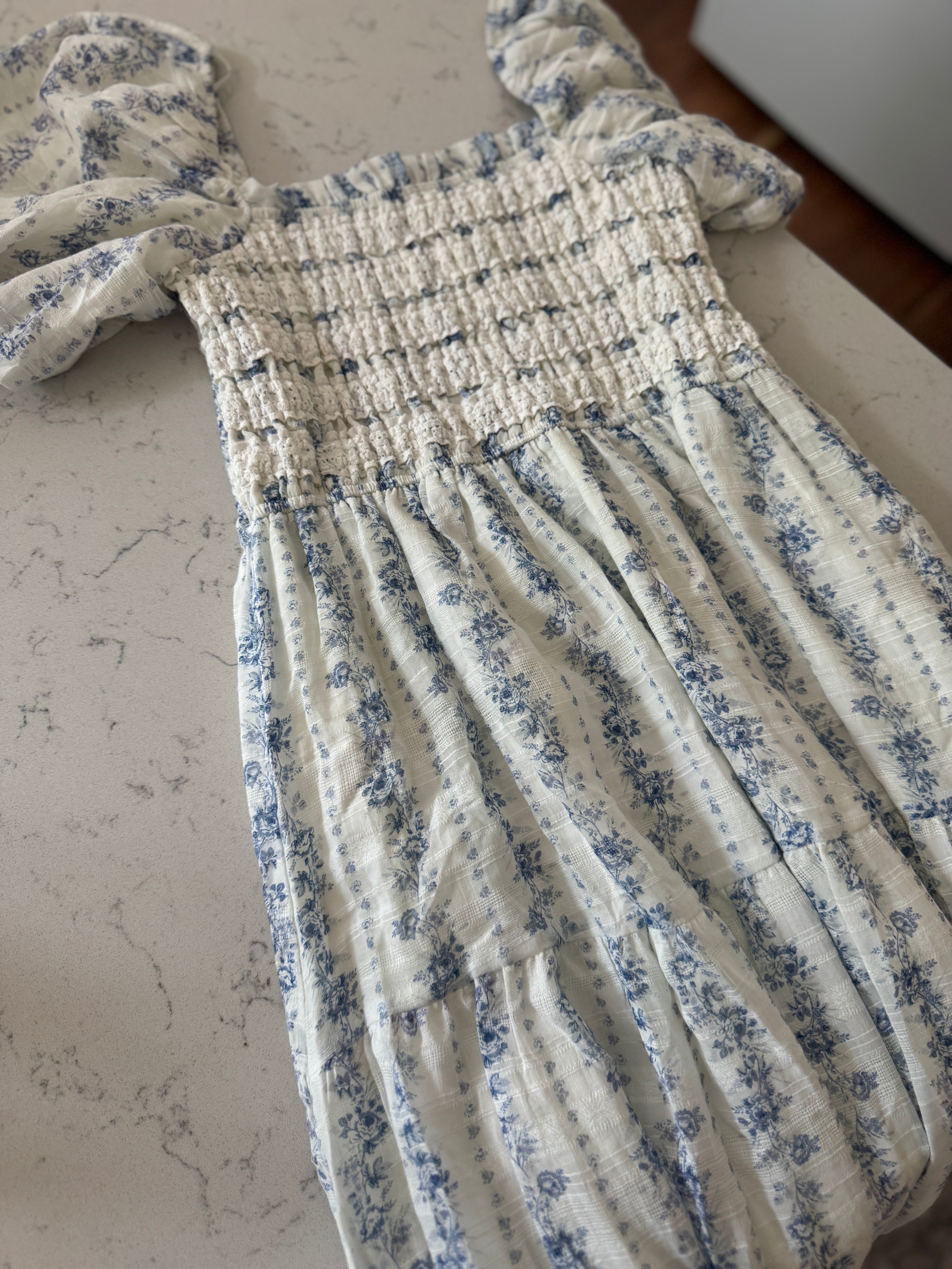 Fiorella Smocked Lace Trim Puff Sleeve Maxi