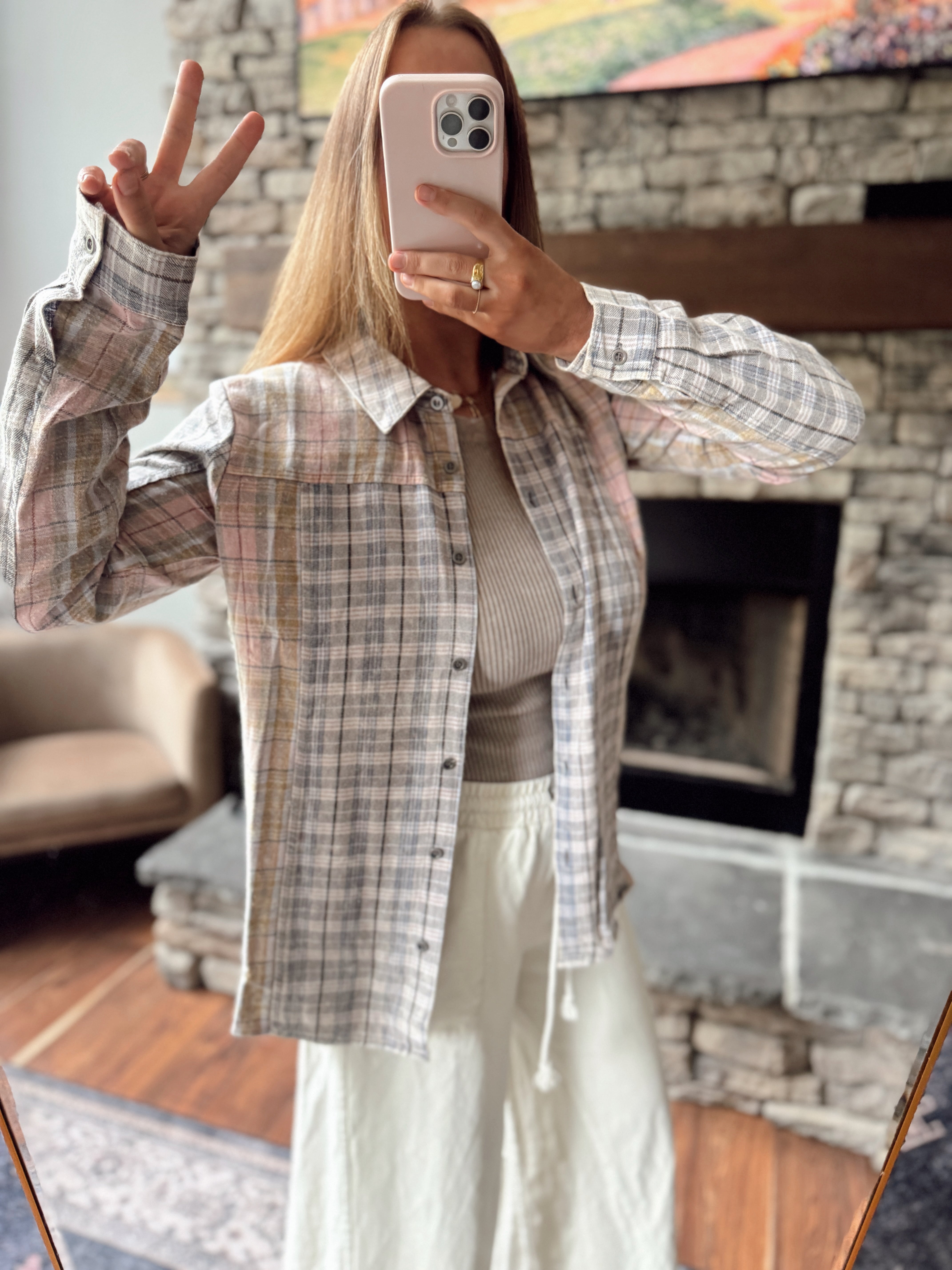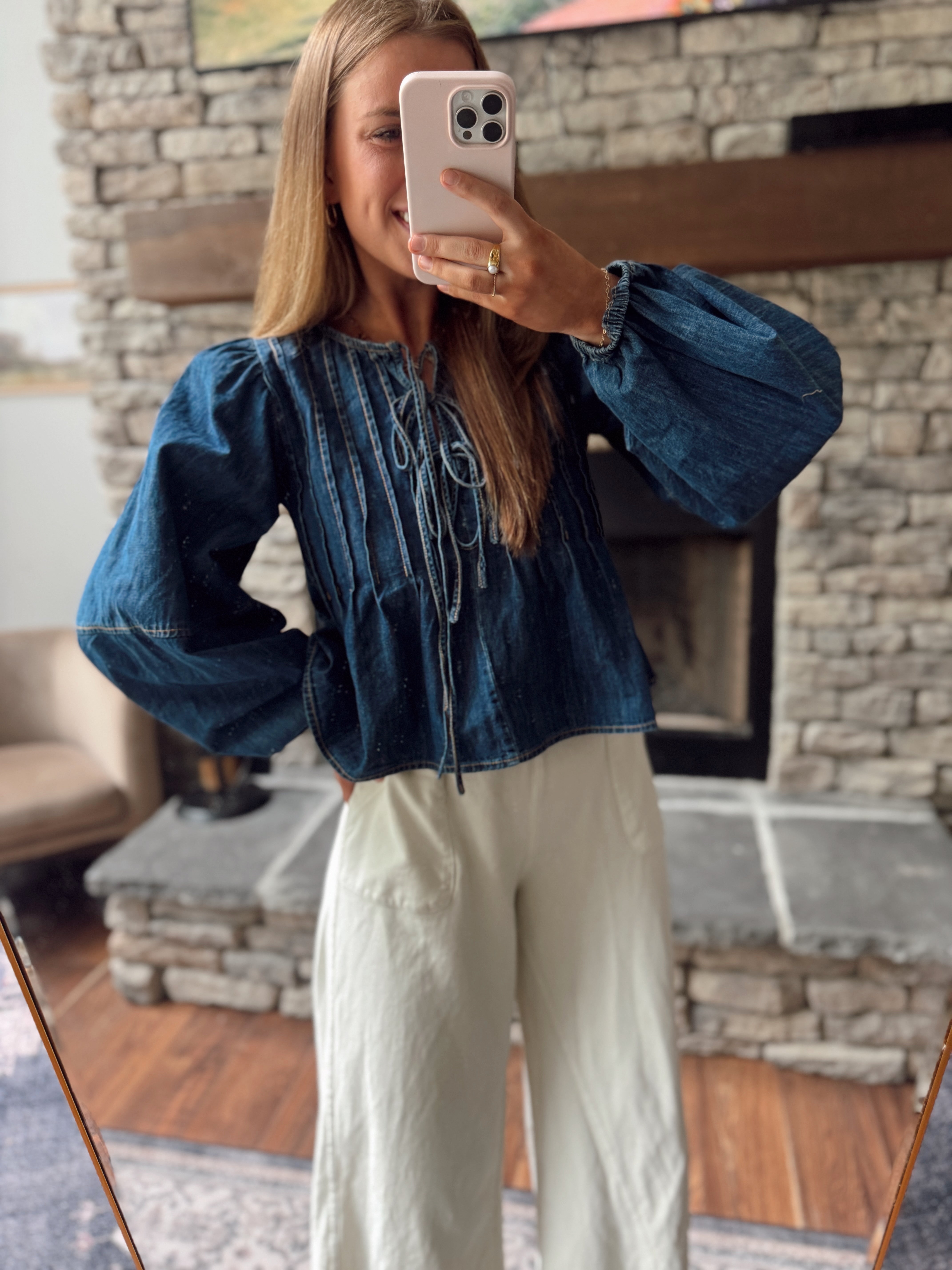Washed Blue Smocked Puff Sleeve Gauze Top