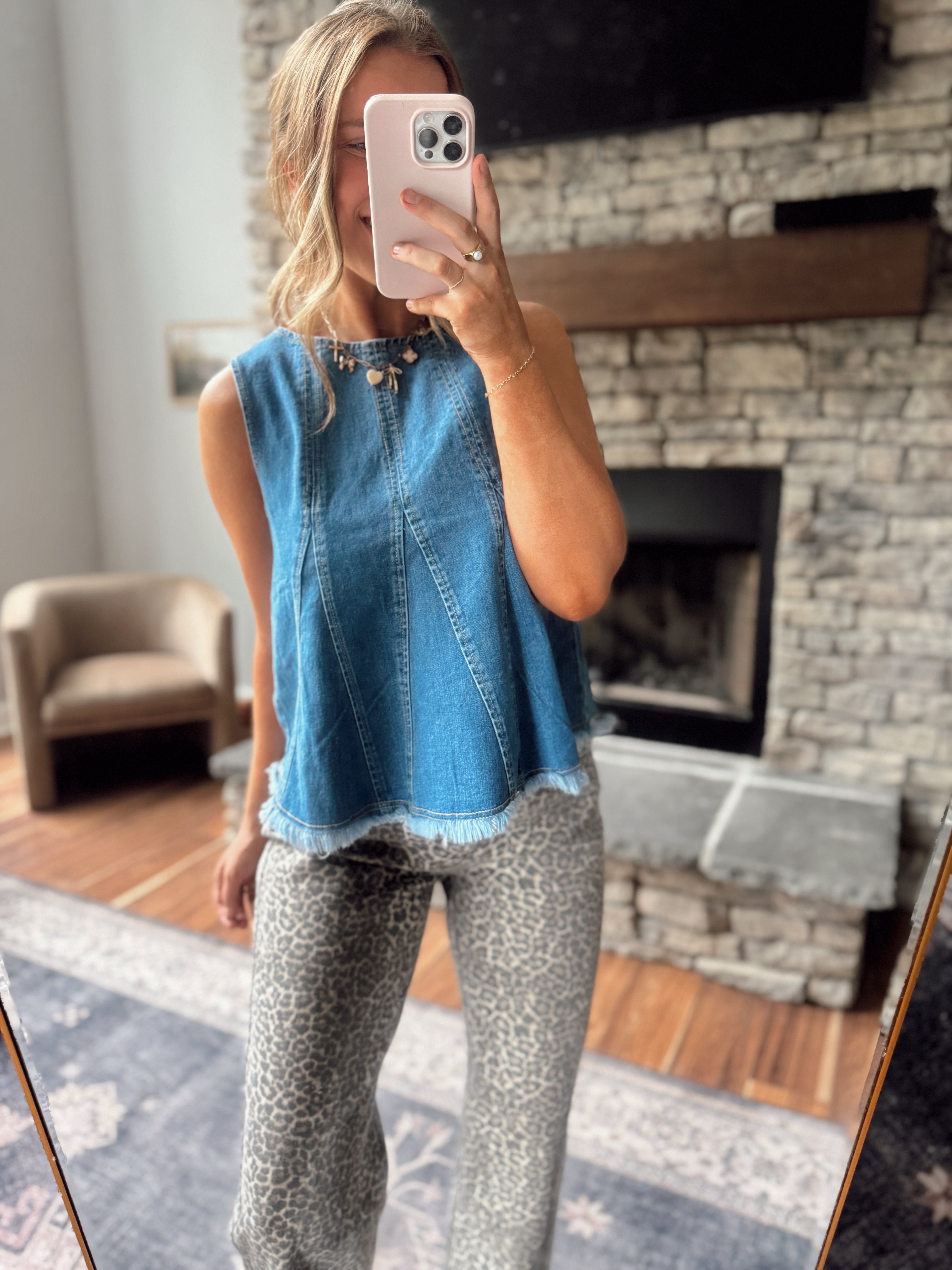 Lyric Blue Haze Denim Flared Sleeveless Top