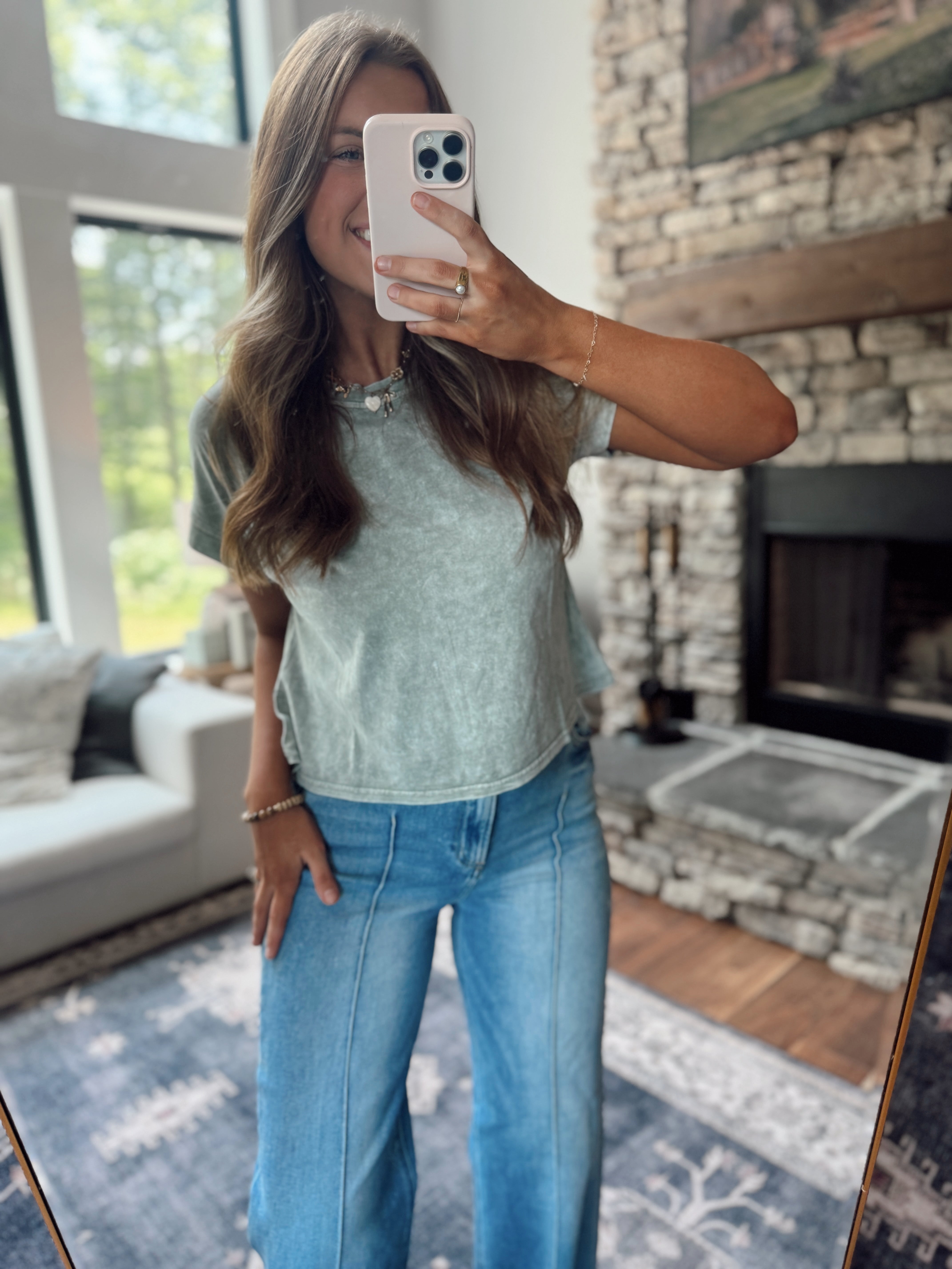 Risen Dark Tummy Control HR Cropped Straight Denim
