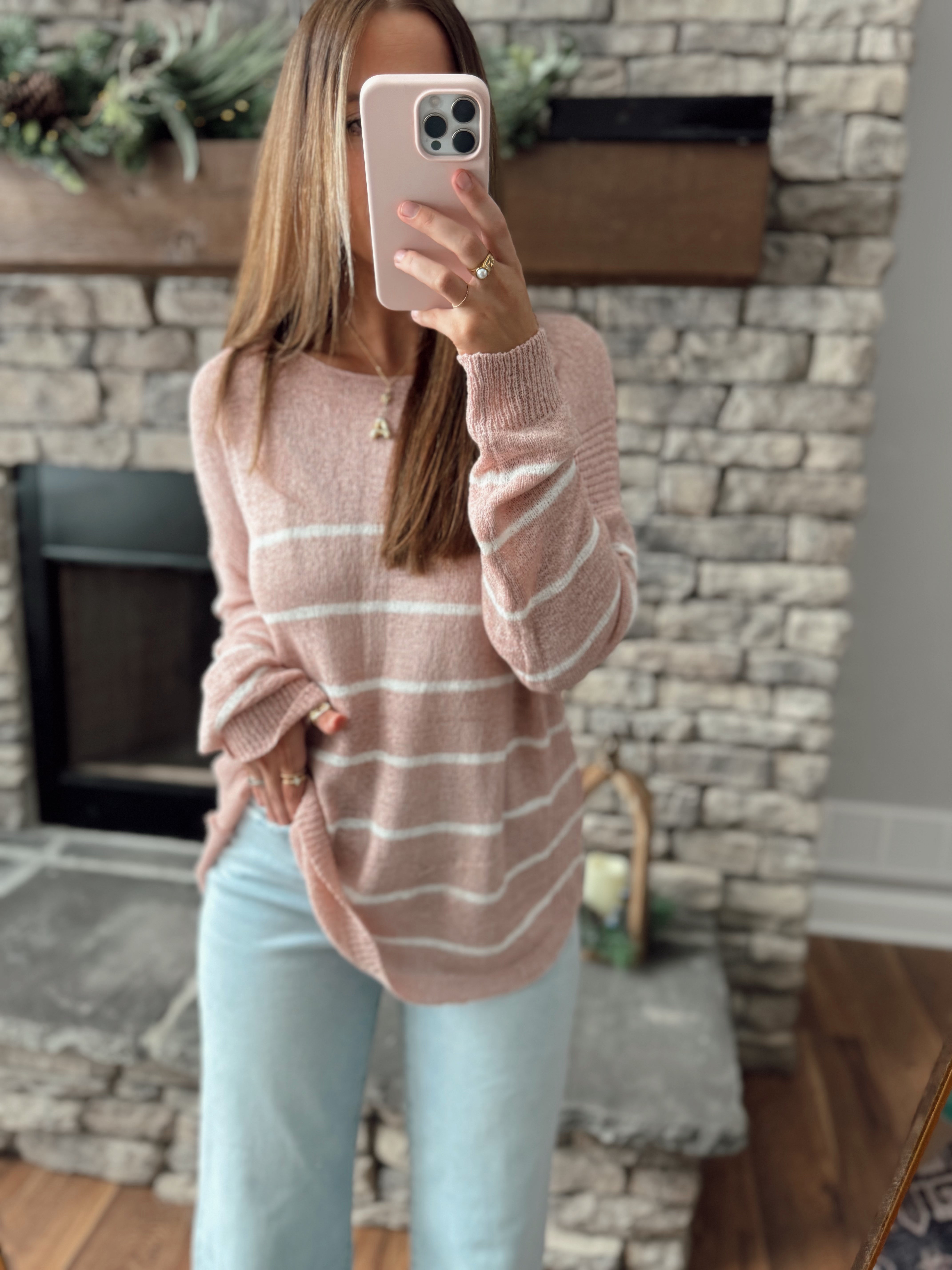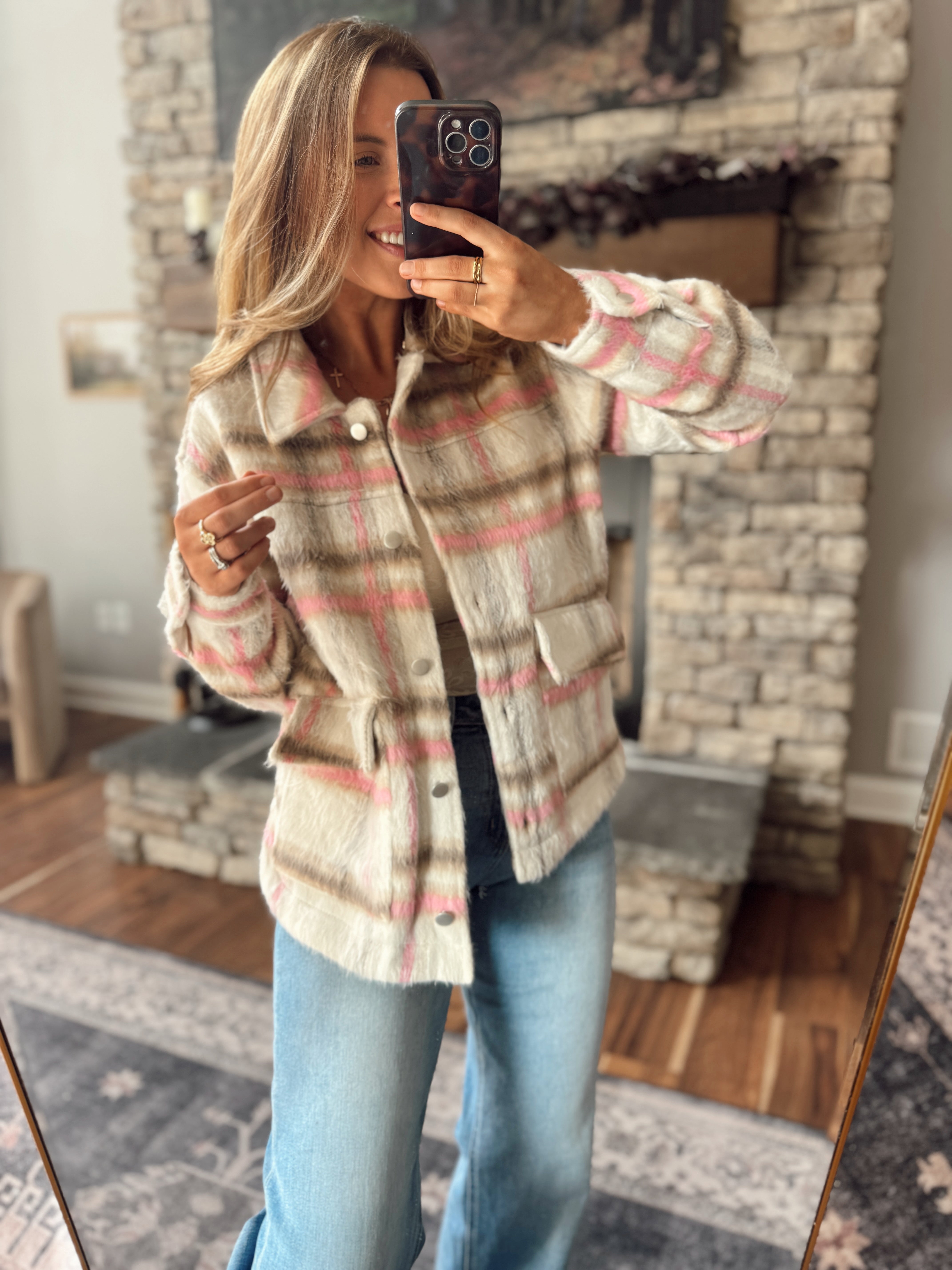 Pink Sugar Stripe Brushed Plaid Taupe Jacket
