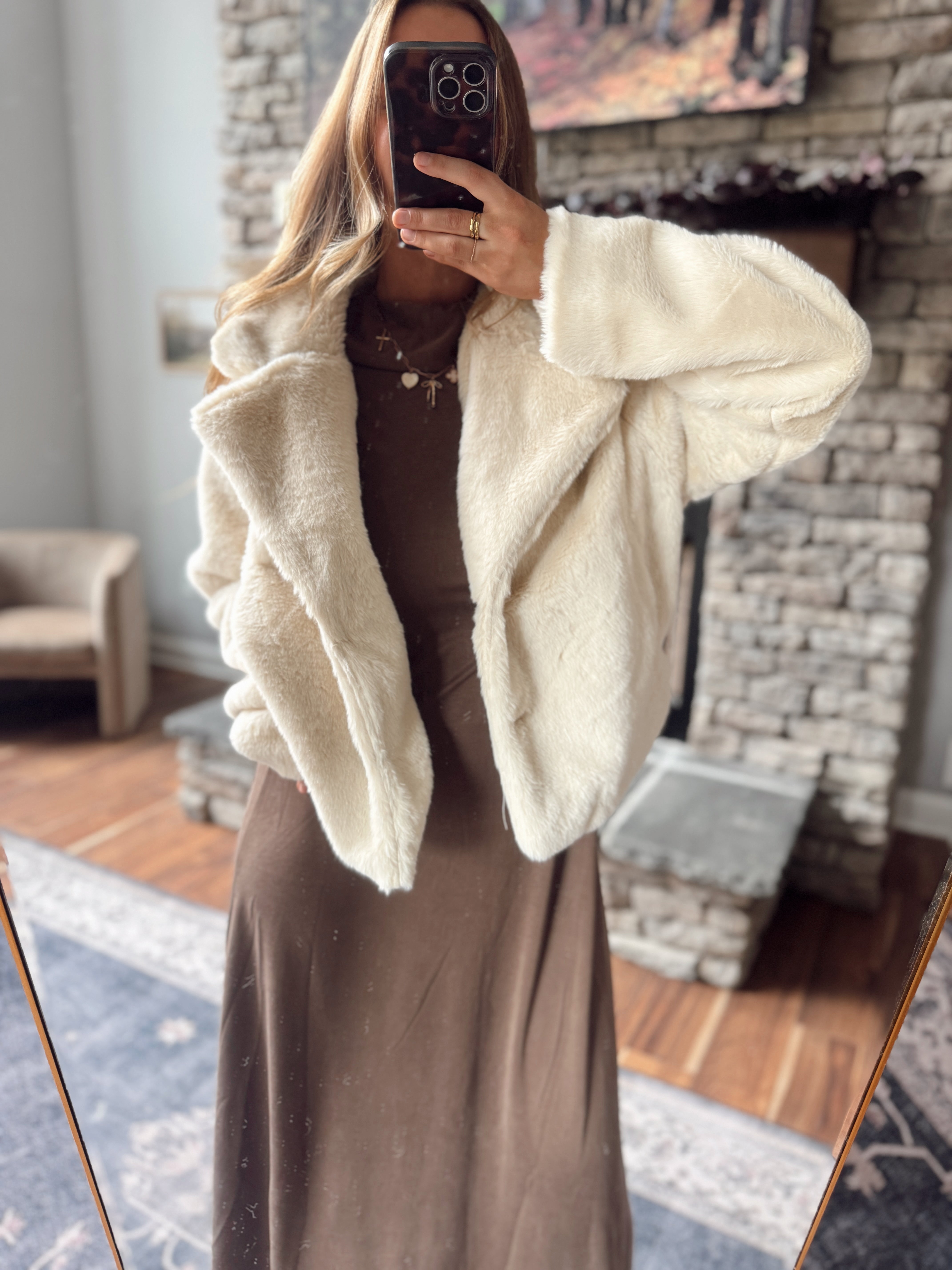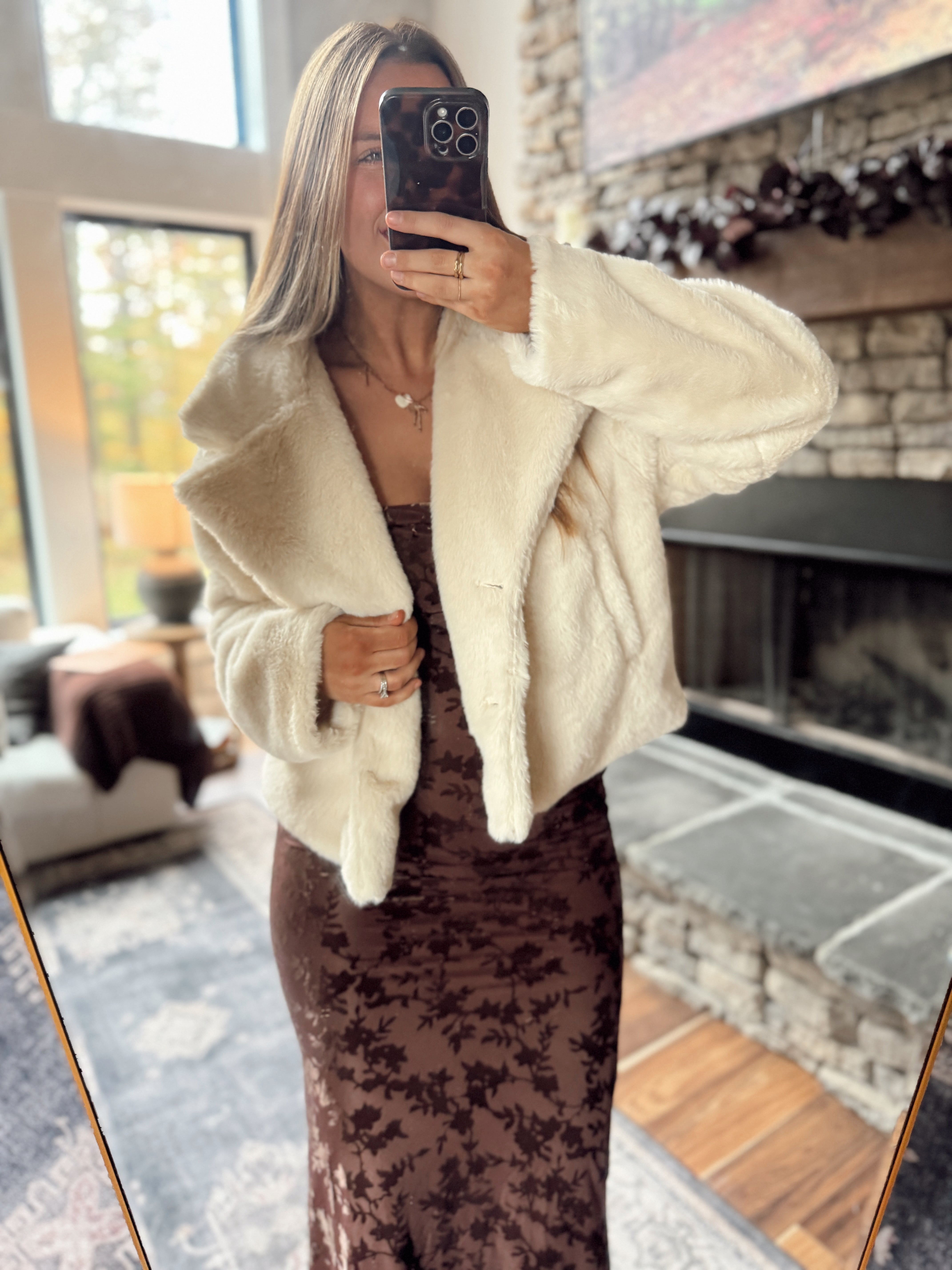 Fiercely Fab Cream Faux Fur Cropped Jacket