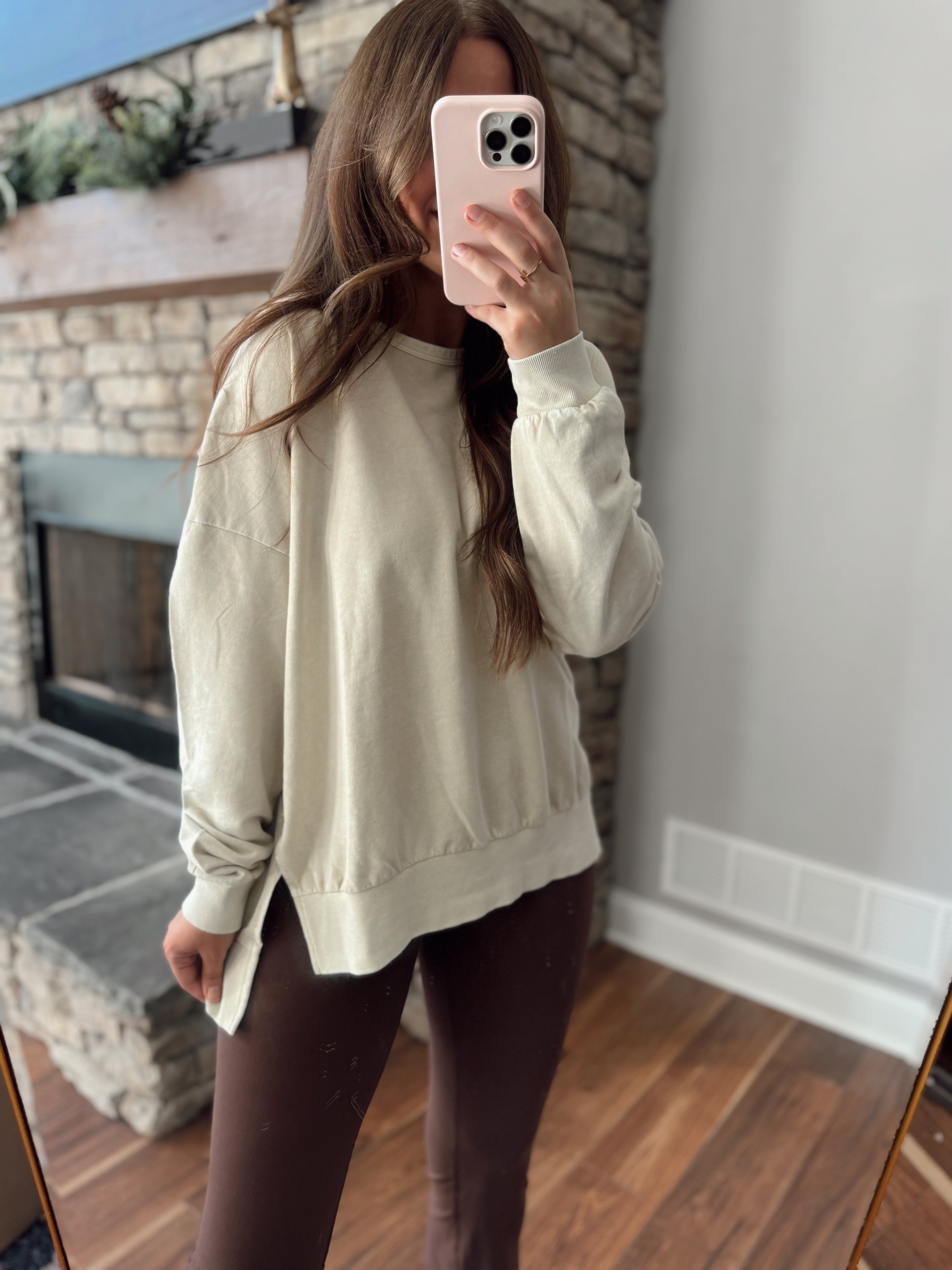 Oatmeal Mineral-Washed Crew Neck Long Sleeve