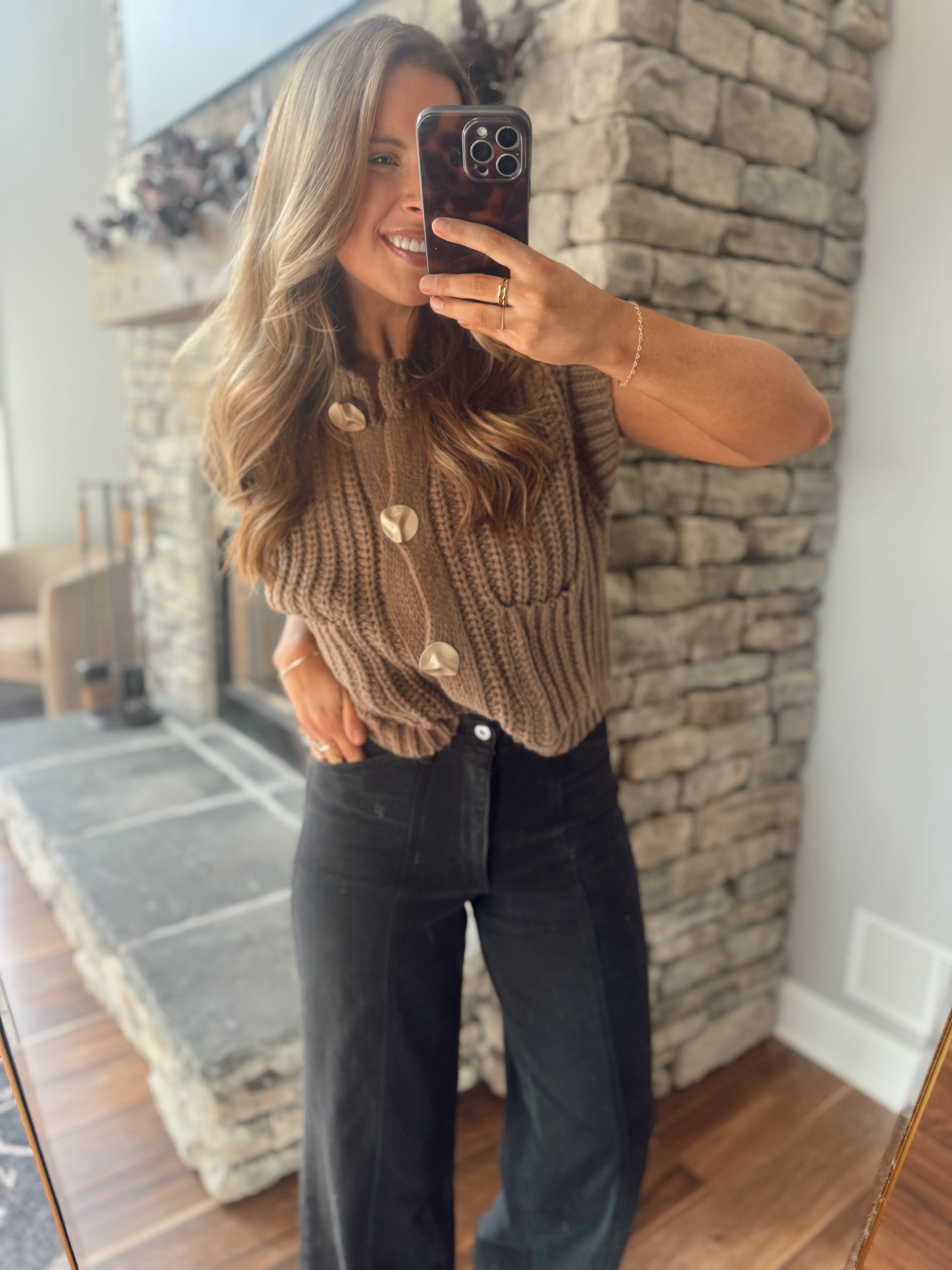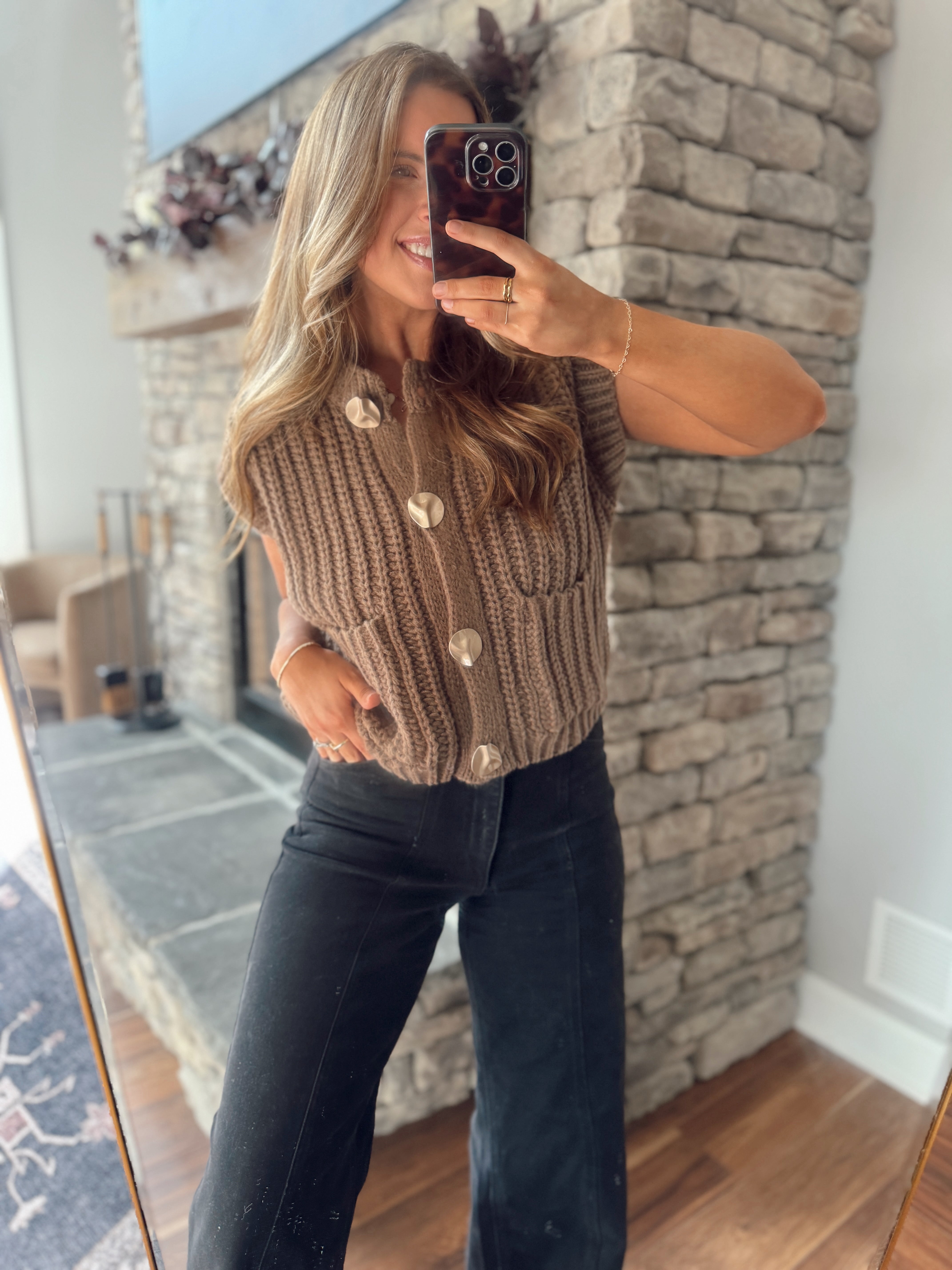Brown Teddie Oversized Sleeveless Knit Sweater Vest