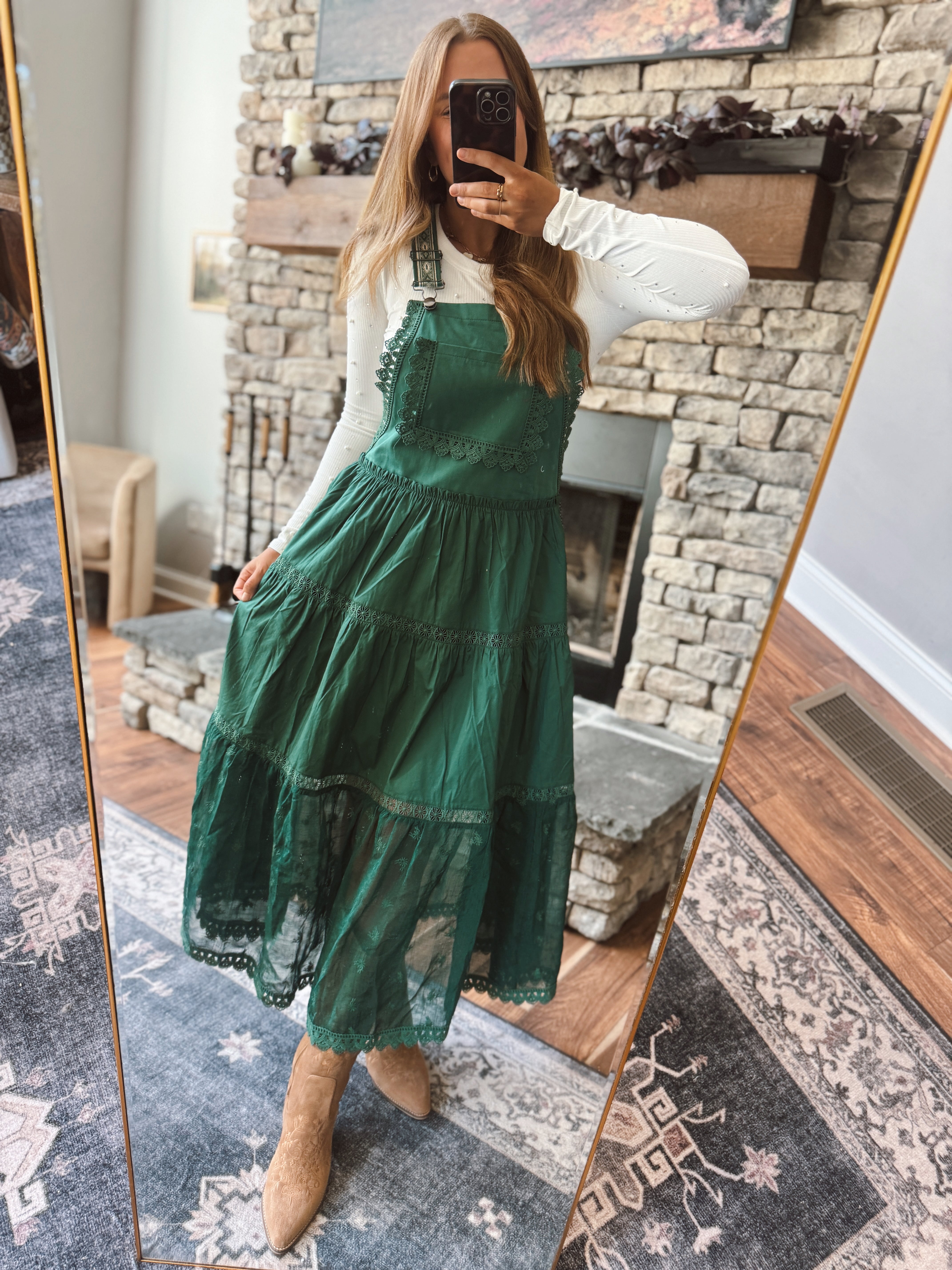 Cast A Spell Forest Green Lace Tiered Overall Dress
