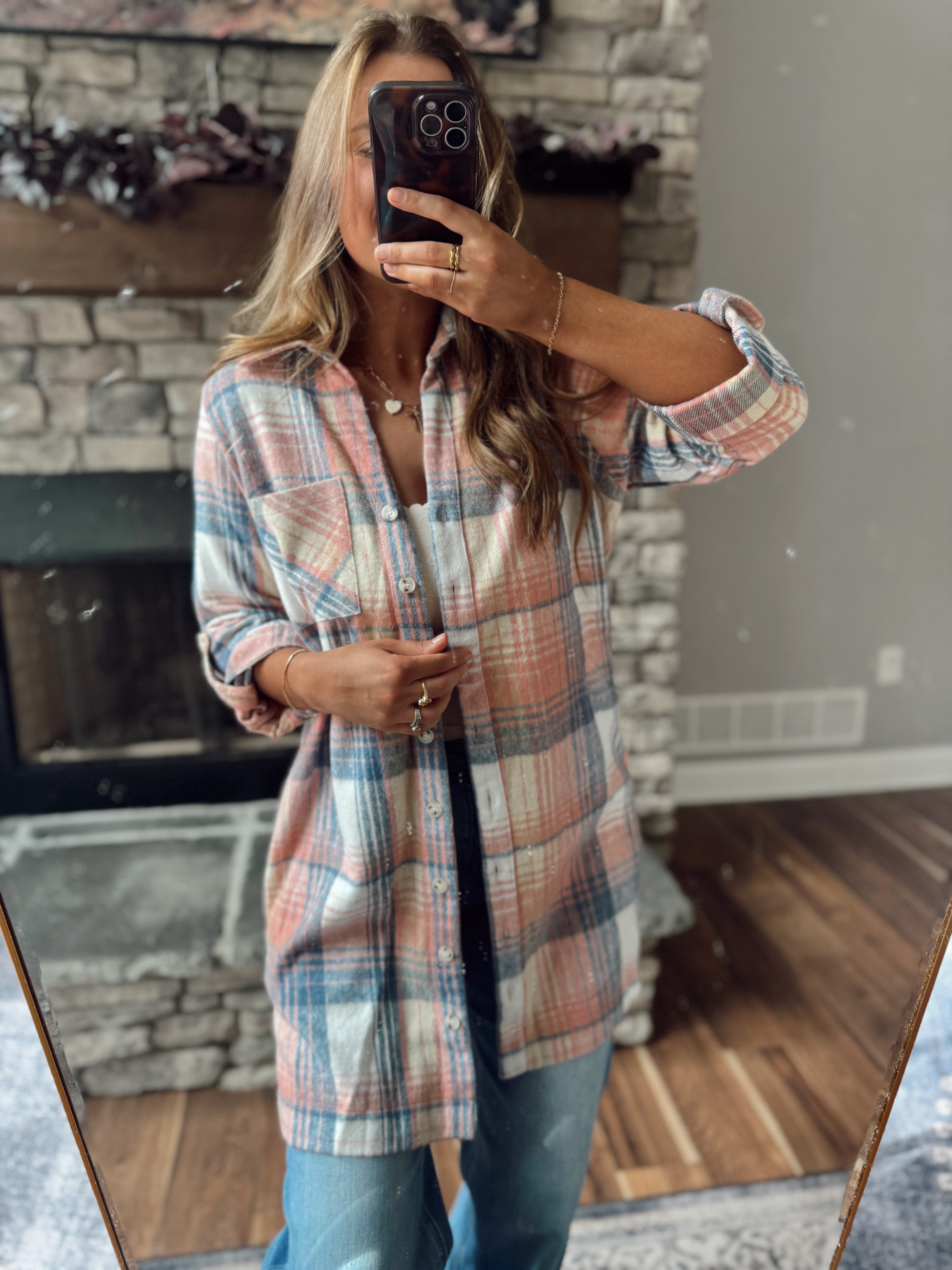 Day Dreams Pink Button Up Shacket Dress With Roll Up Sleeves
