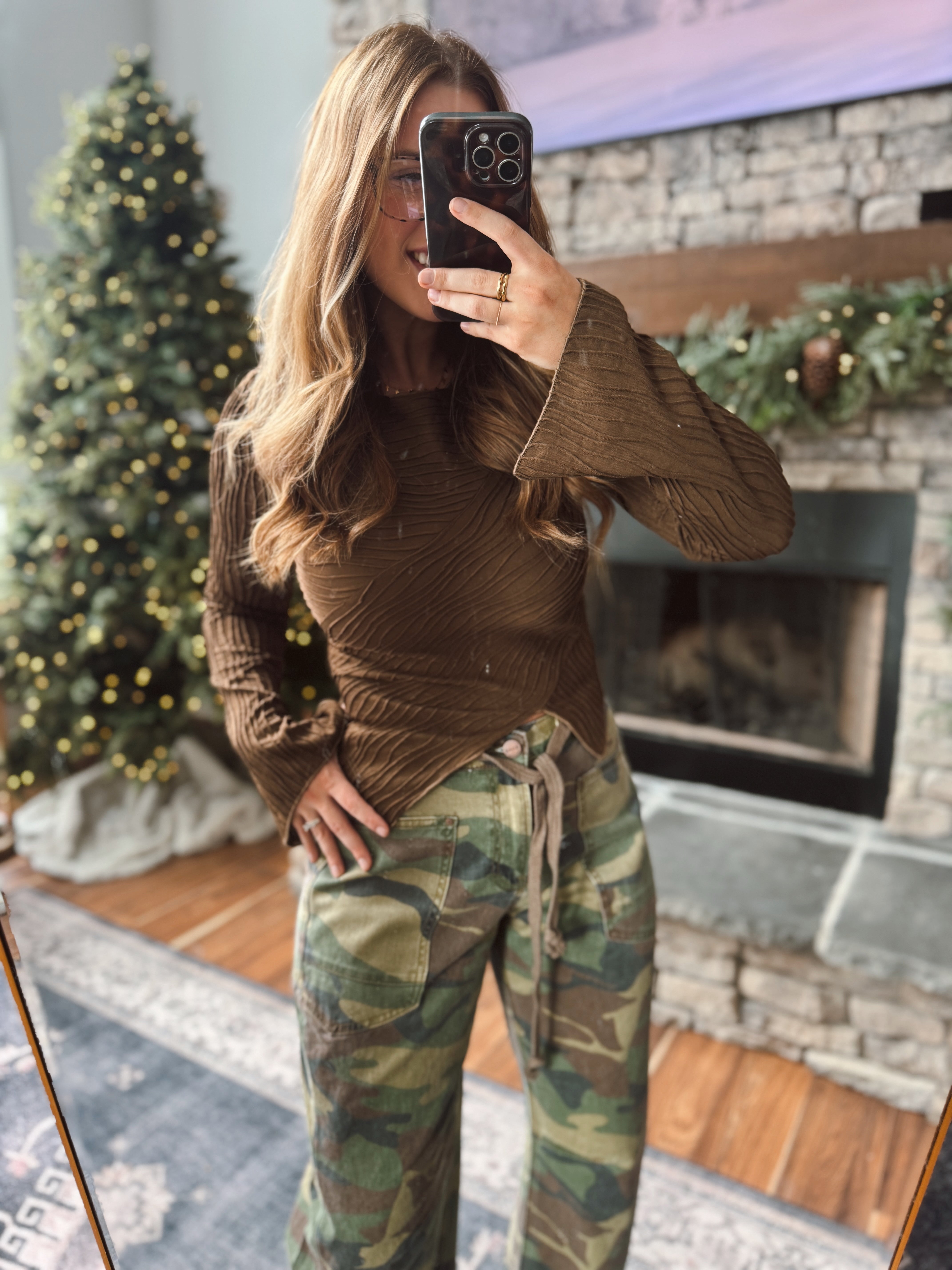 Hannah Handkerchief Hem Textured Espresso Long Sleeve