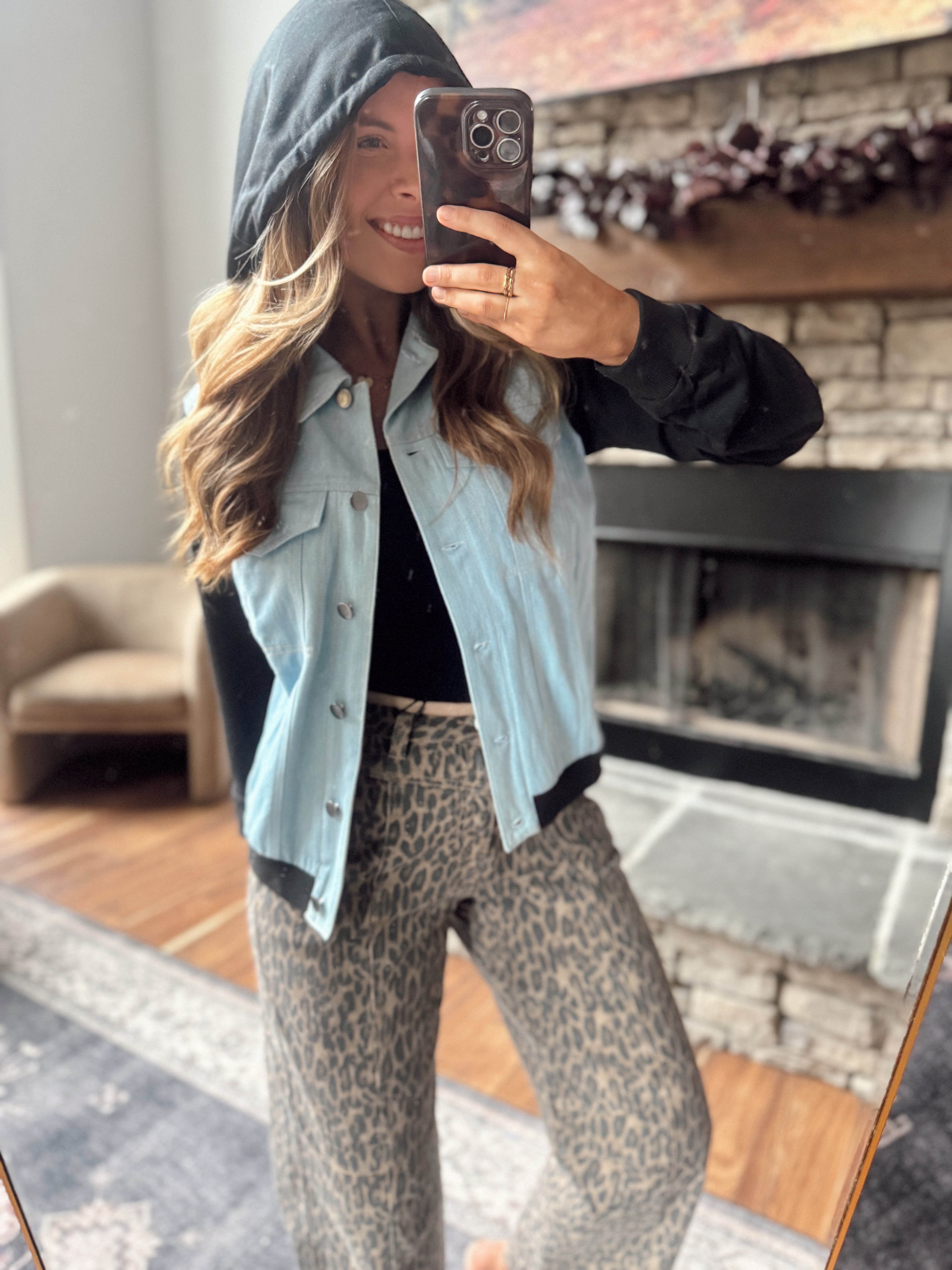 Varsity Blues Hooded Denim Sweatshirt Jacket