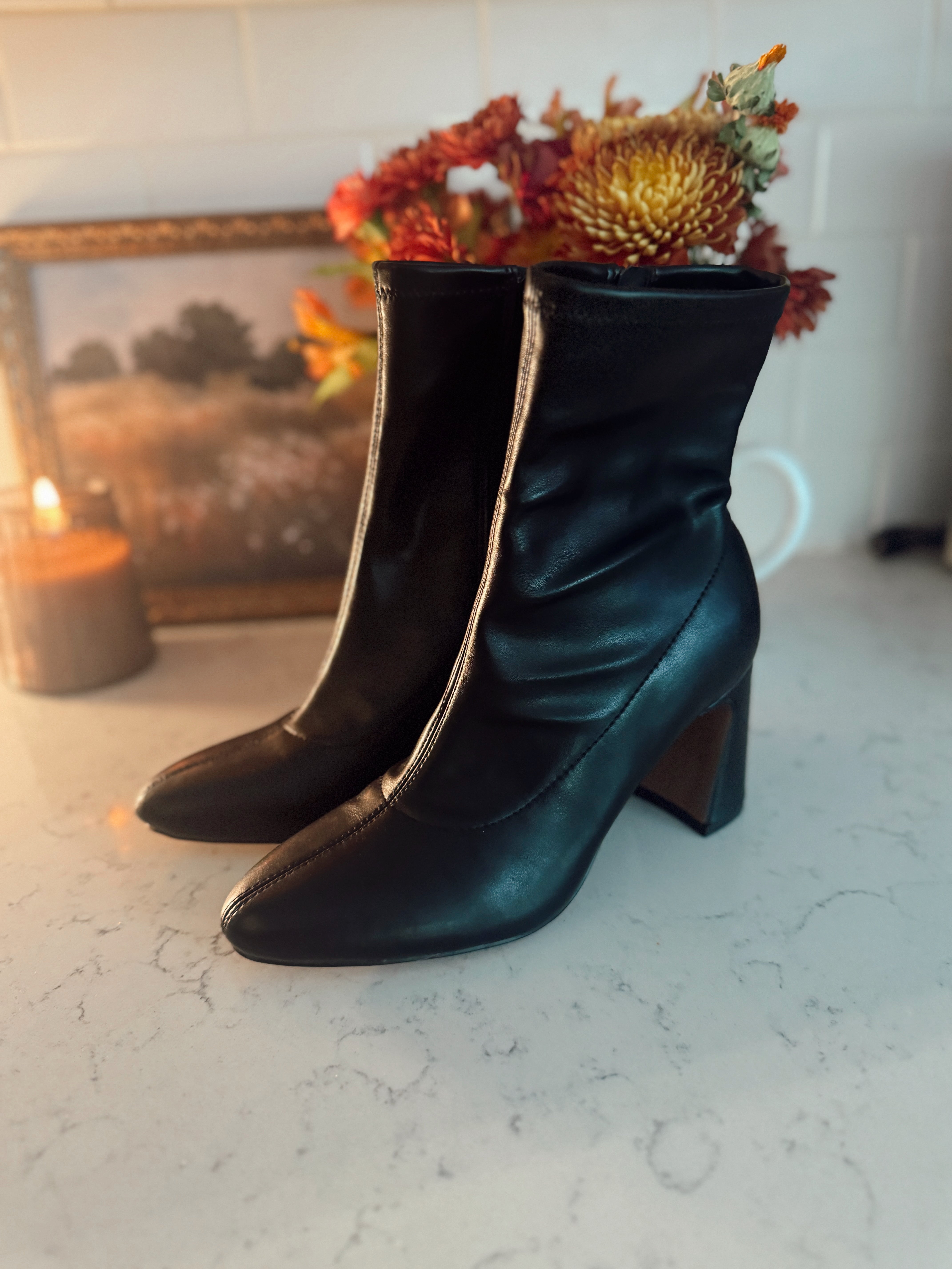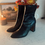 Black Thiva Block Heel Pointed Toe Booties