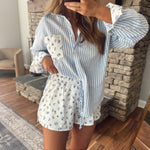 • A striped button-down for a mixed-print look 💙