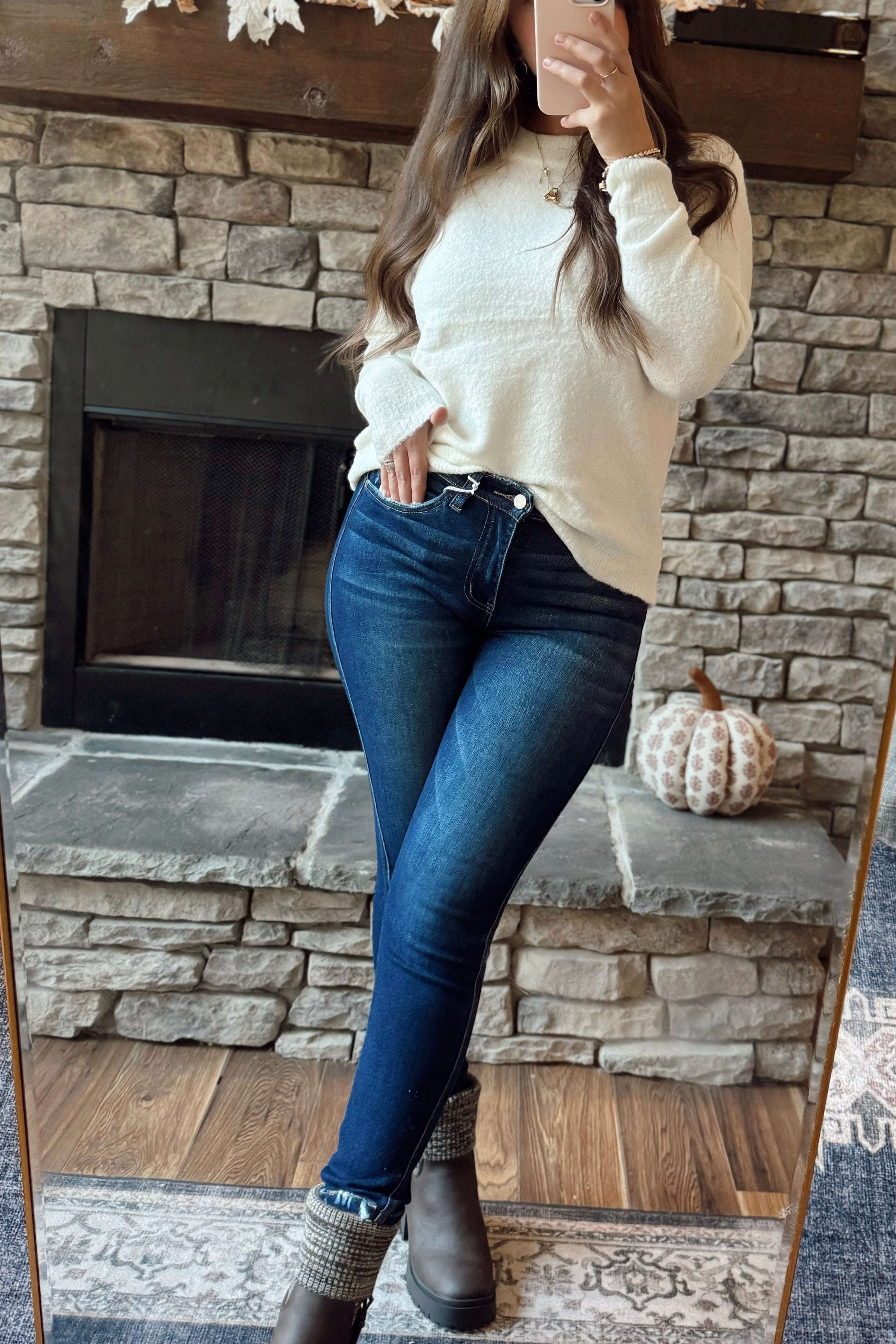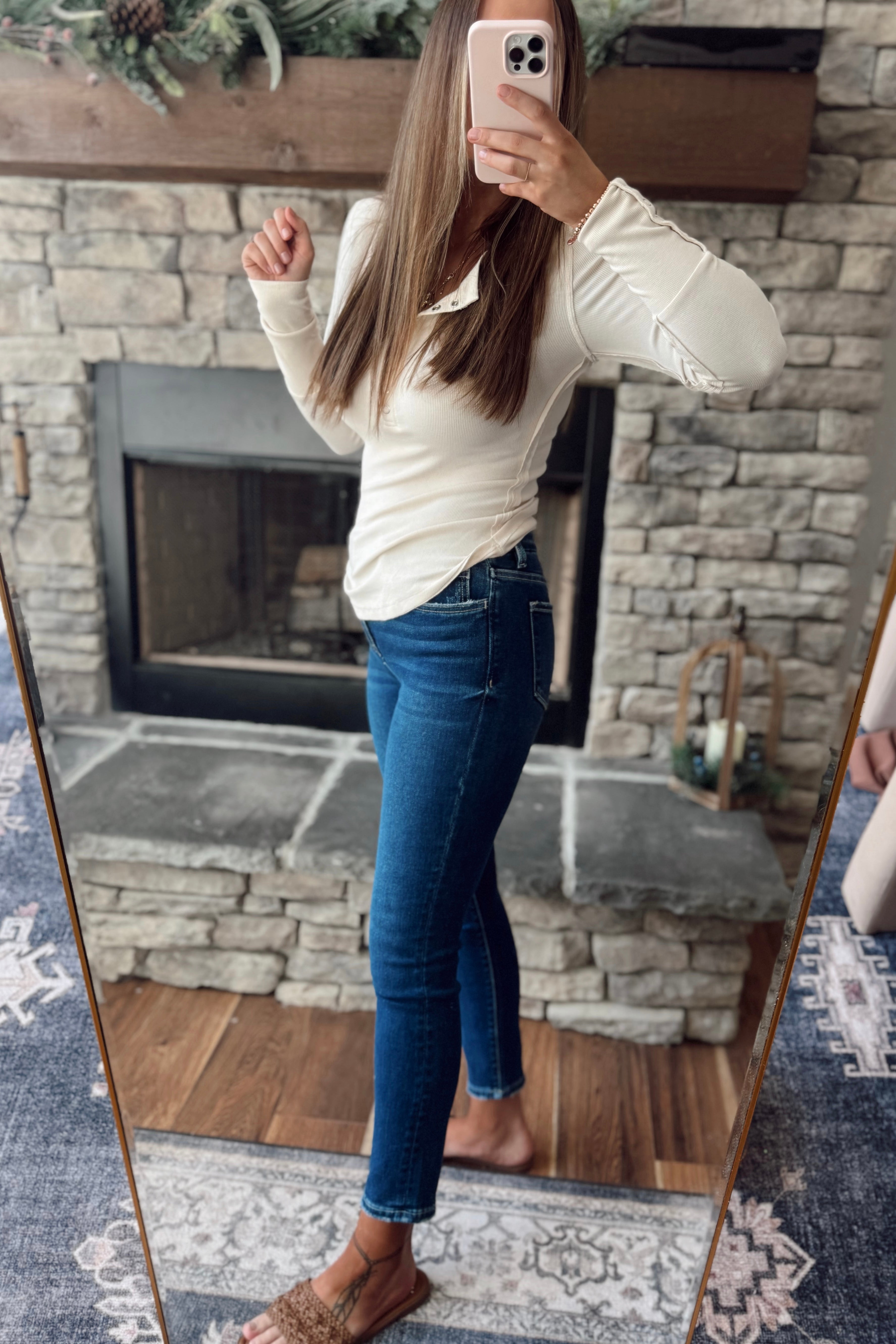 Risen Medium HR Ankle Skinny Roll-Up Denim