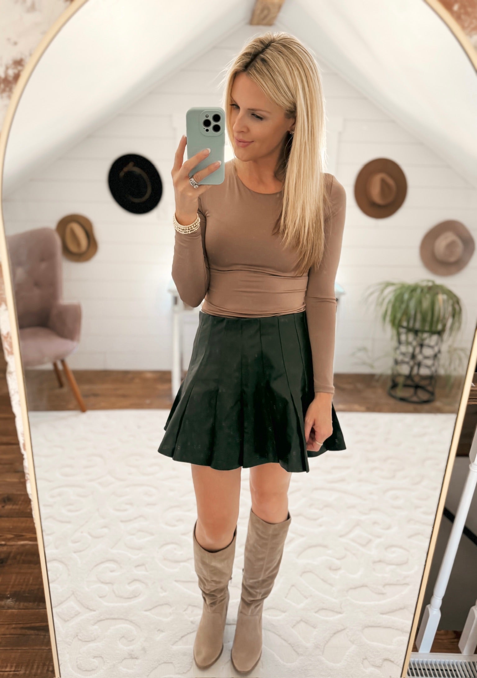 Trend Setter Hunter Green Faux Leather Pleated Mini Skirt