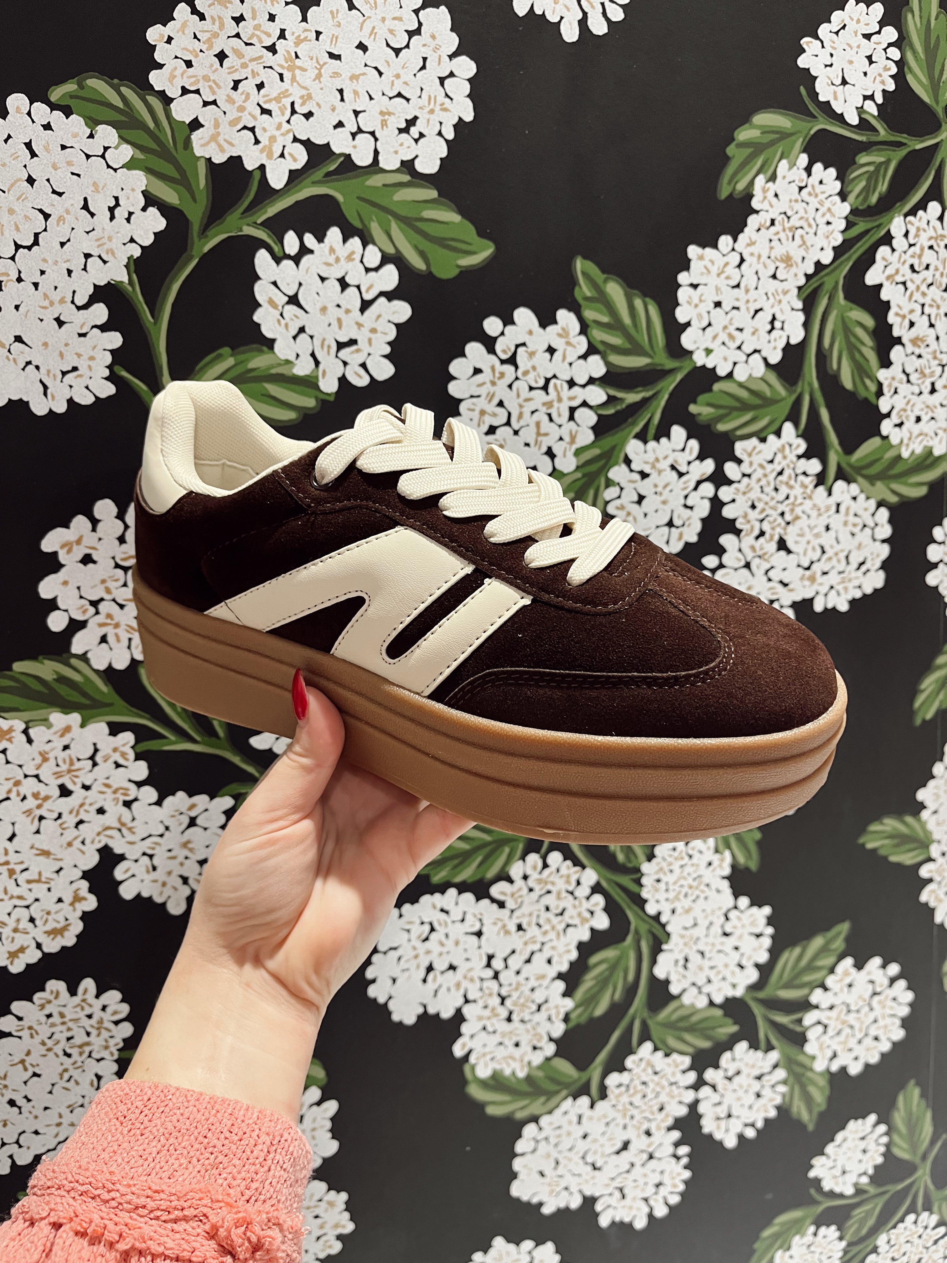 Jet Setter Beige/Brown Chunky Platform Low Top Lace up Sneakers